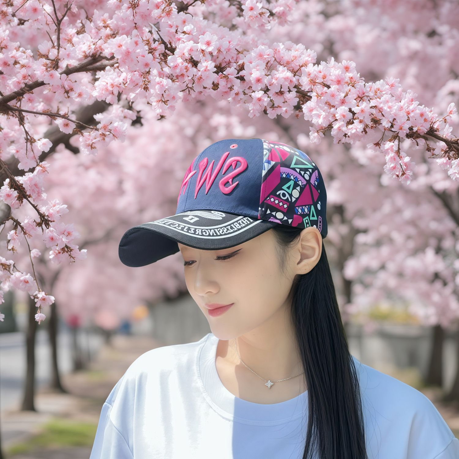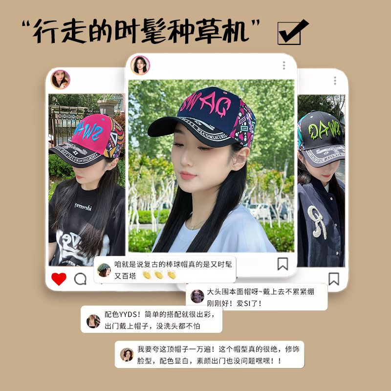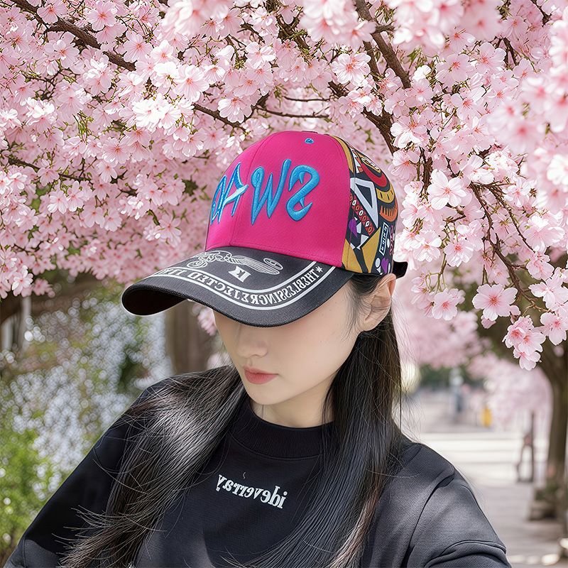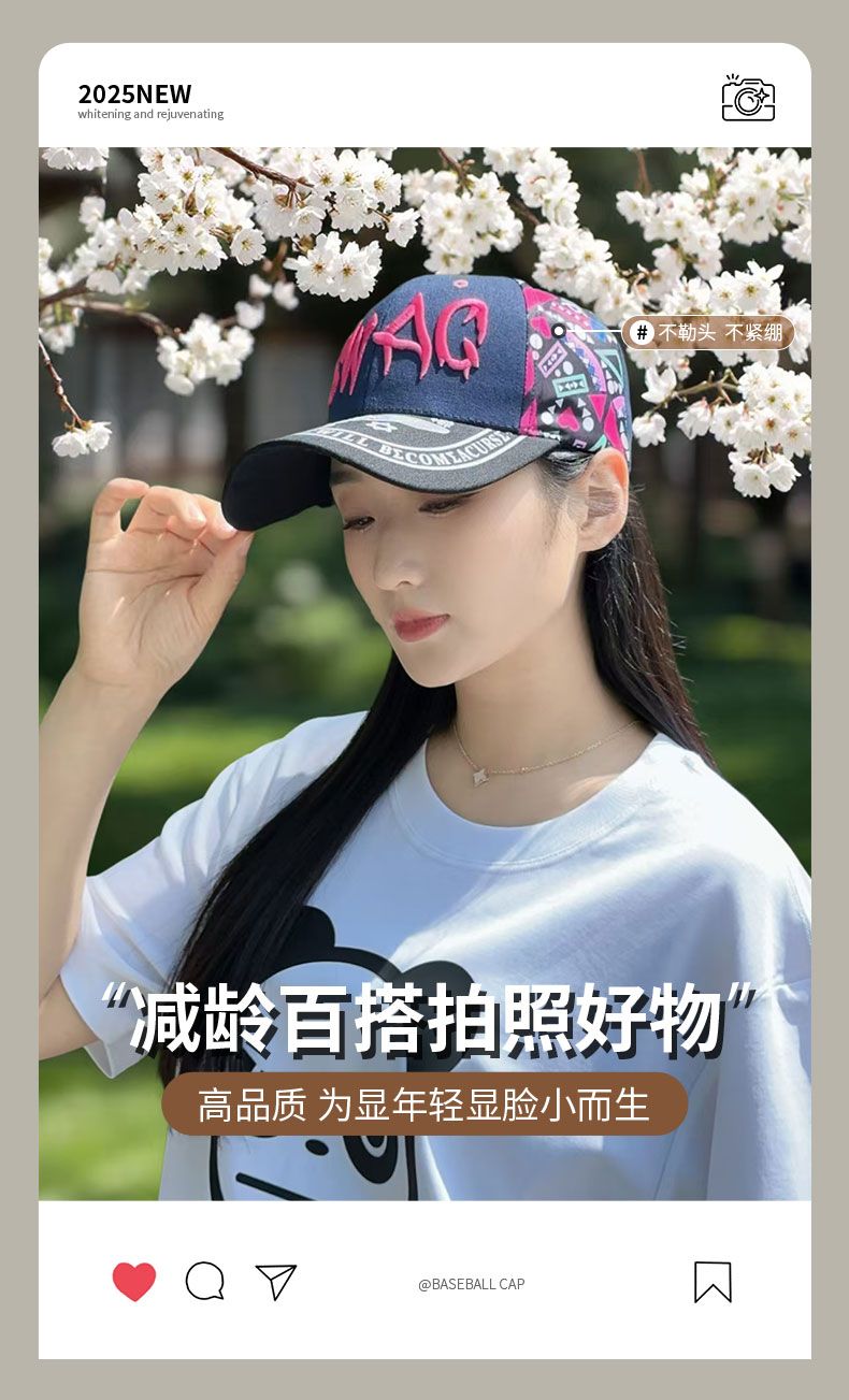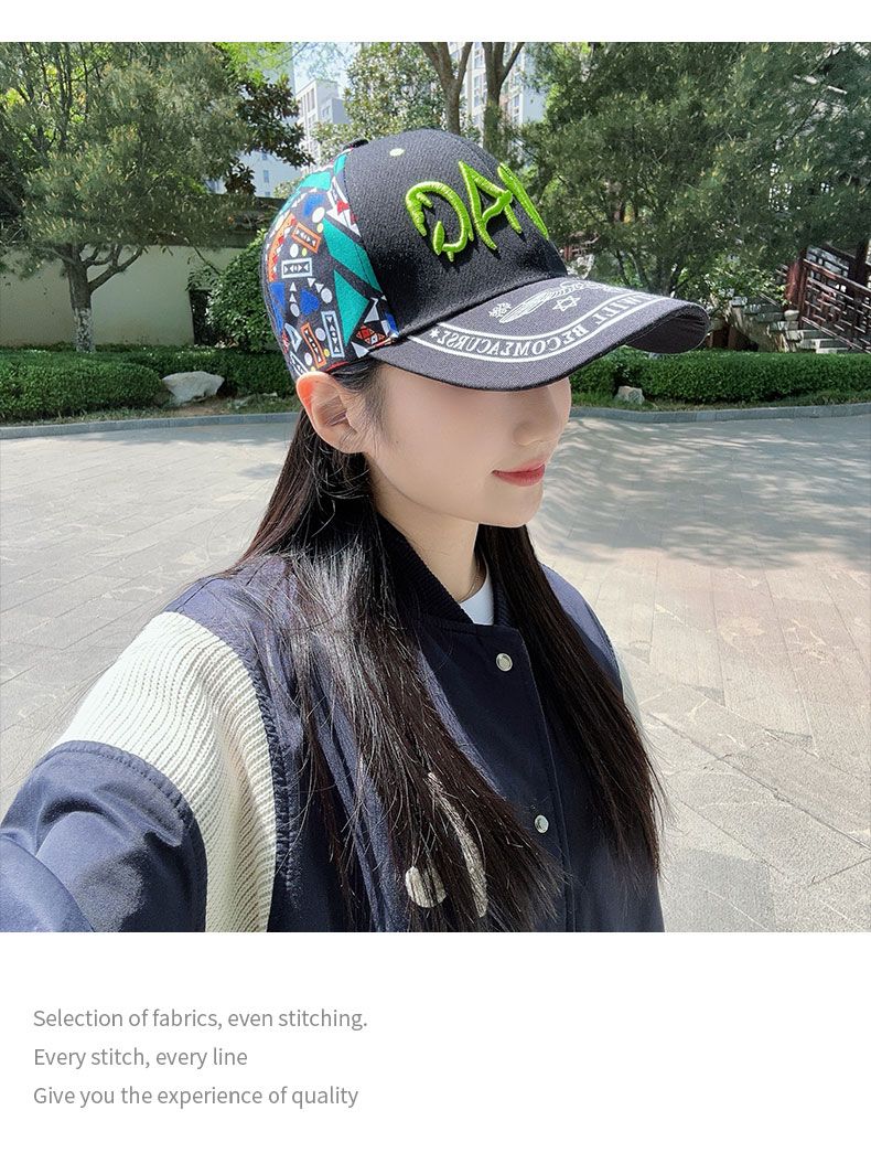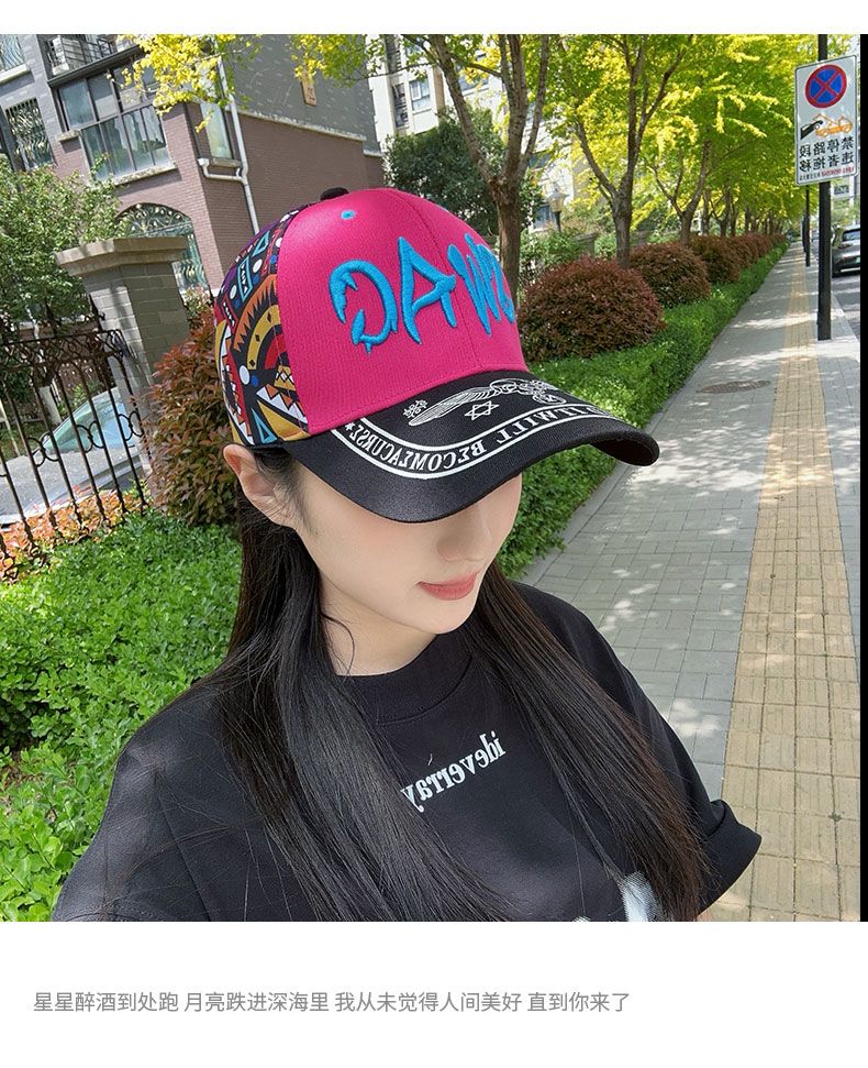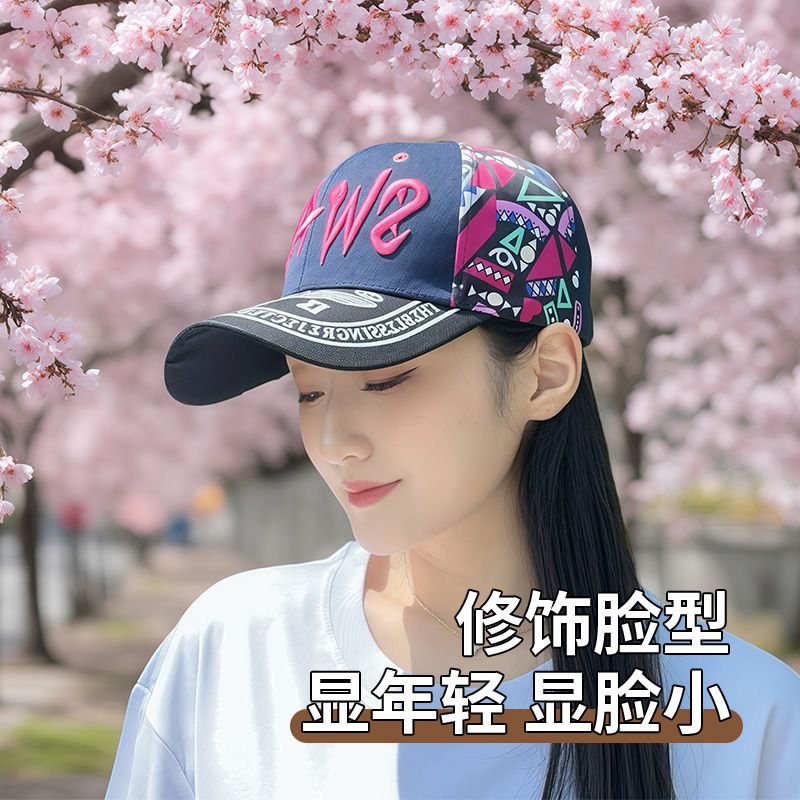 2025韩版时尚刺绣棒球帽女款春夏防晒遮阳帽百搭户外印花鸭舌帽