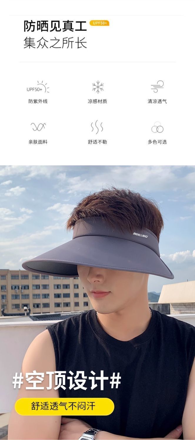 遮阳帽男士夏季新款可折叠防晒防紫外线空顶户外钓鱼骑车太阳帽女