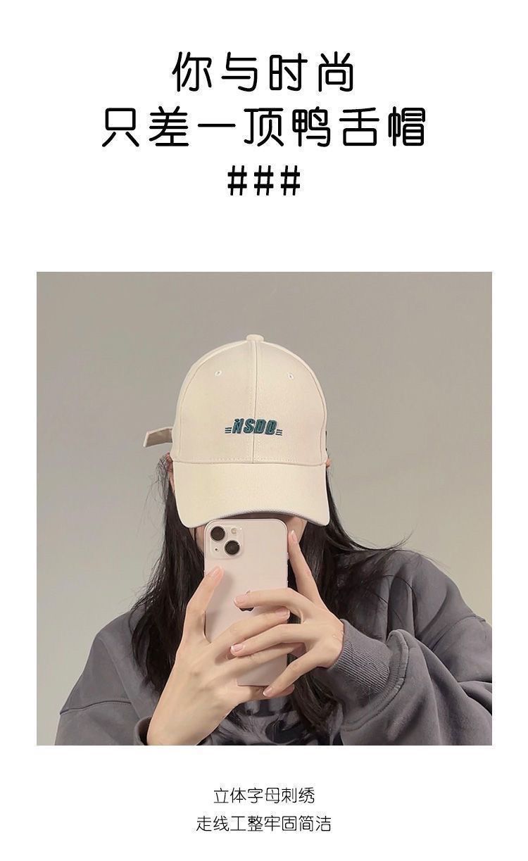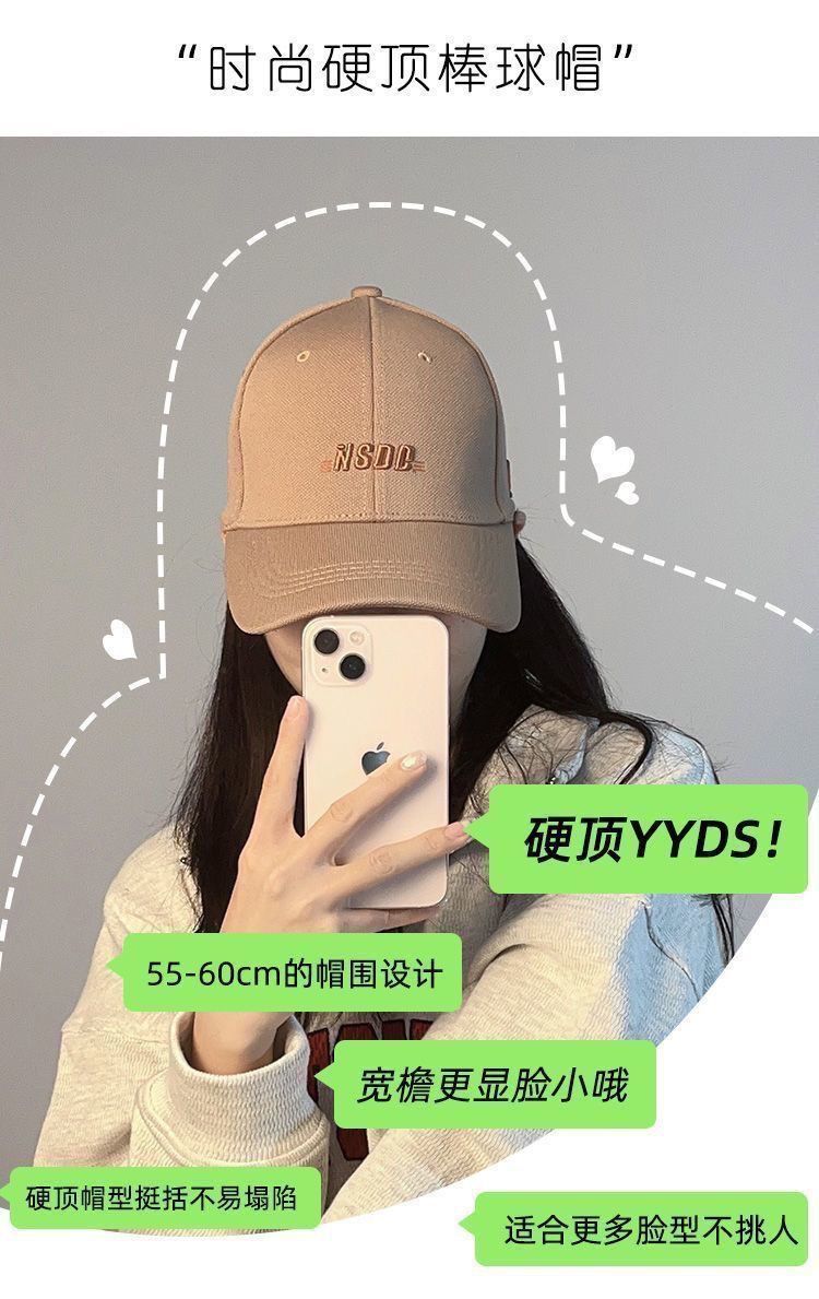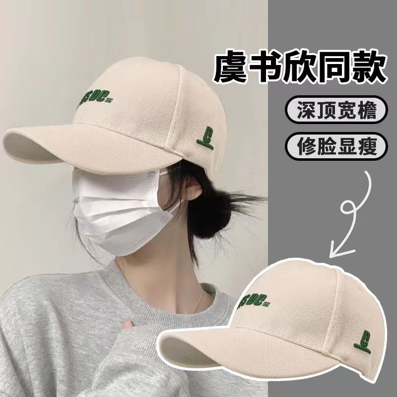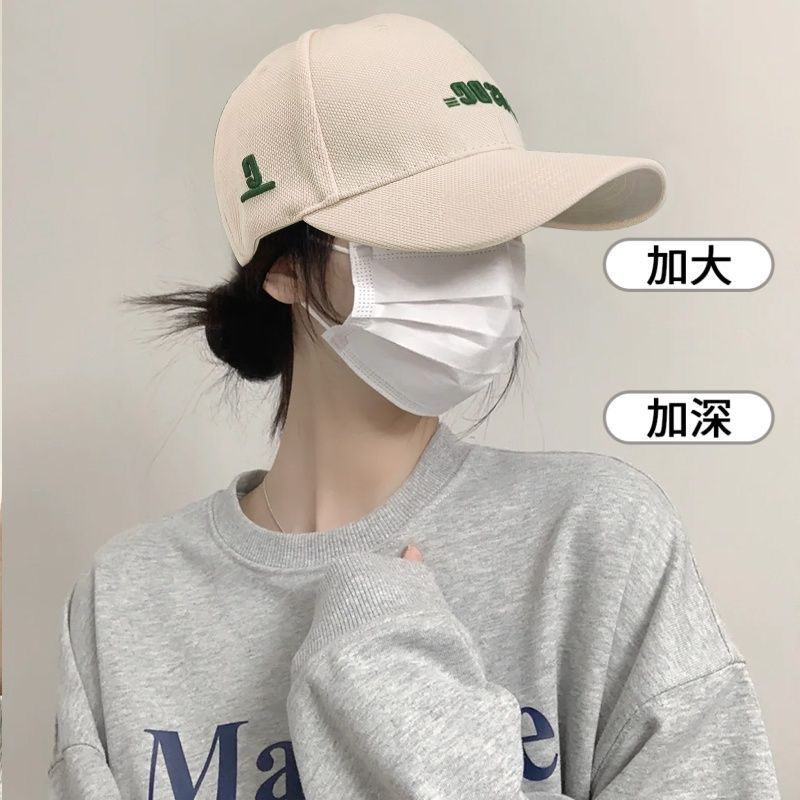 深顶棒球帽子女春夏硬顶大头围显脸小户外防晒遮阳刺绣字母鸭舌帽