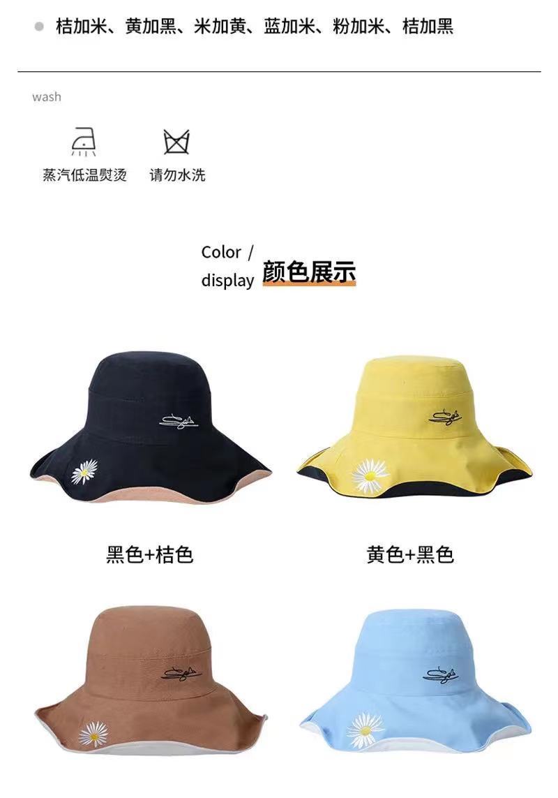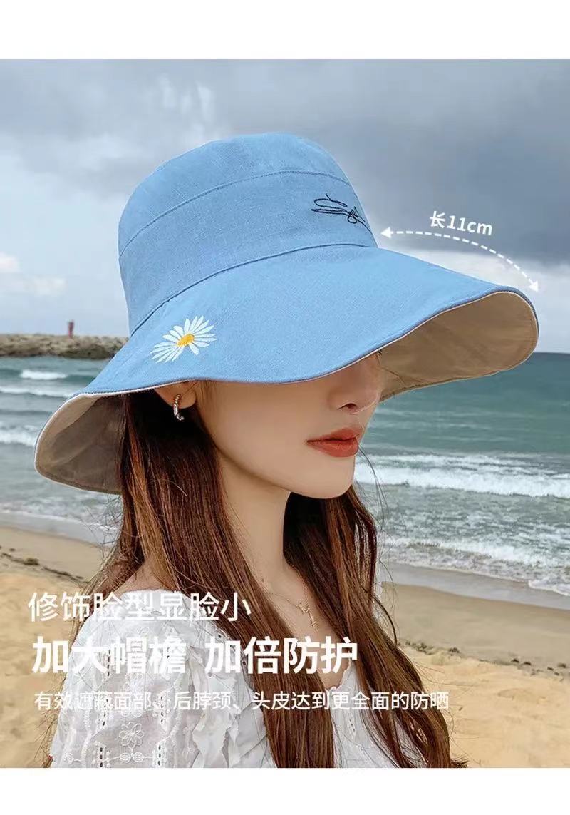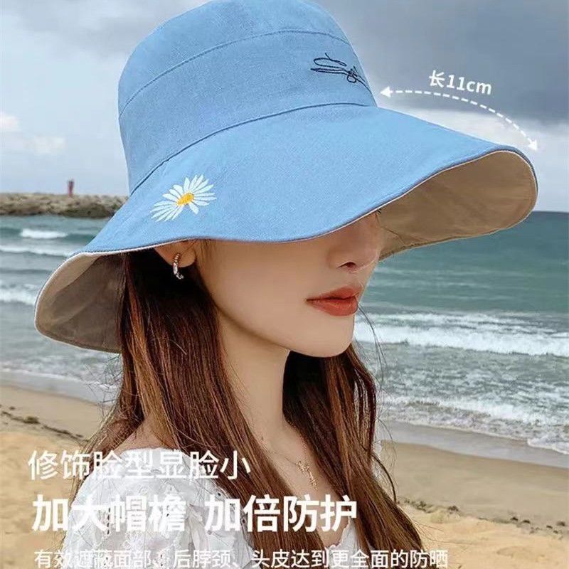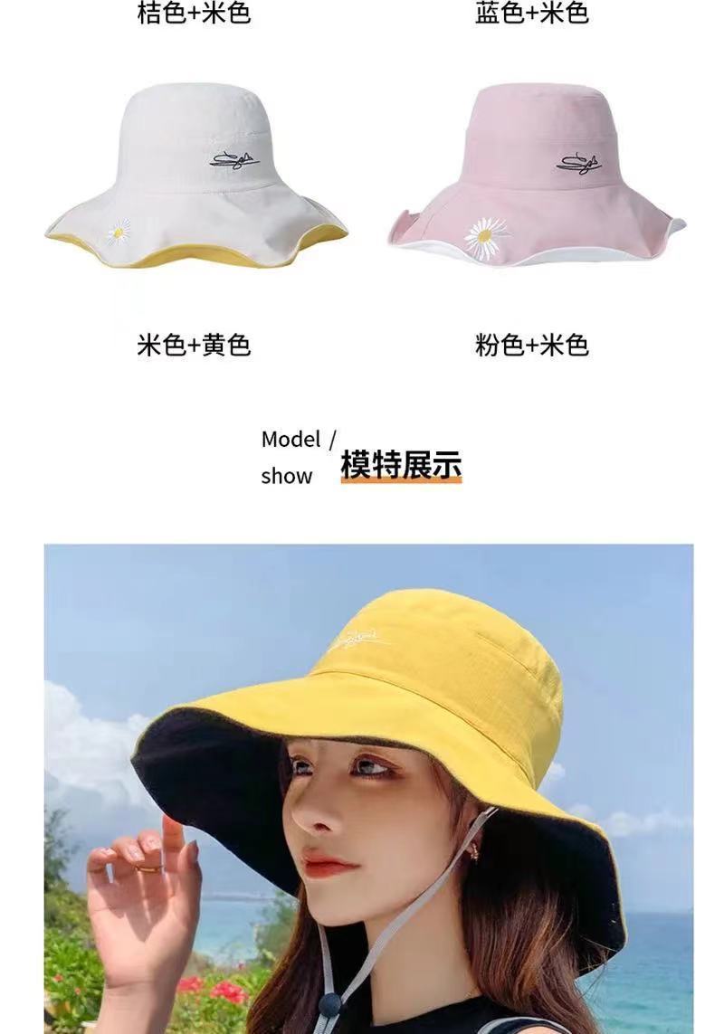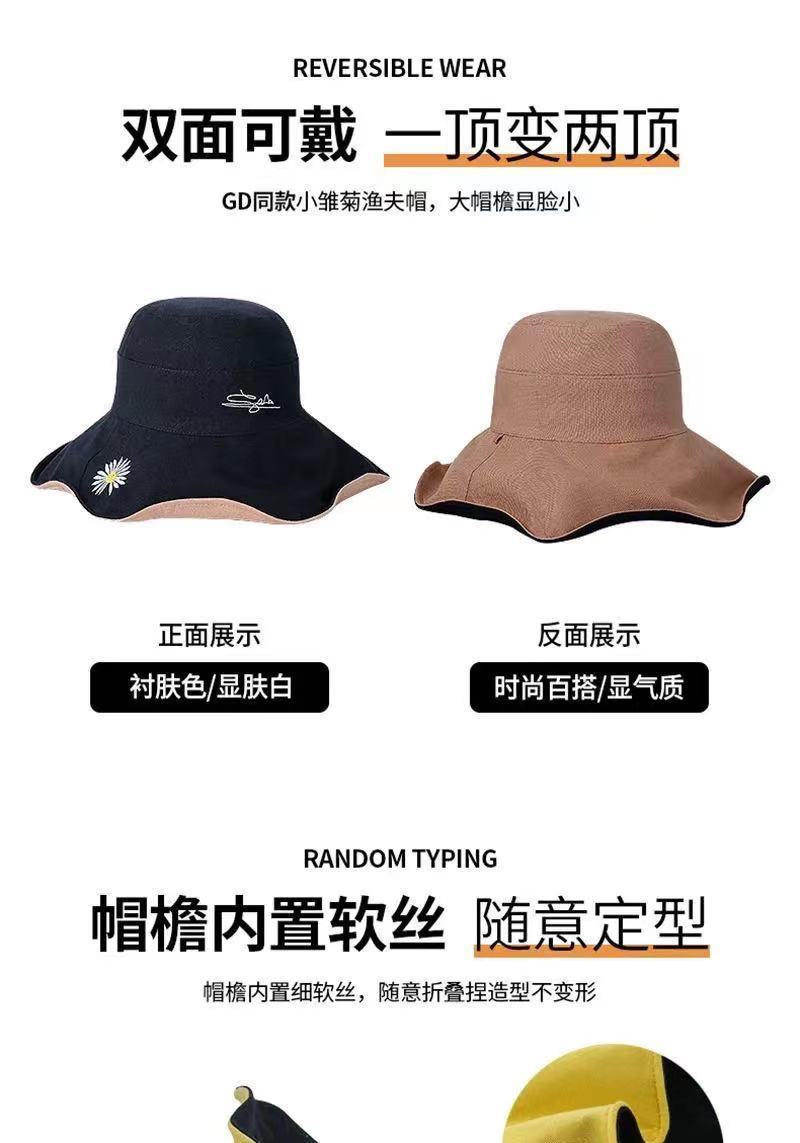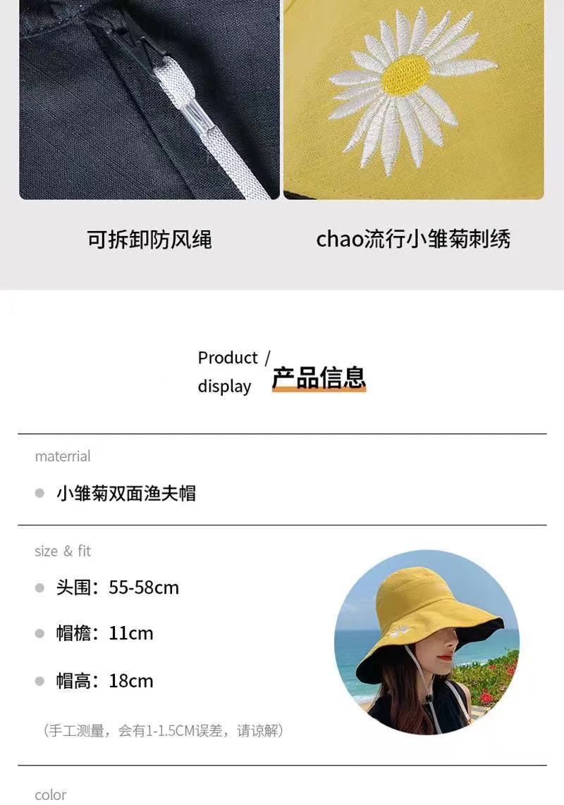 送防风绳双面大沿小雏菊渔夫帽女夏天日系遮脸遮阳太阳帽防晒帽子