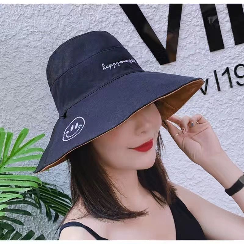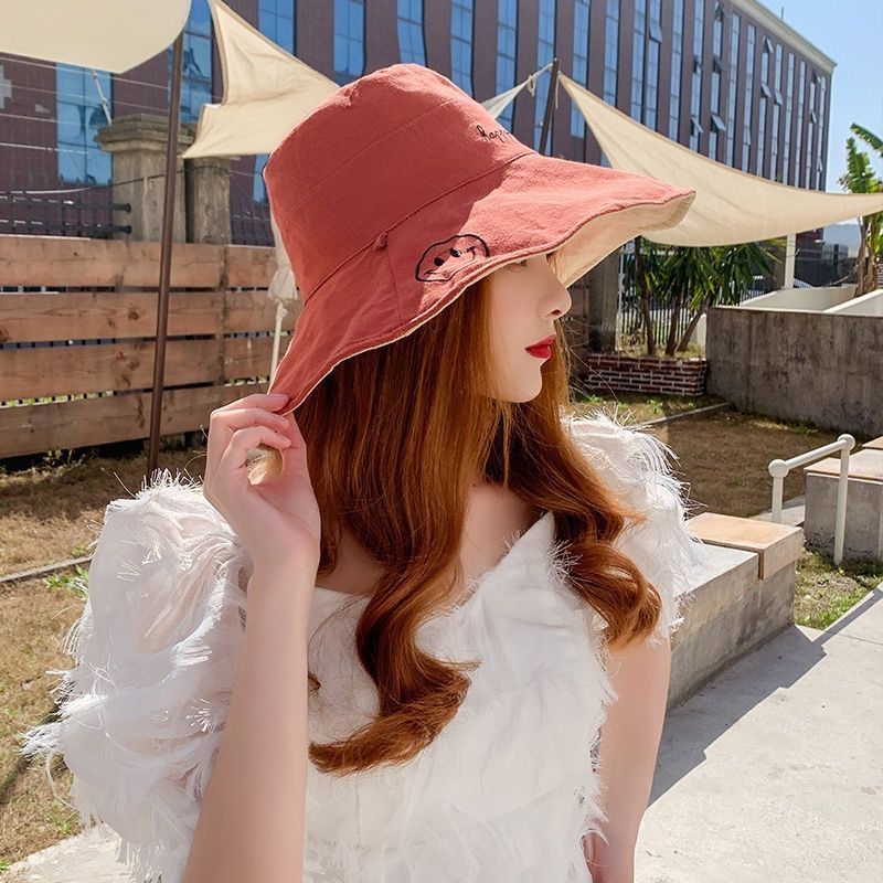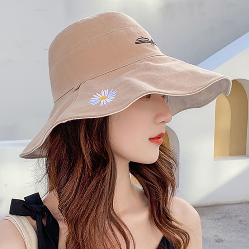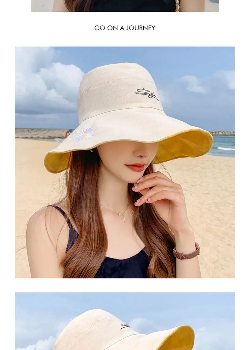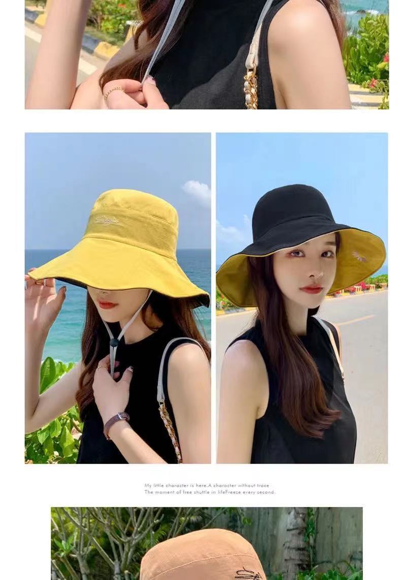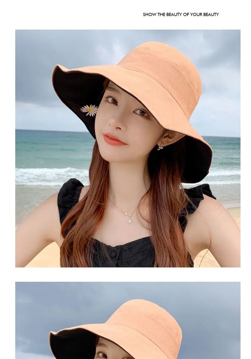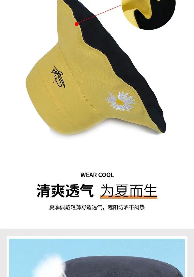送防风绳双面大沿小雏菊渔夫帽女夏天日系遮脸遮阳太阳帽防晒帽子