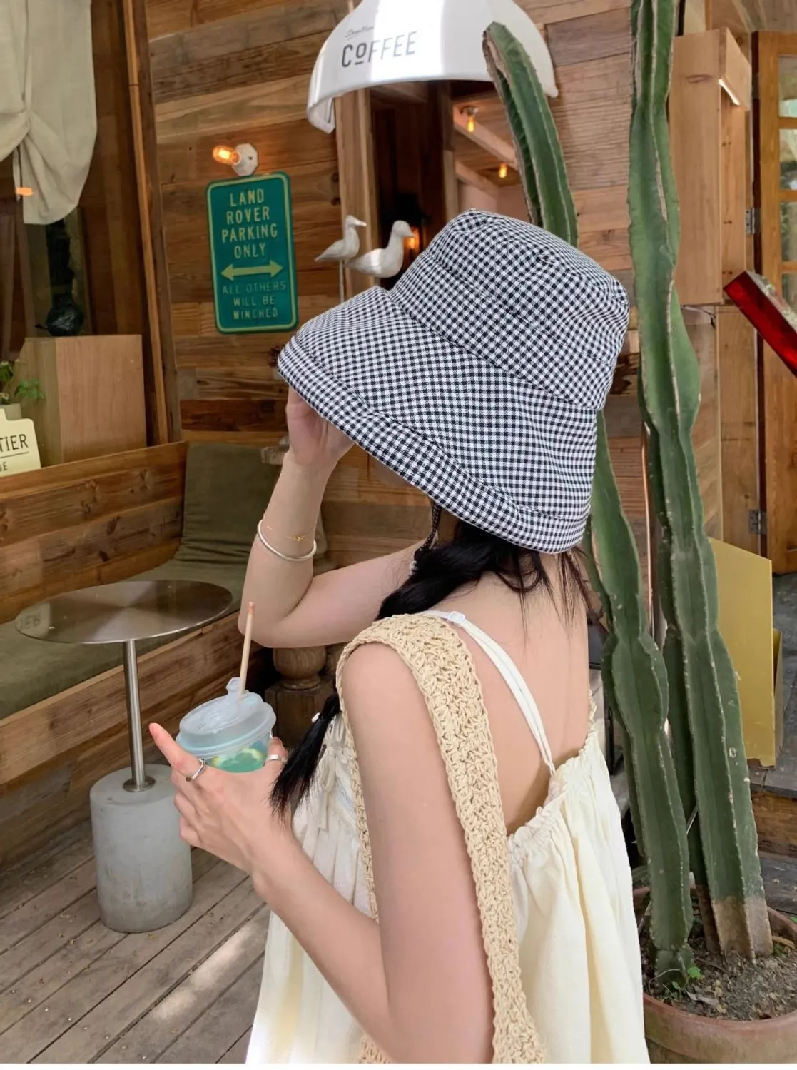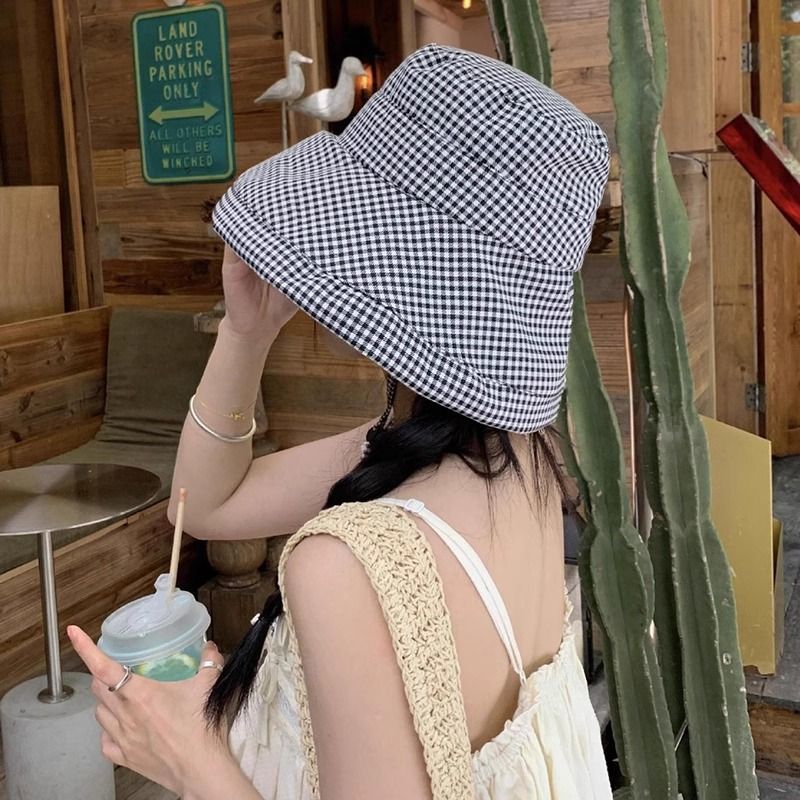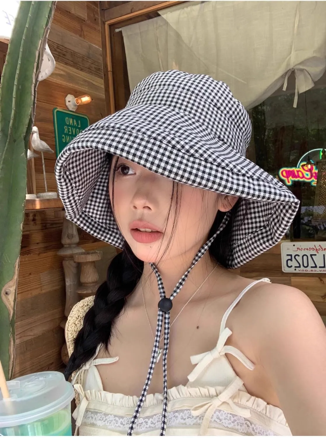 | black and white plaid bucket hat(黑白格渔夫帽) | USD $4.05 | 999999 piece available |