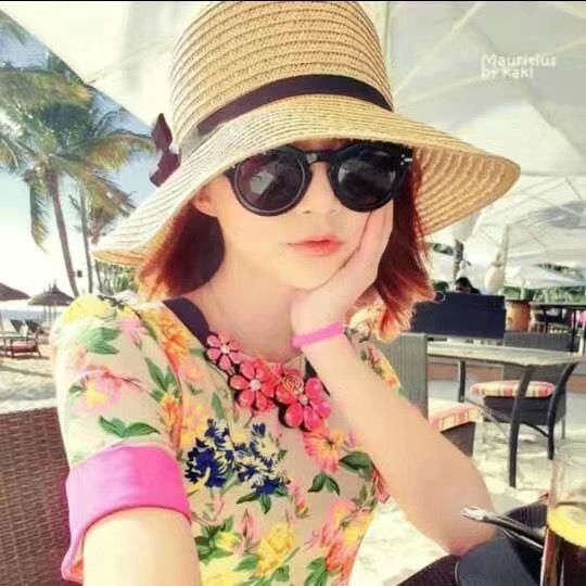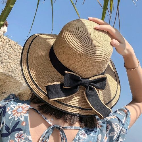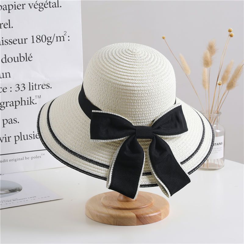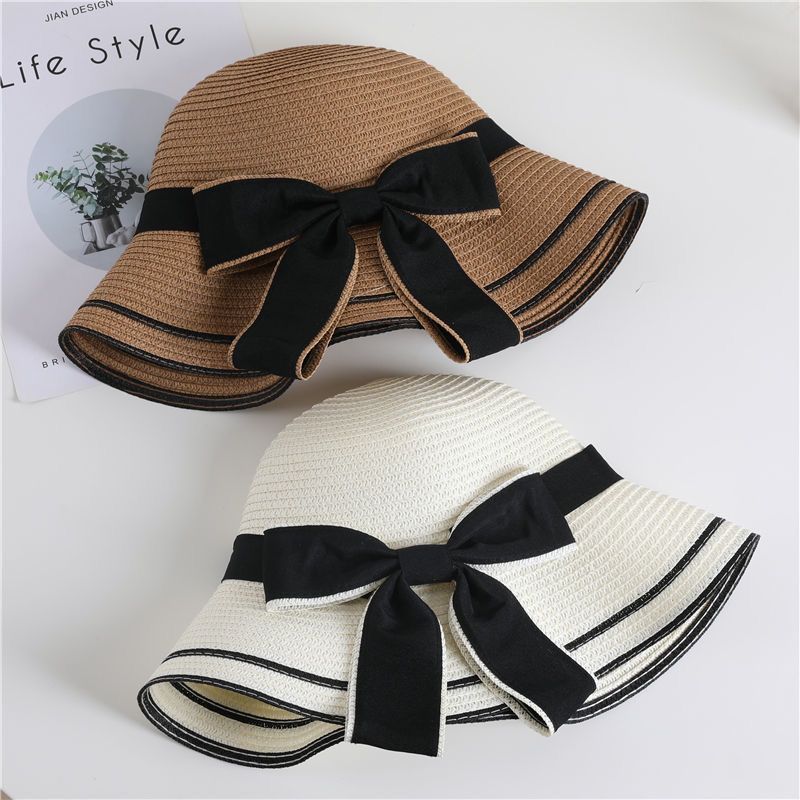 帽子女夏韩版小香风沙滩防晒草帽优雅大蝴蝶结盆帽出游大沿遮阳帽