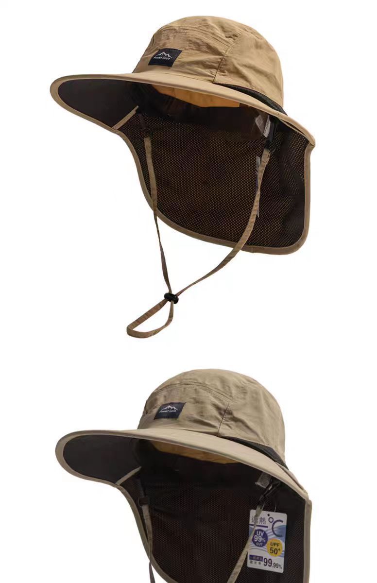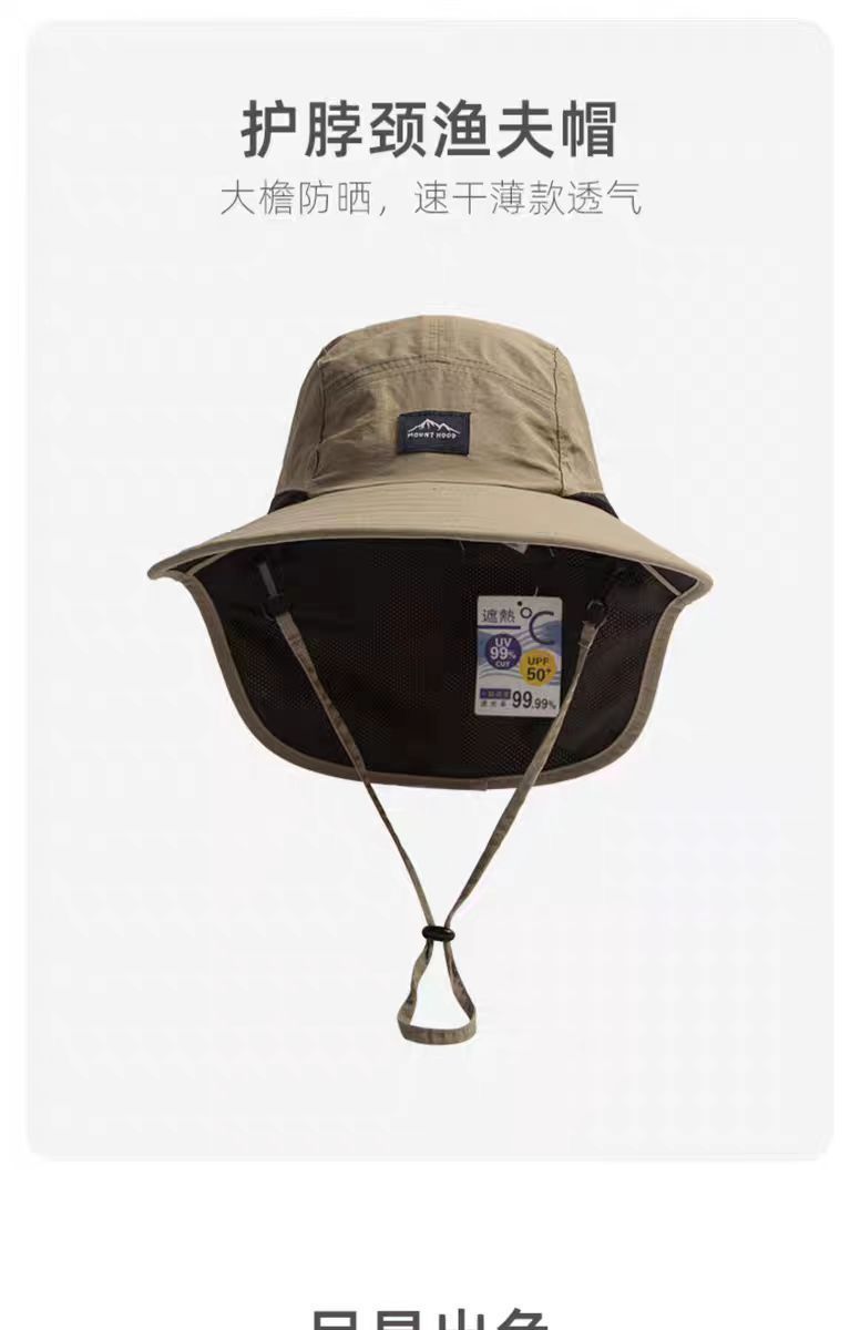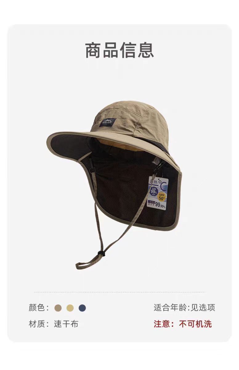 户外防晒遮阳帽子男女夏季护脖颈防紫外线渔夫帽亲子款露营登山帽