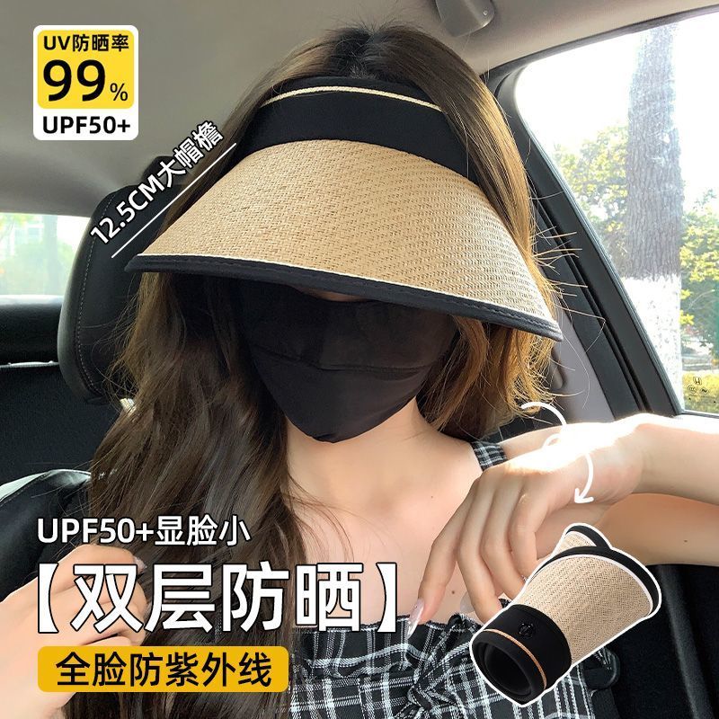 骑车不翻遮阳帽女夏季新款遮脸防紫外线太阳帽防晒帽子户外空顶帽