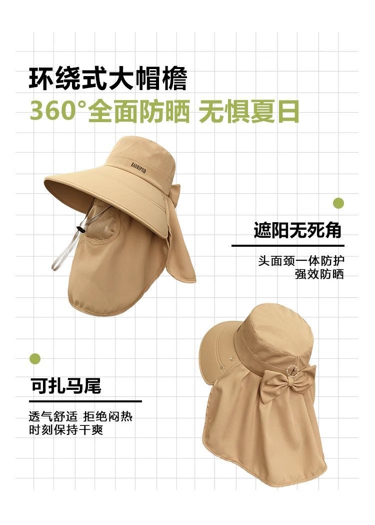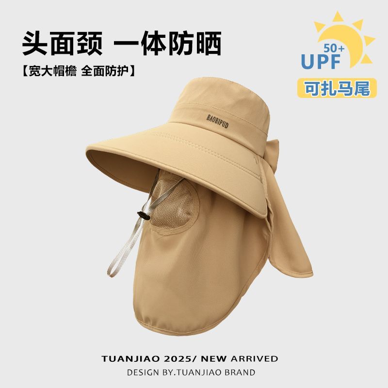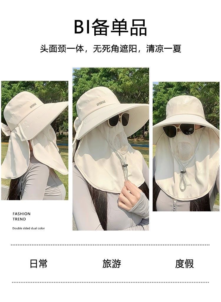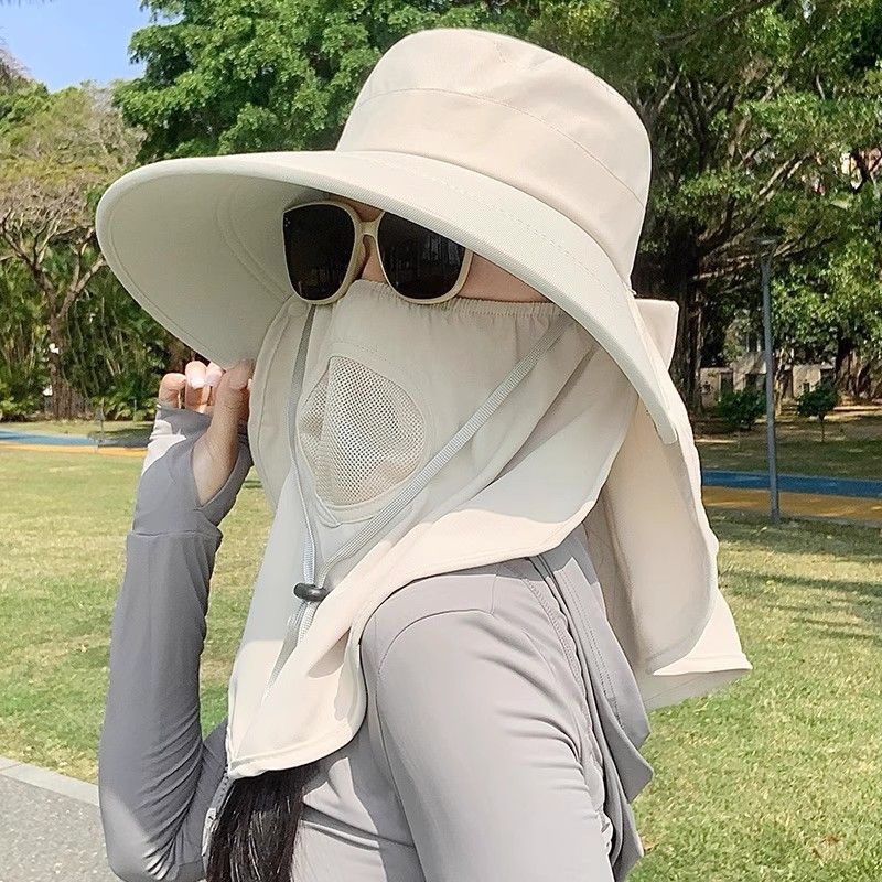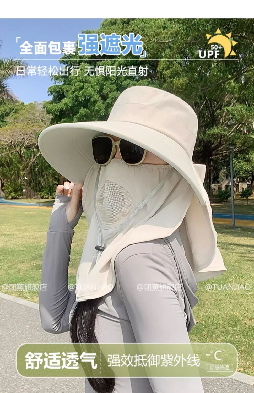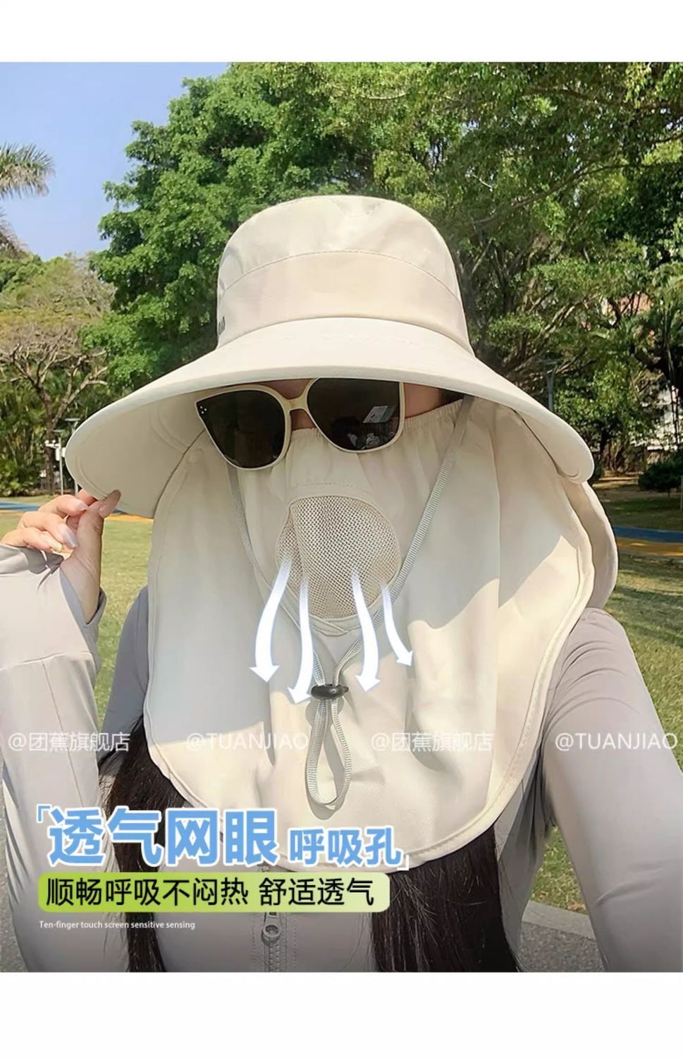 2025户外全脸防晒遮脸护颈一体采茶养蜂女夏季透气面罩遮阳帽大檐