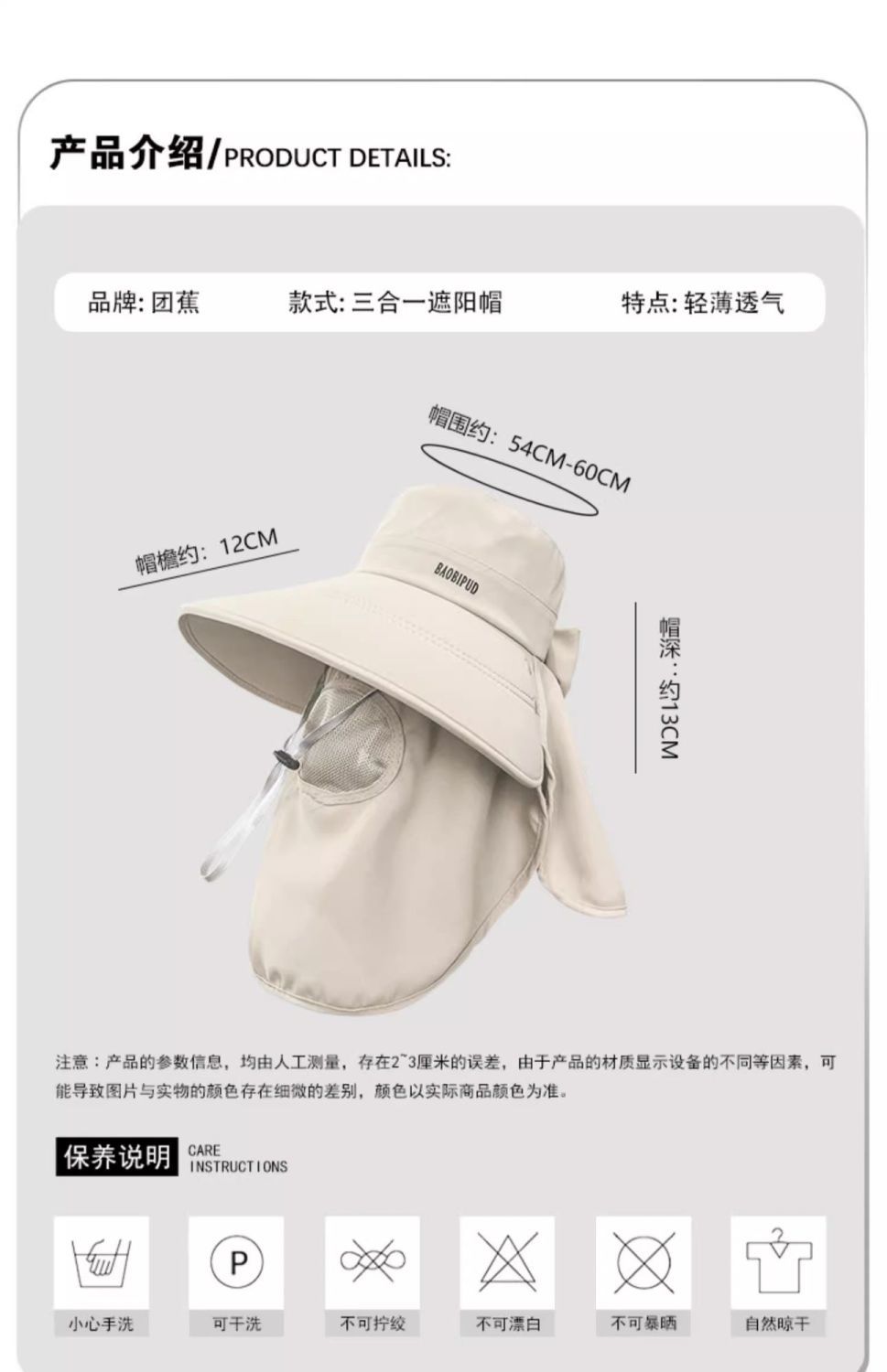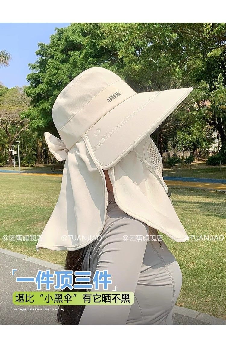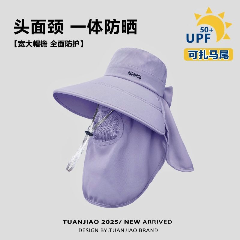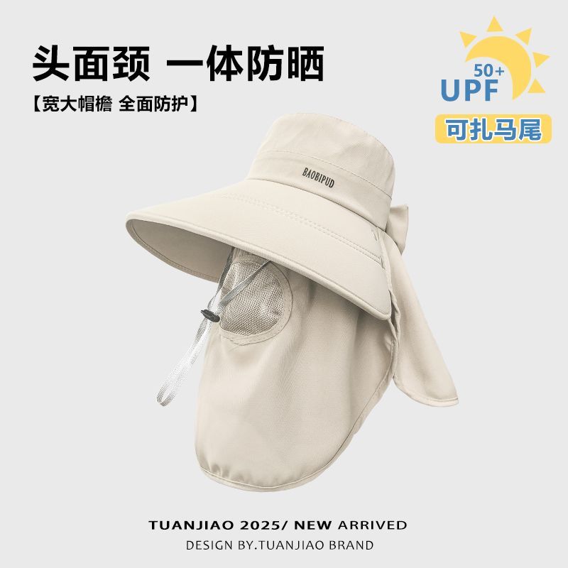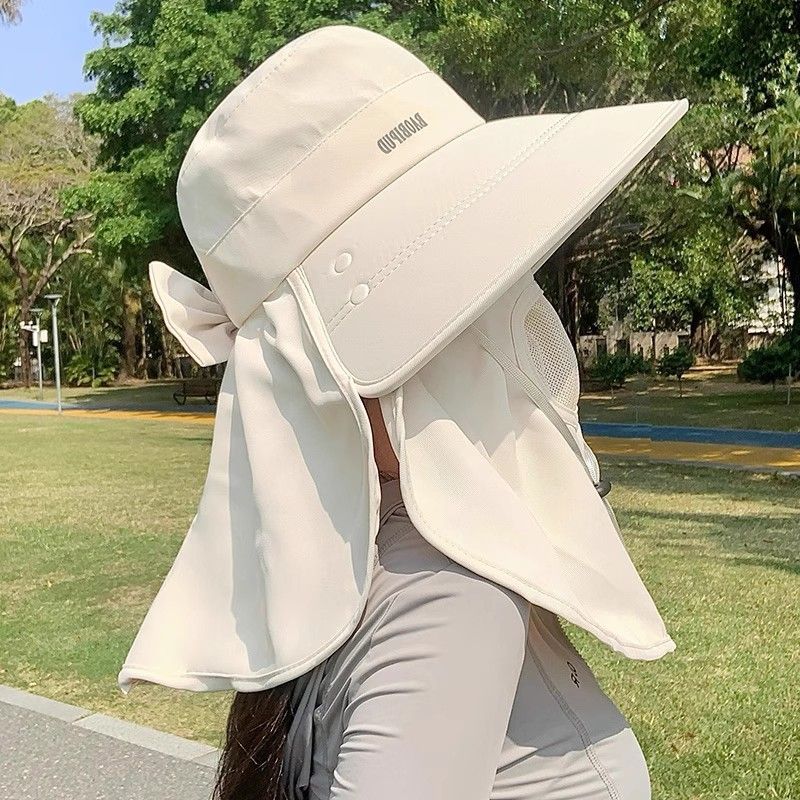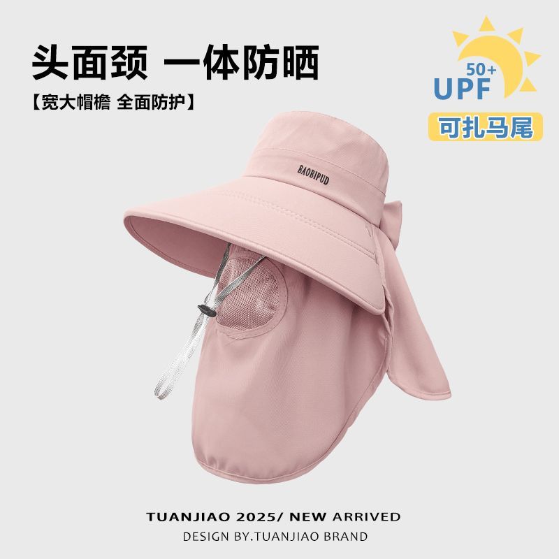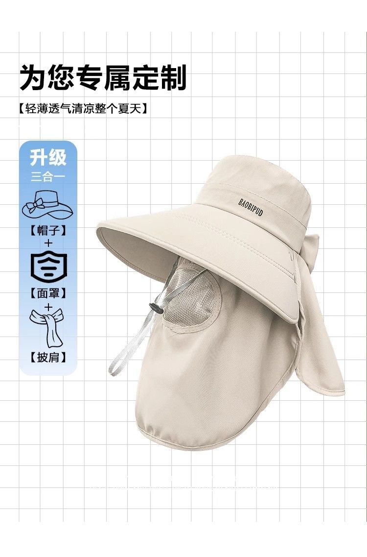 2025户外全脸防晒遮脸护颈一体采茶养蜂女夏季透气面罩遮阳帽大檐