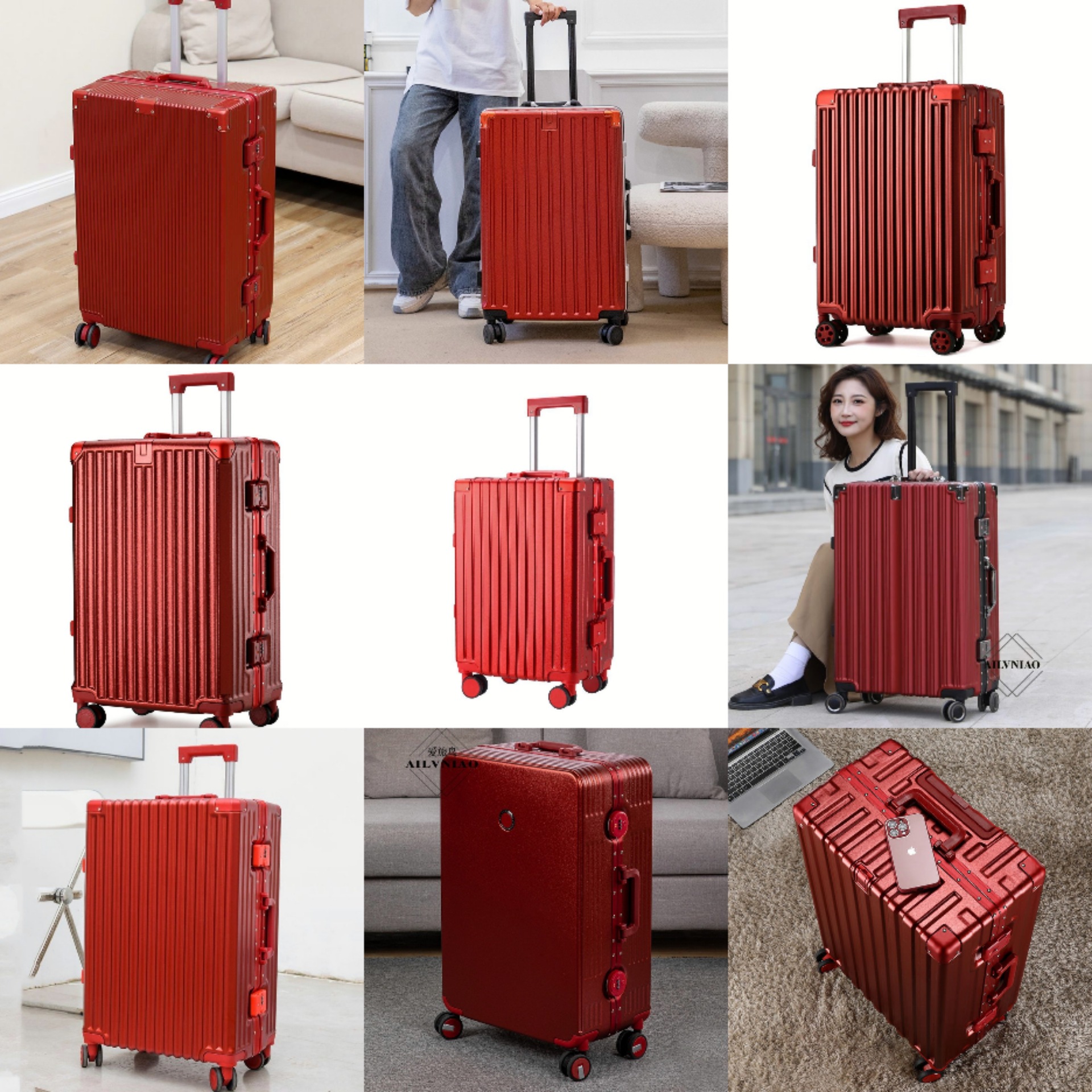 酒红色婚嫁行李箱大容量密码箱新娘结婚箱陪嫁箱婚庆箱蜜月旅行箱