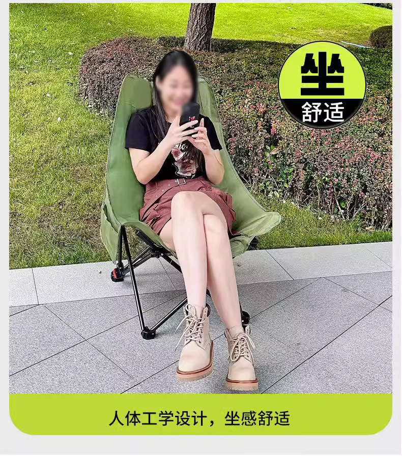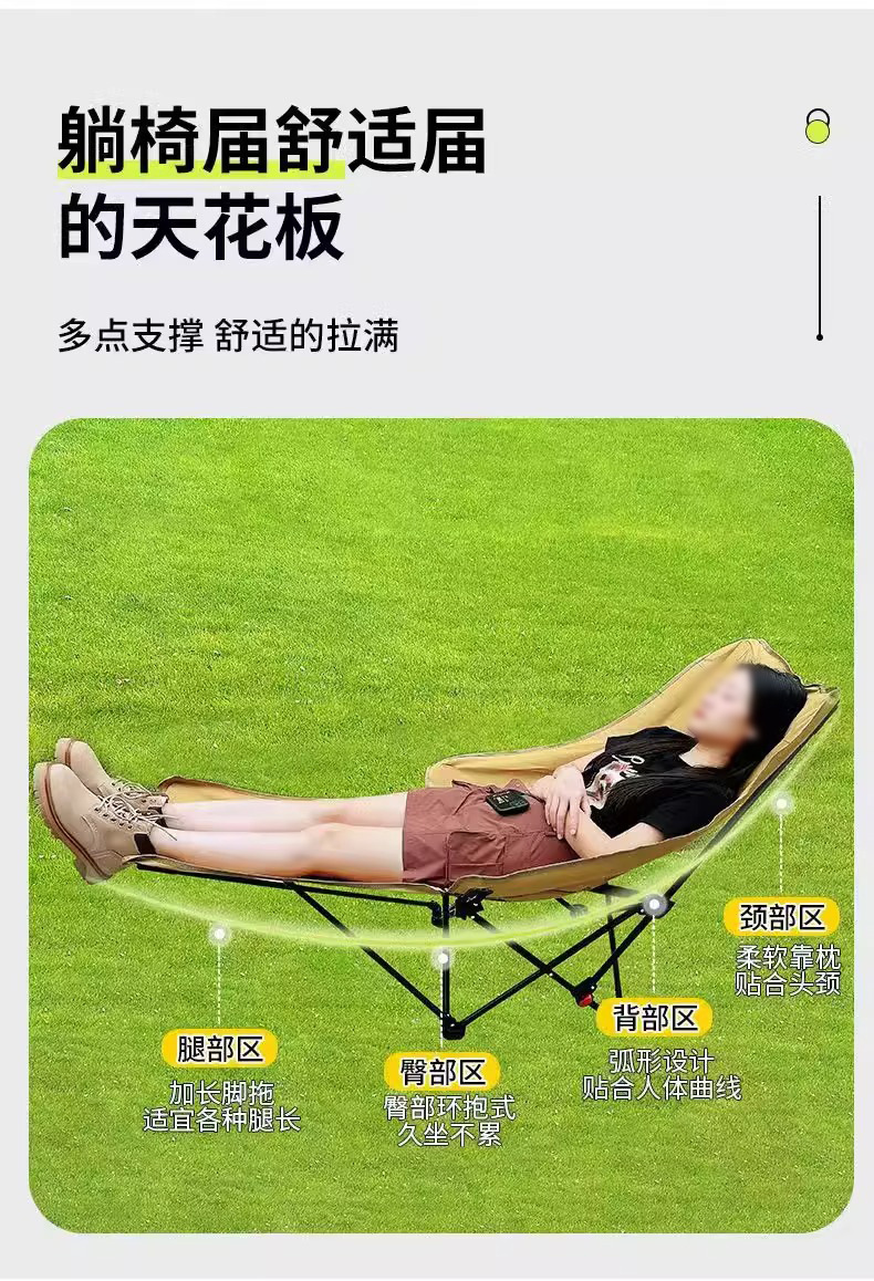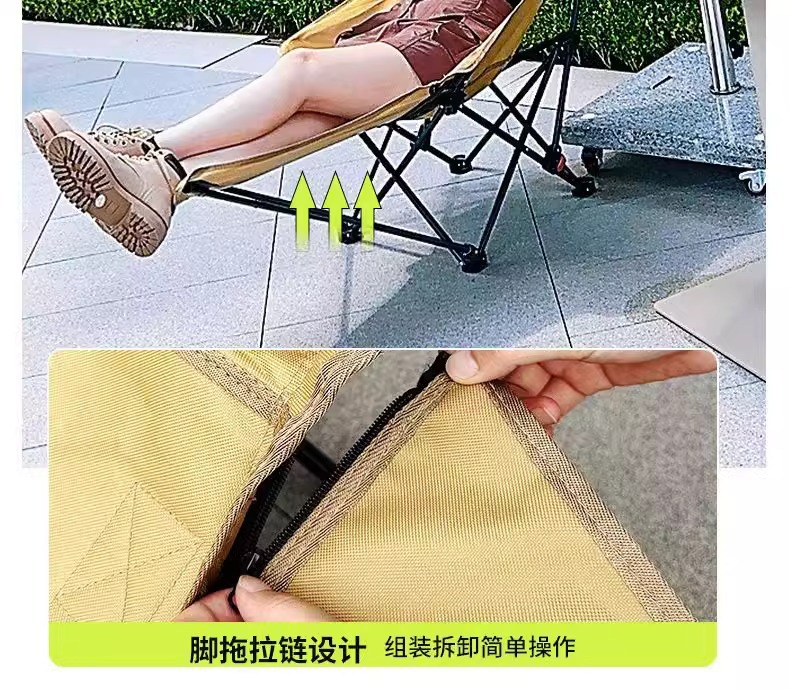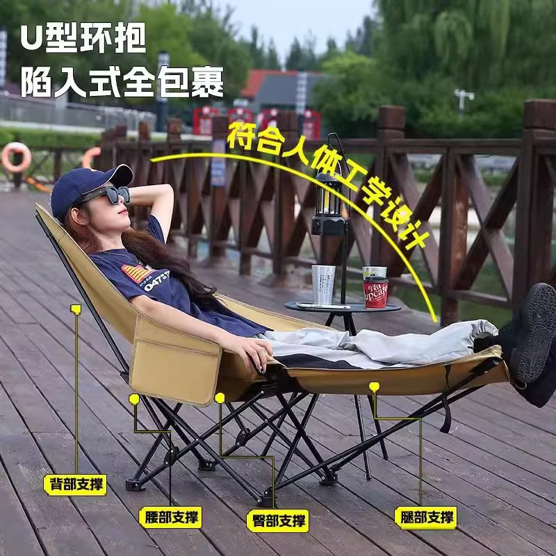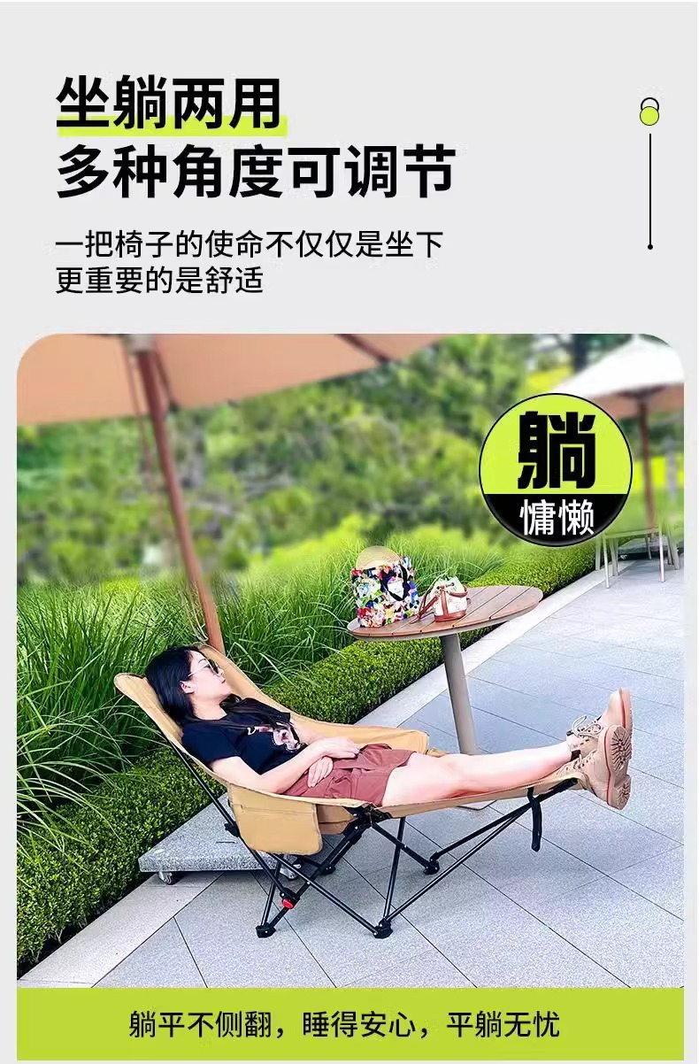 户外折叠月亮椅三档调节腿托躺椅批发野外露营野餐钓鱼沙滩午休椅