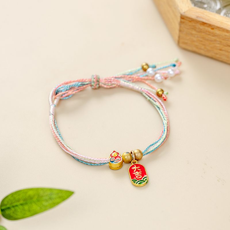 五彩新款端午节手绳手链粽子宝宝儿童手工编织礼物五彩绳红绳礼物