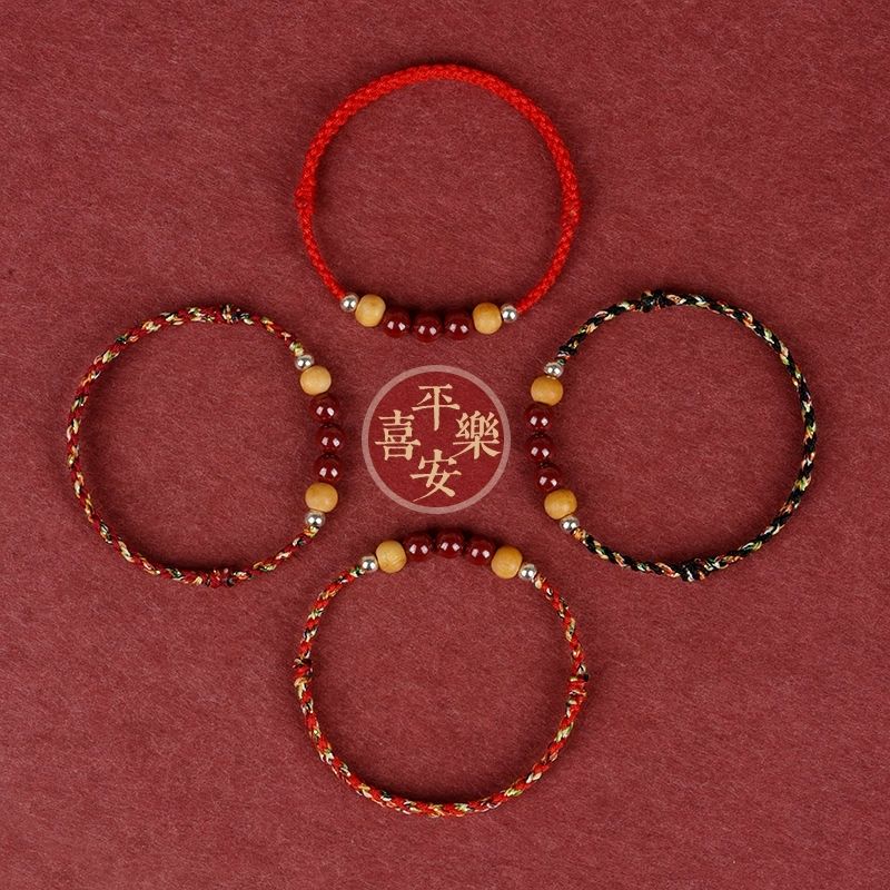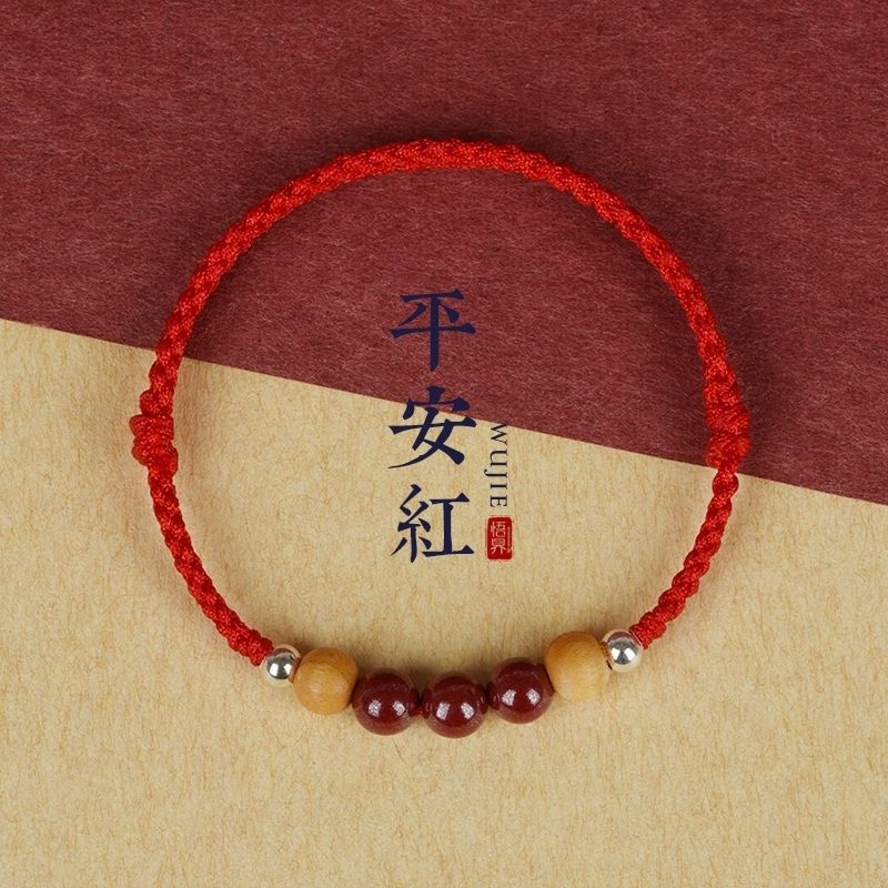 抖音平安朱砂爆款手绳红绳天然桃木手链女款兔年本命年礼物五彩精
