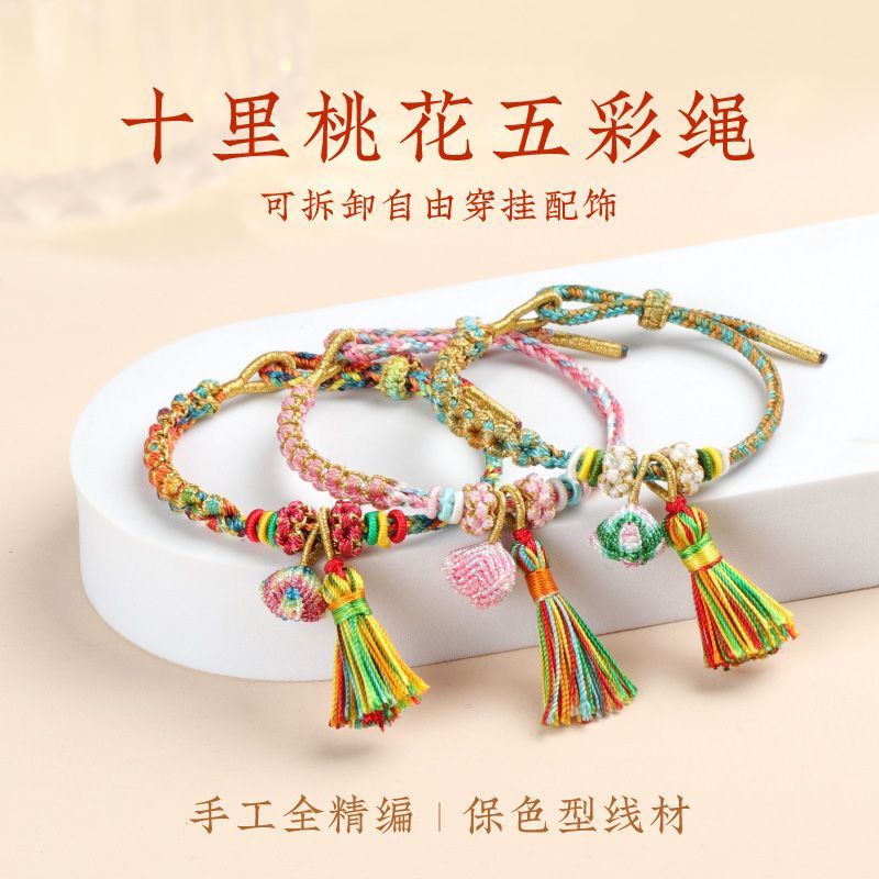 十里桃花龙绳端午节五彩绳diy手绳半成品手工编织绳精桃花结手链