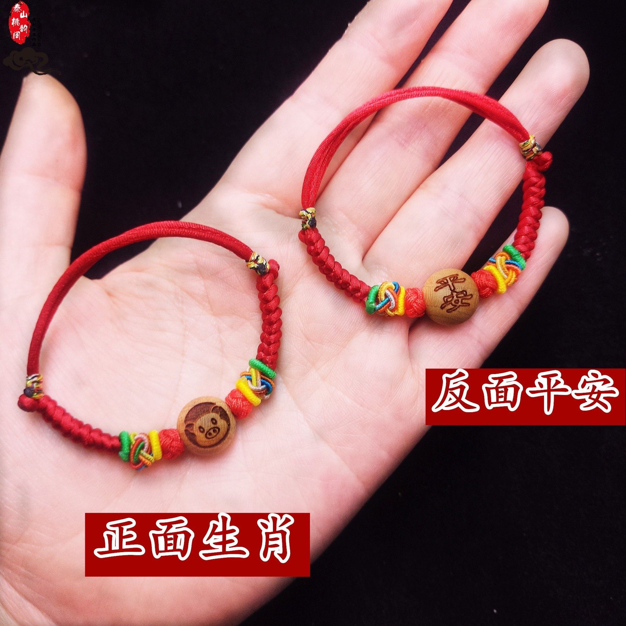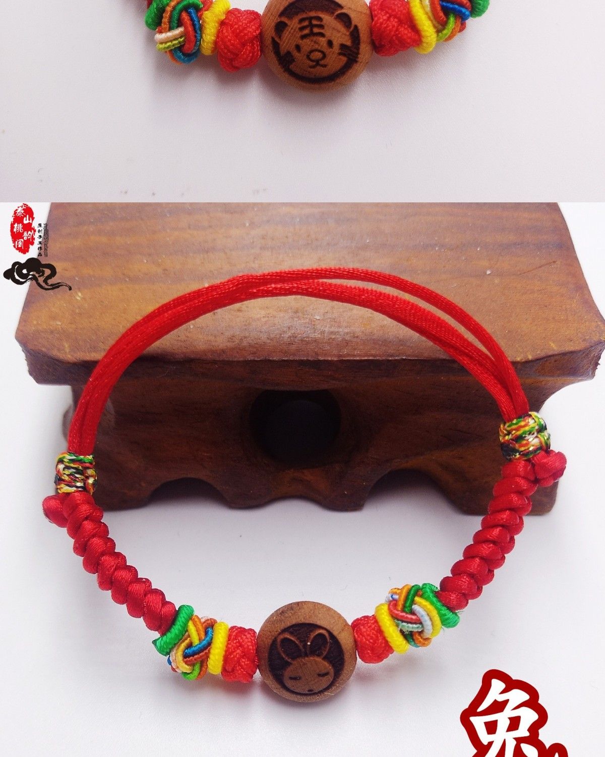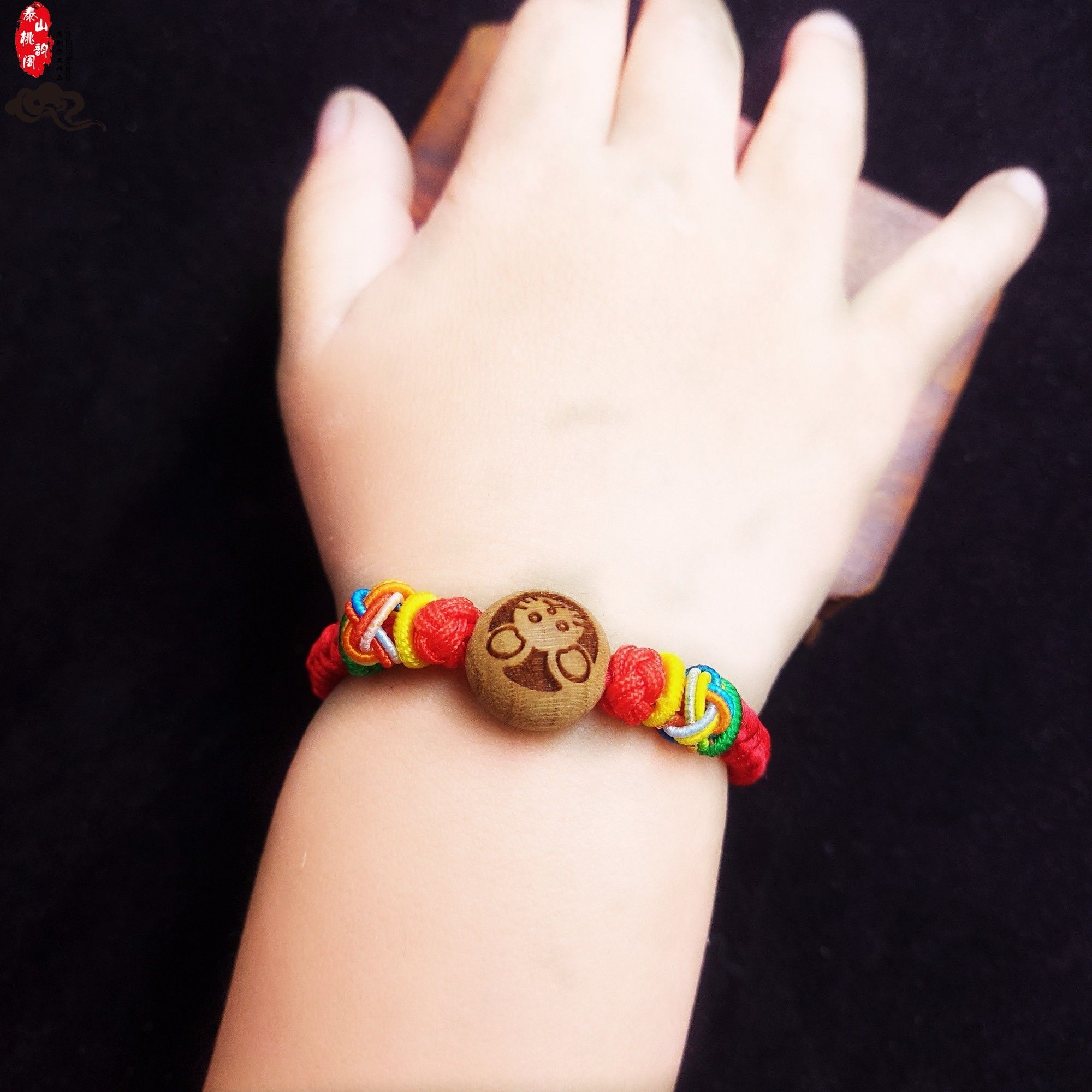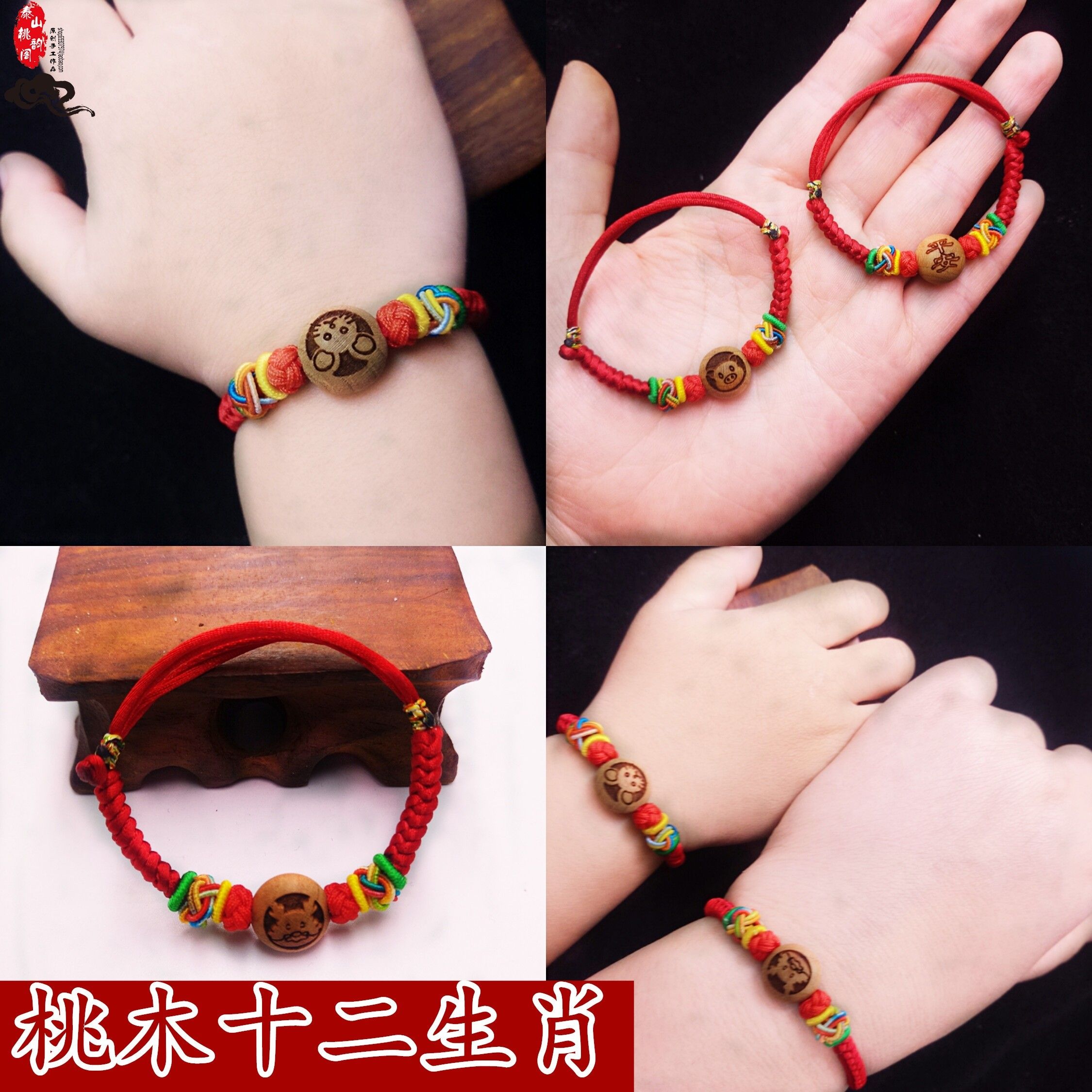 宝宝新生婴儿童小孩压惊桃木生肖红绳端午节五彩绳手链