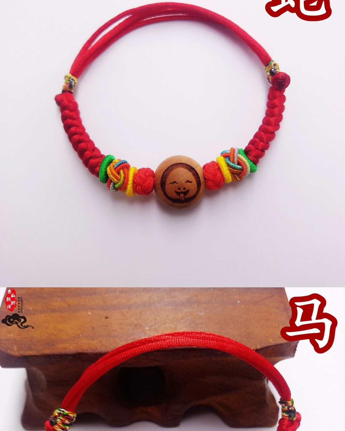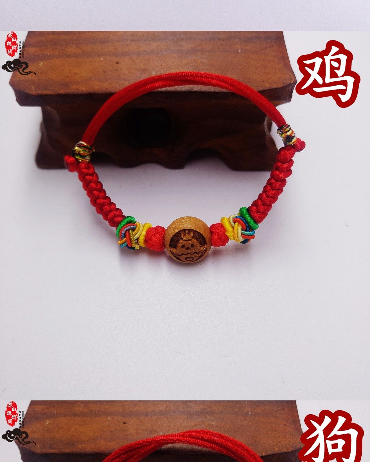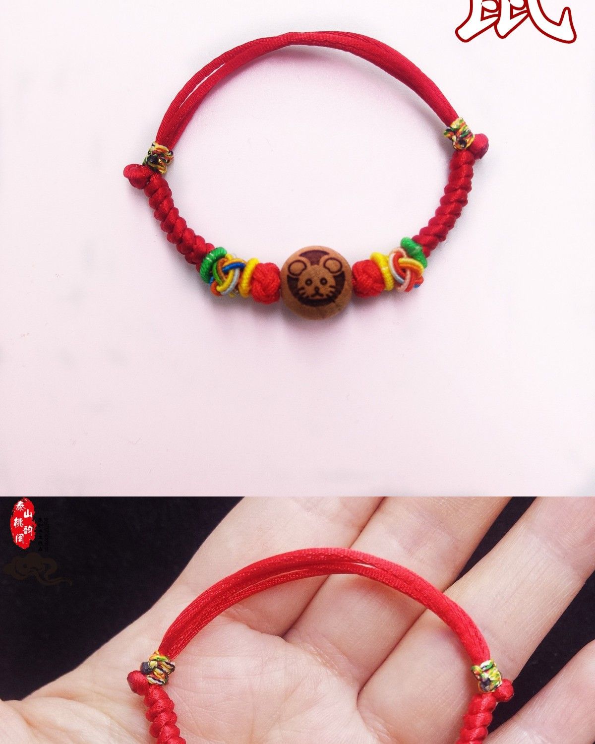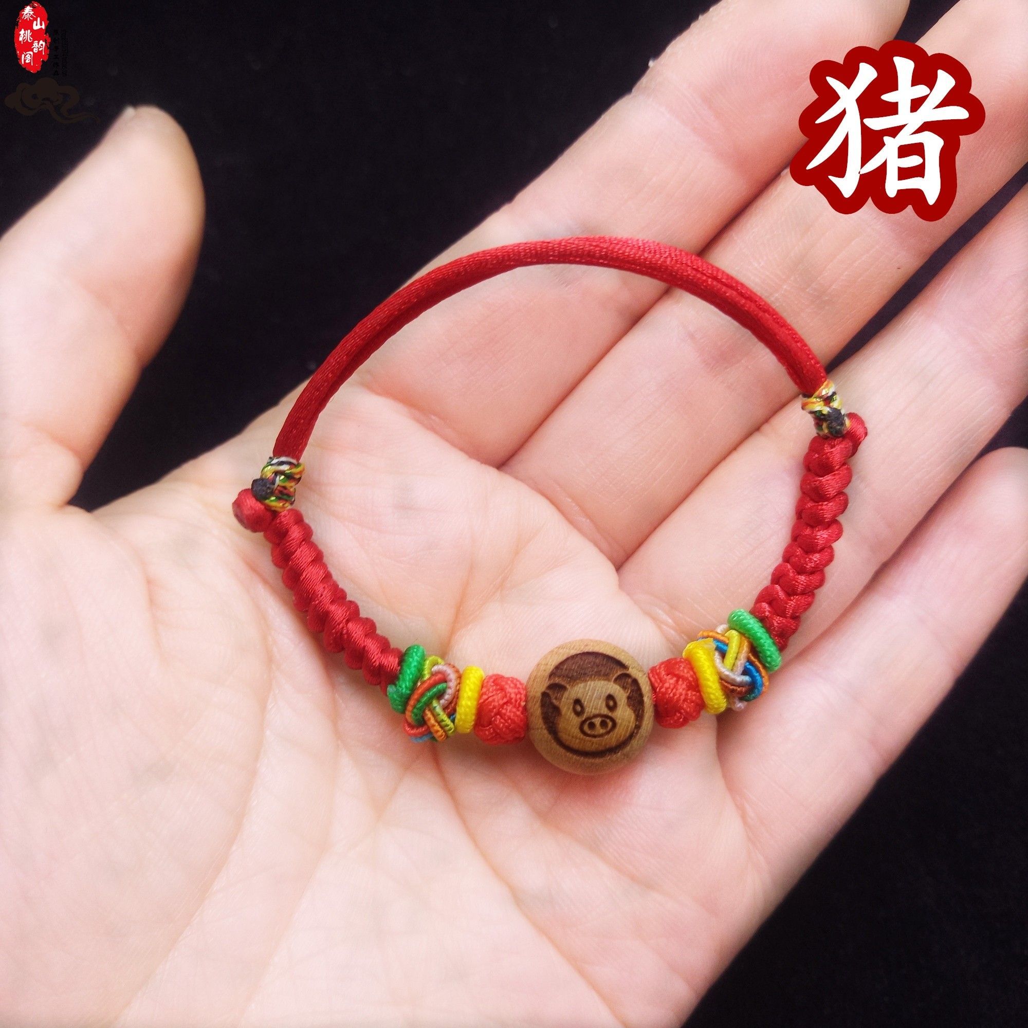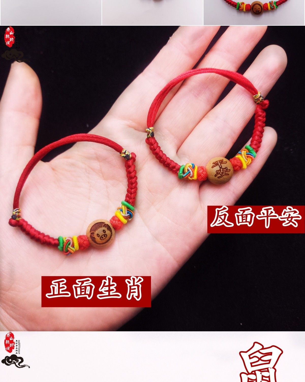 宝宝新生婴儿童小孩压惊桃木生肖红绳端午节五彩绳手链