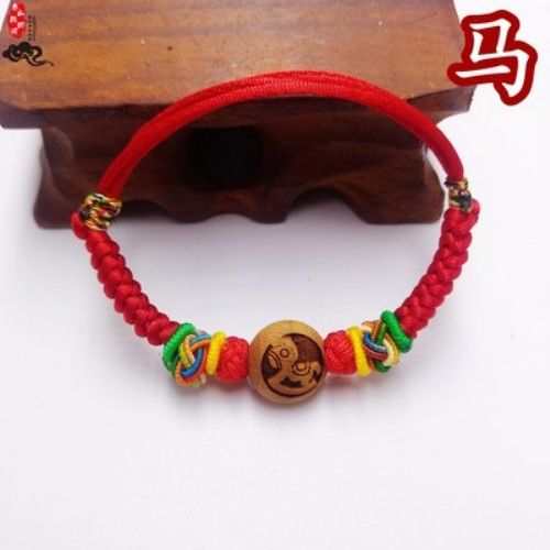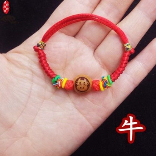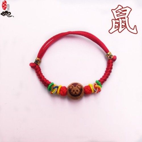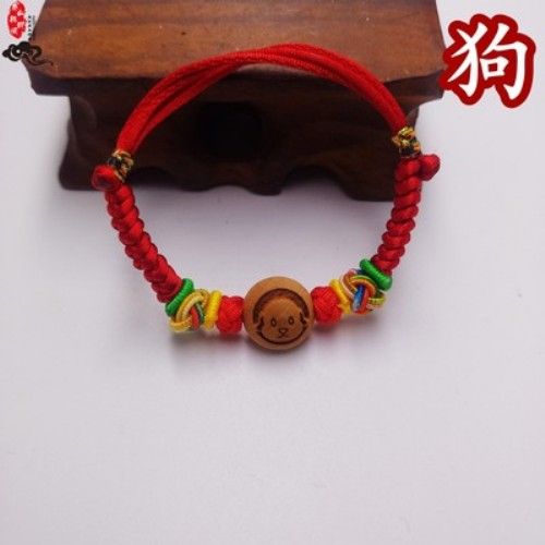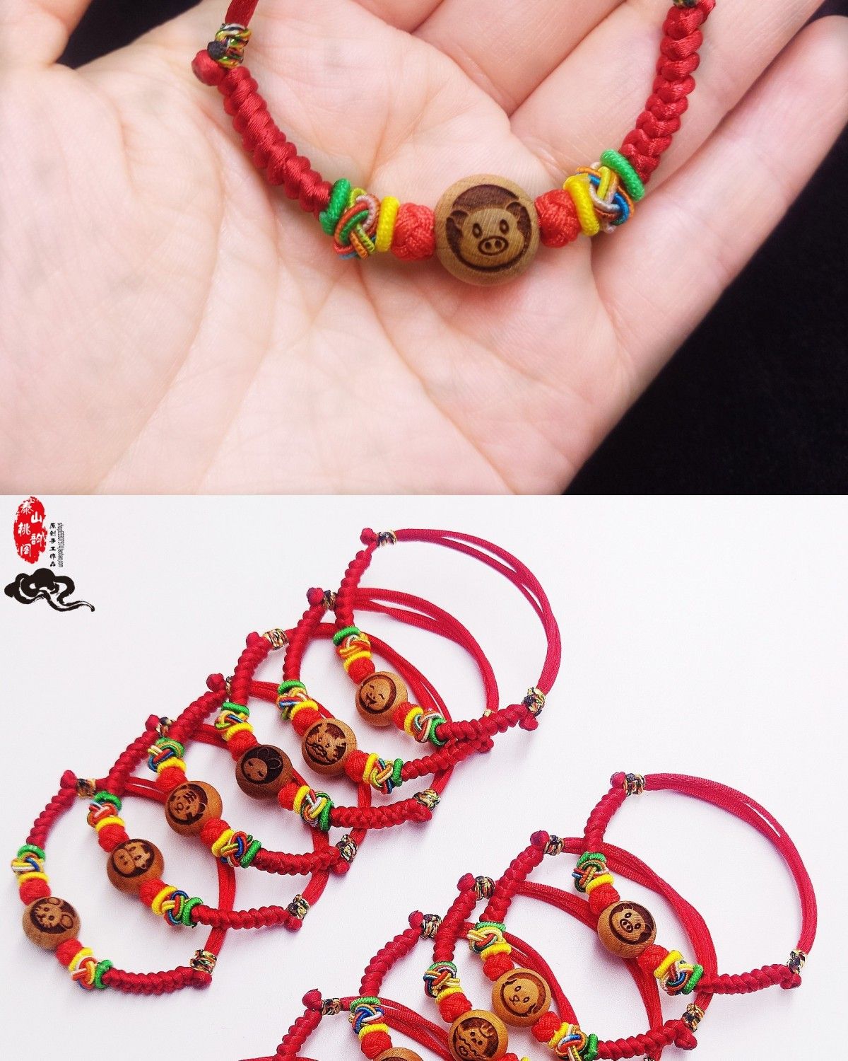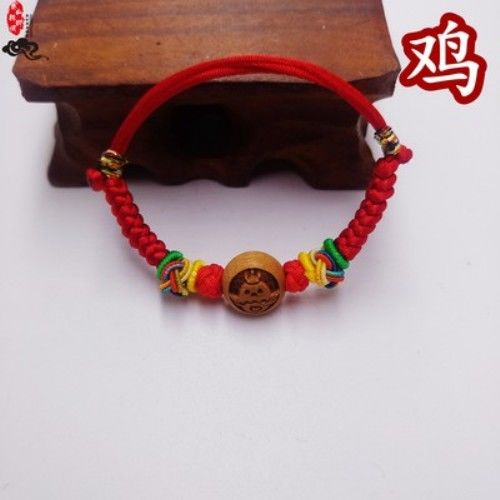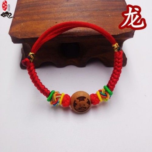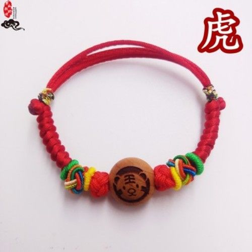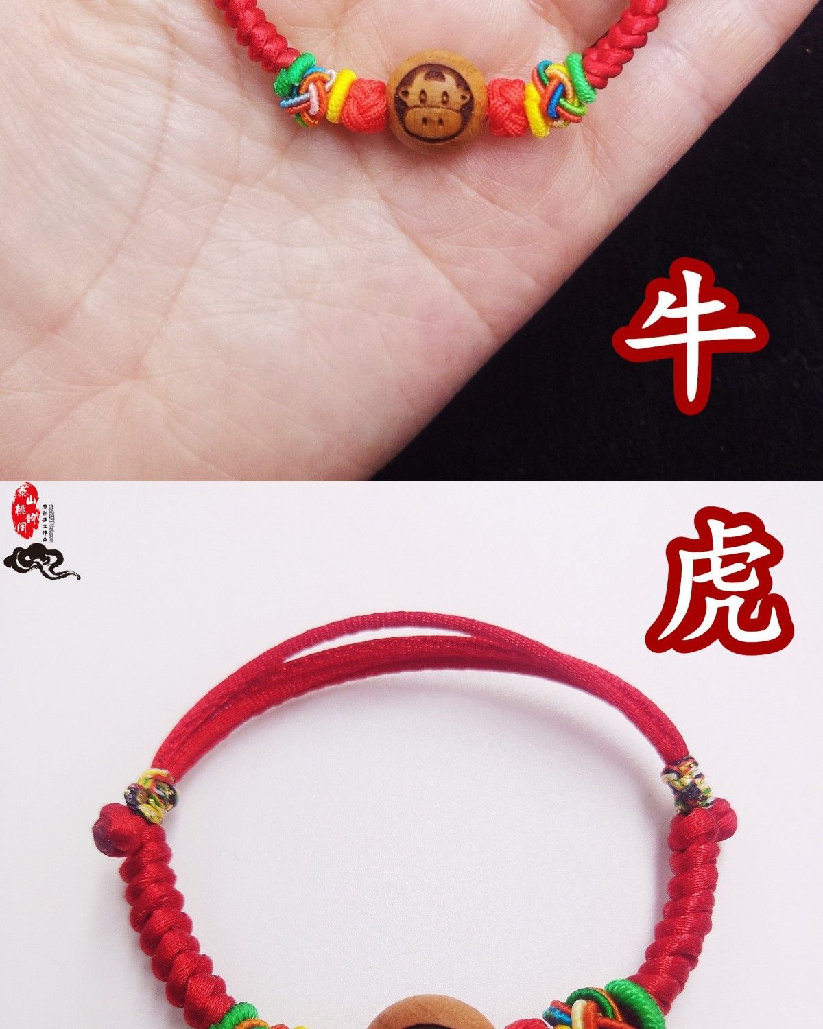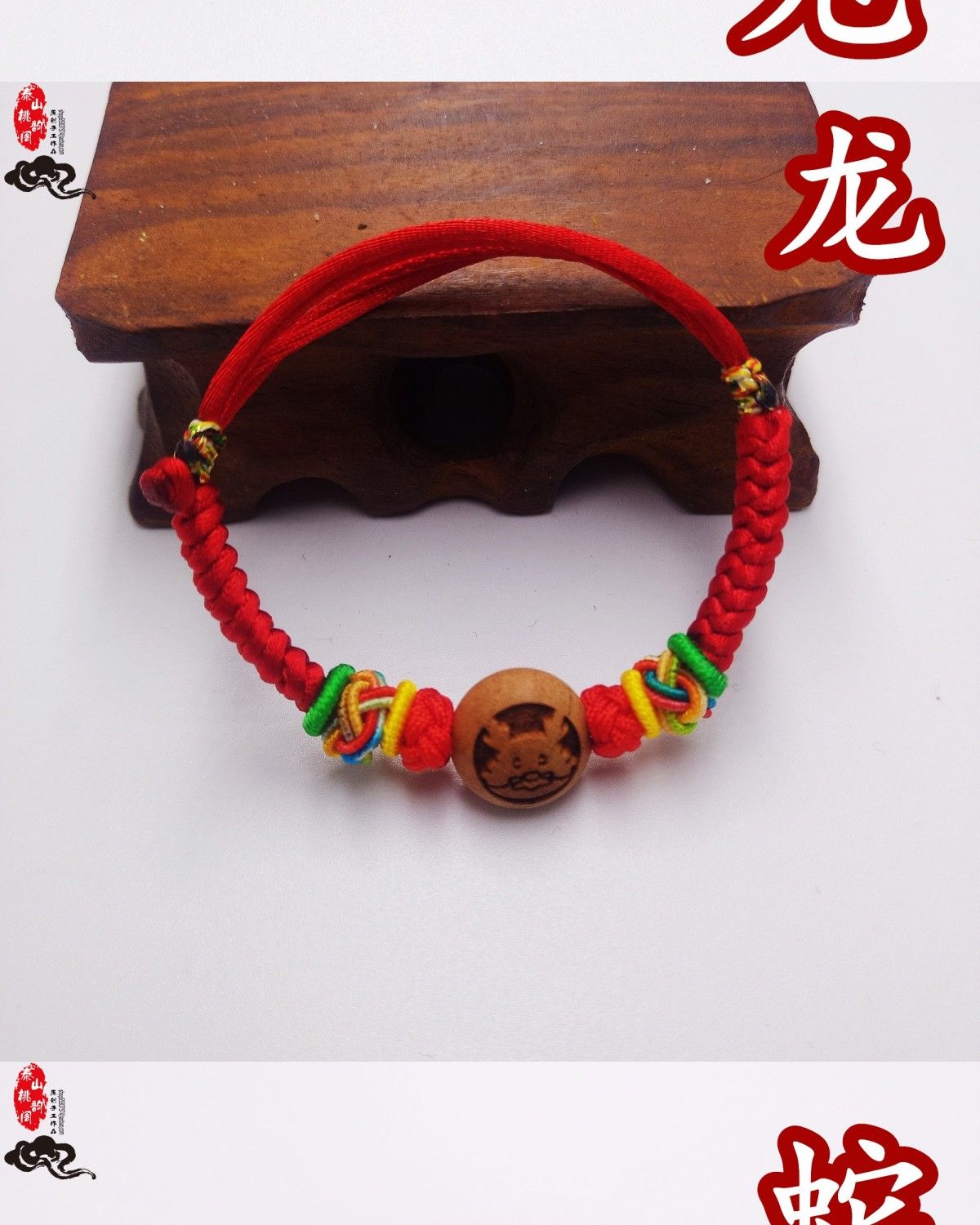 宝宝新生婴儿童小孩压惊桃木生肖红绳端午节五彩绳手链