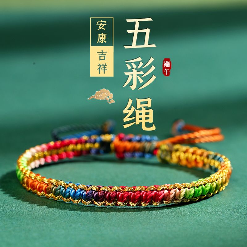 纯手工编织精品【端午节五彩绳】平结可调节婴儿儿童宝宝成人手绳