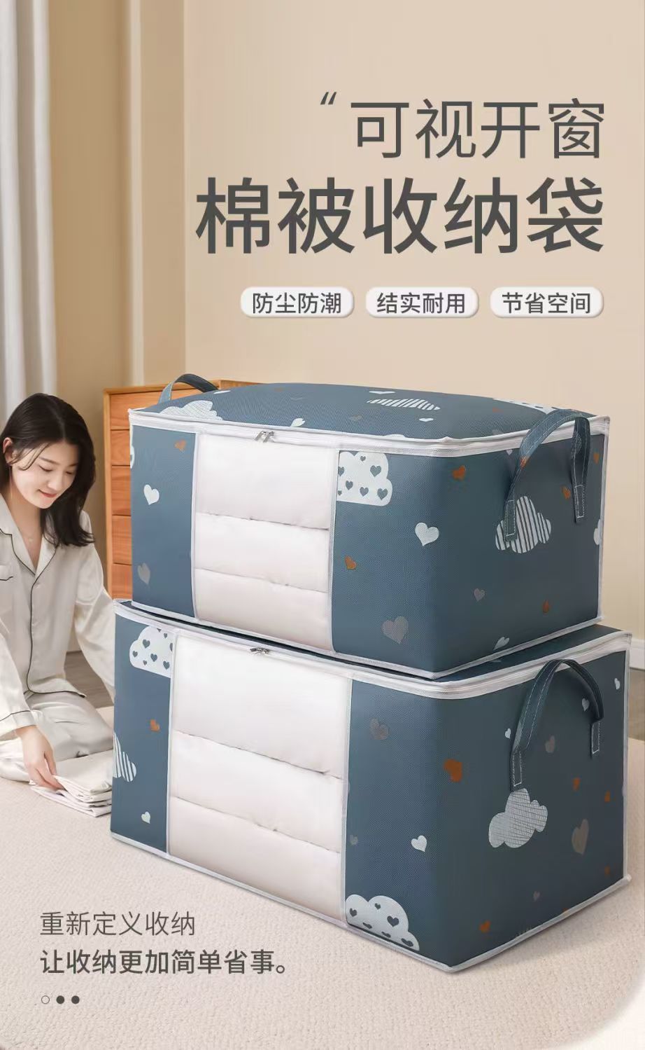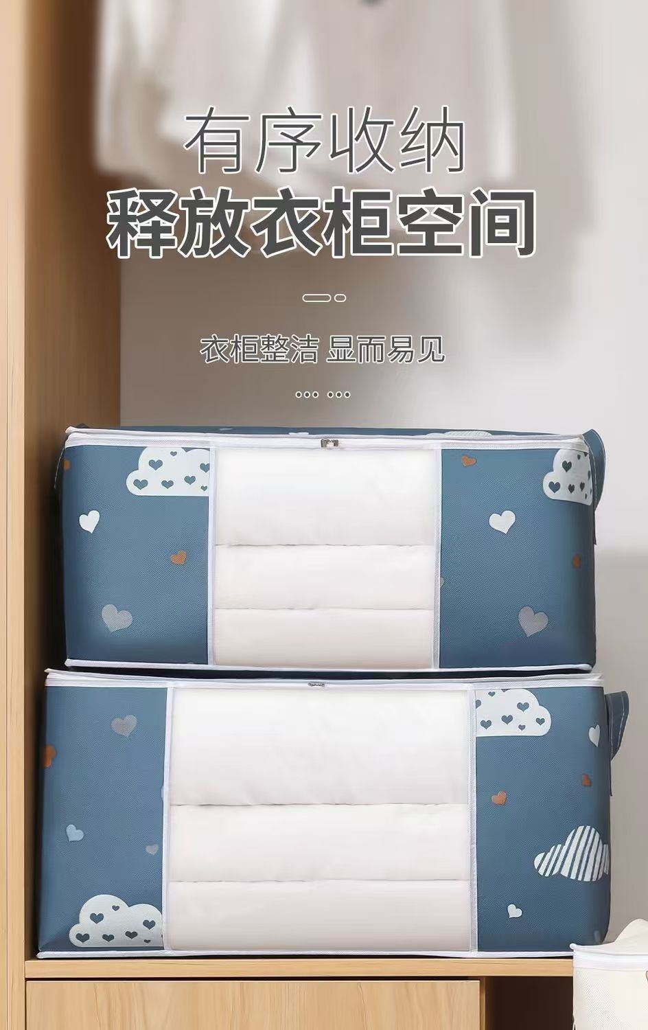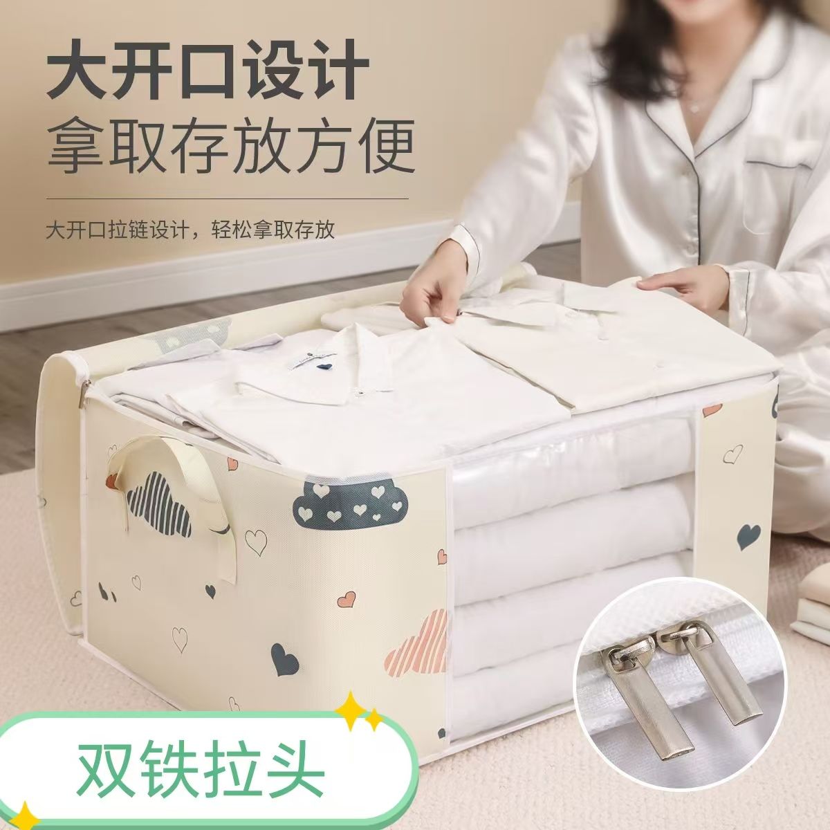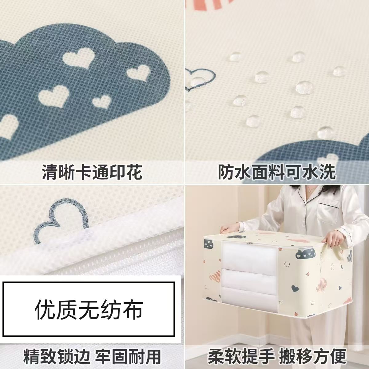 爱心云朵打包袋衣服被子收纳袋大容量防潮带提手拉链式行李搬家