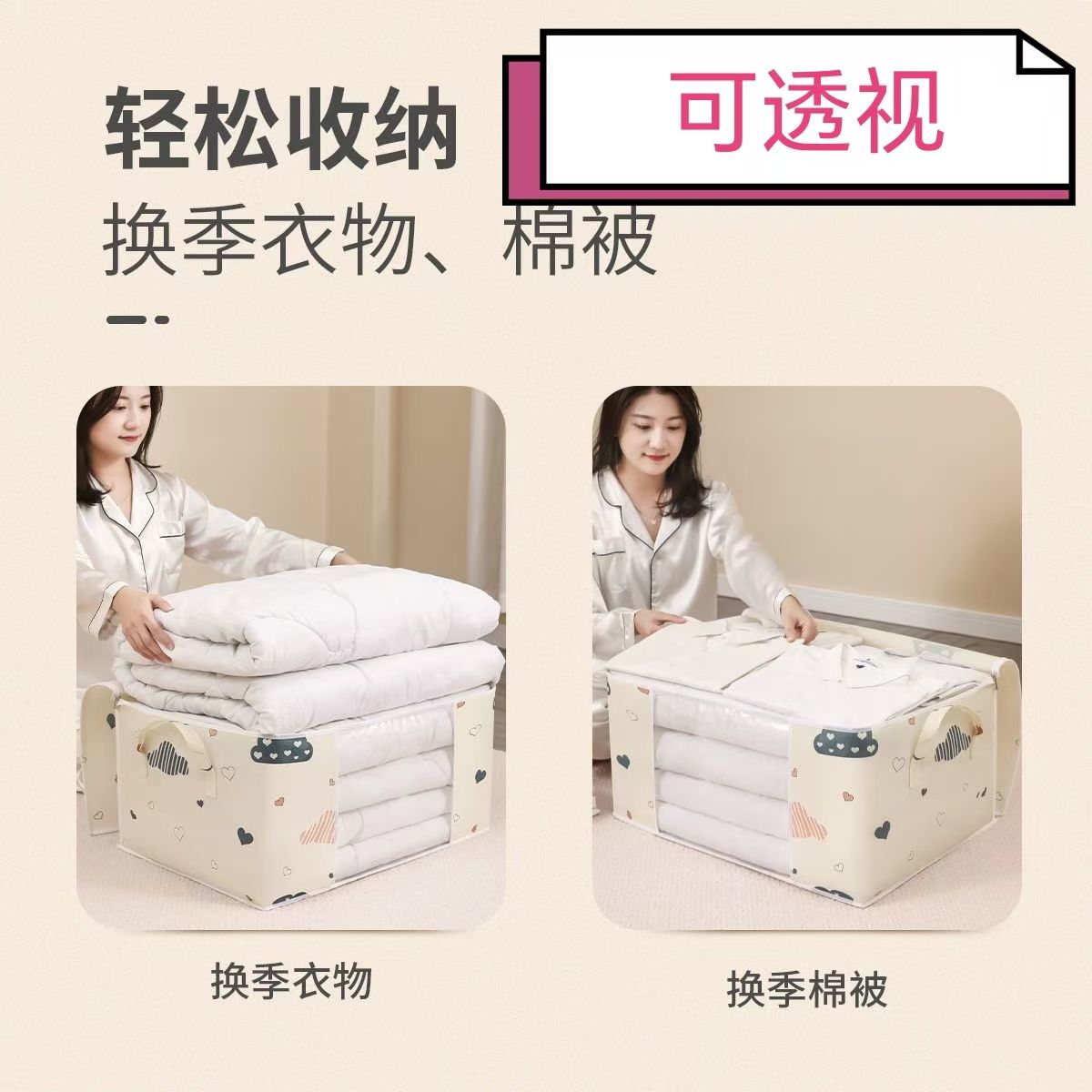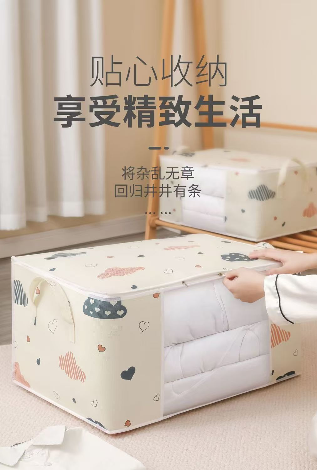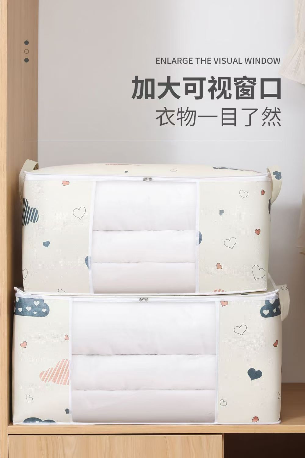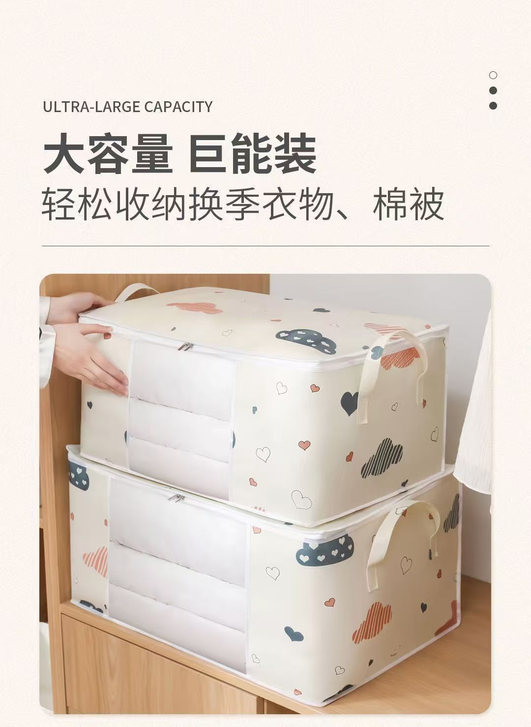 爱心云朵打包袋衣服被子收纳袋大容量防潮带提手拉链式行李搬家