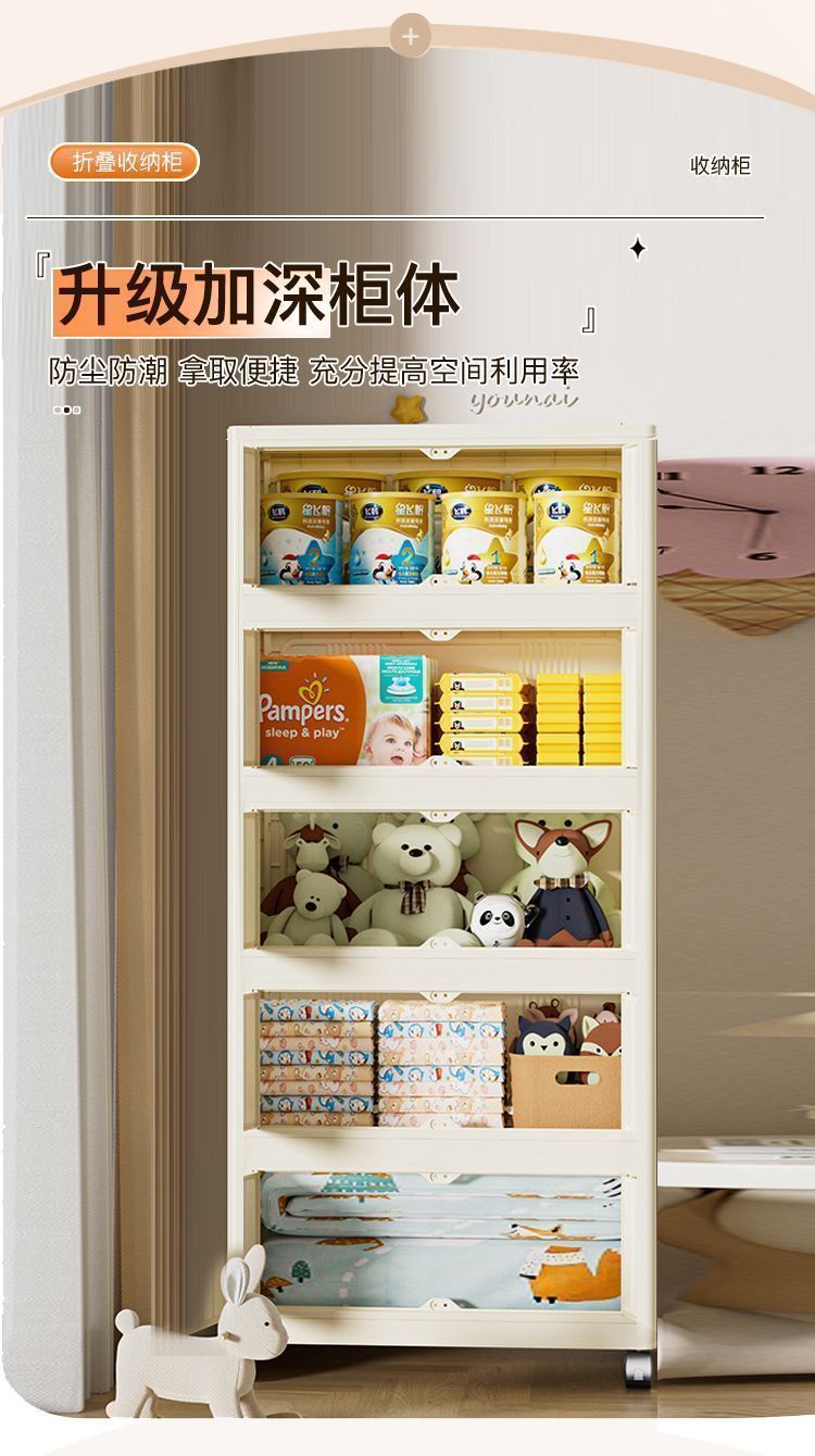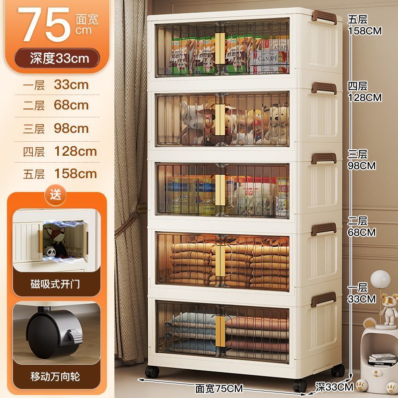 65//75面宽客厅折叠收纳柜宝宝衣柜多层玩具零食储物柜塑料置物柜