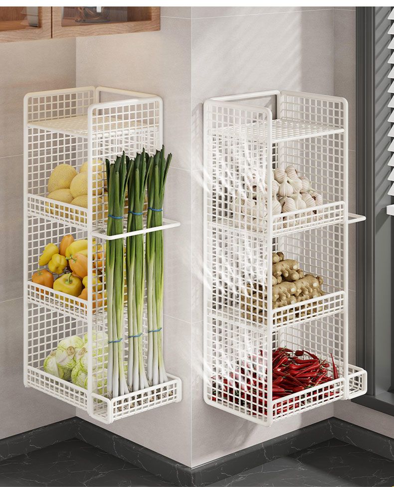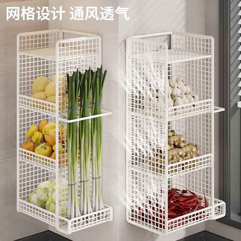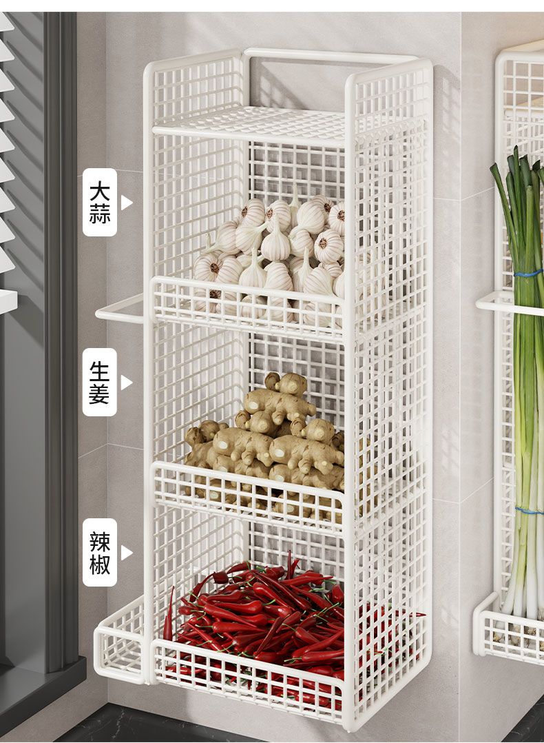 厨房葱姜蒜收纳置物架免打孔墙上壁挂式架多层蔬菜放果蔬菜篮架子