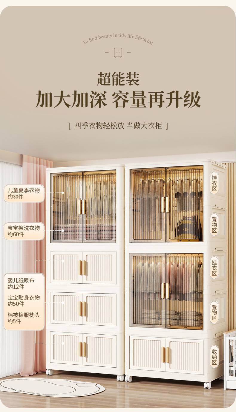 | two-layer transparent closet-one-layer cream folding cabinet (large cabinet): three-layer(二层透明挂衣柜-一层奶油折叠柜(大柜):三层) | USD $113.0 | 999999 piece available |