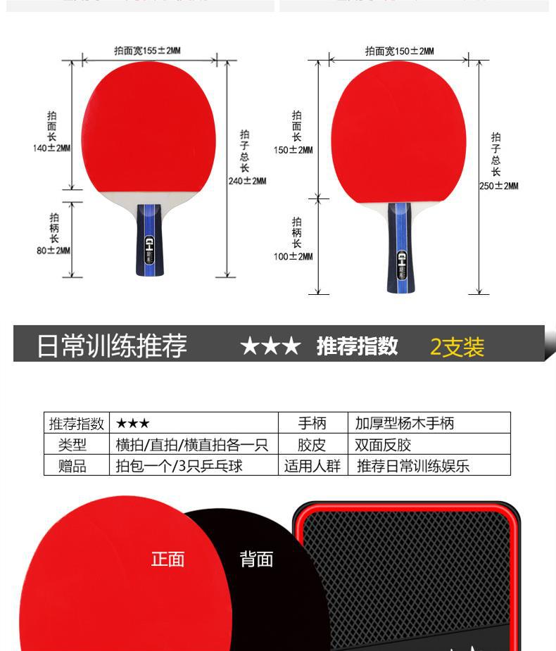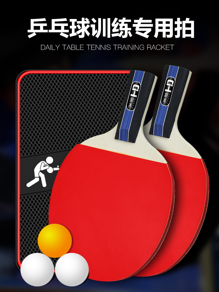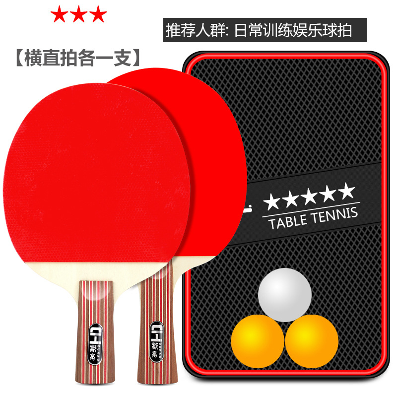 乒乓球拍2只装三星单双拍成品兵兵拍直拍横拍儿童套装学生乒乓球