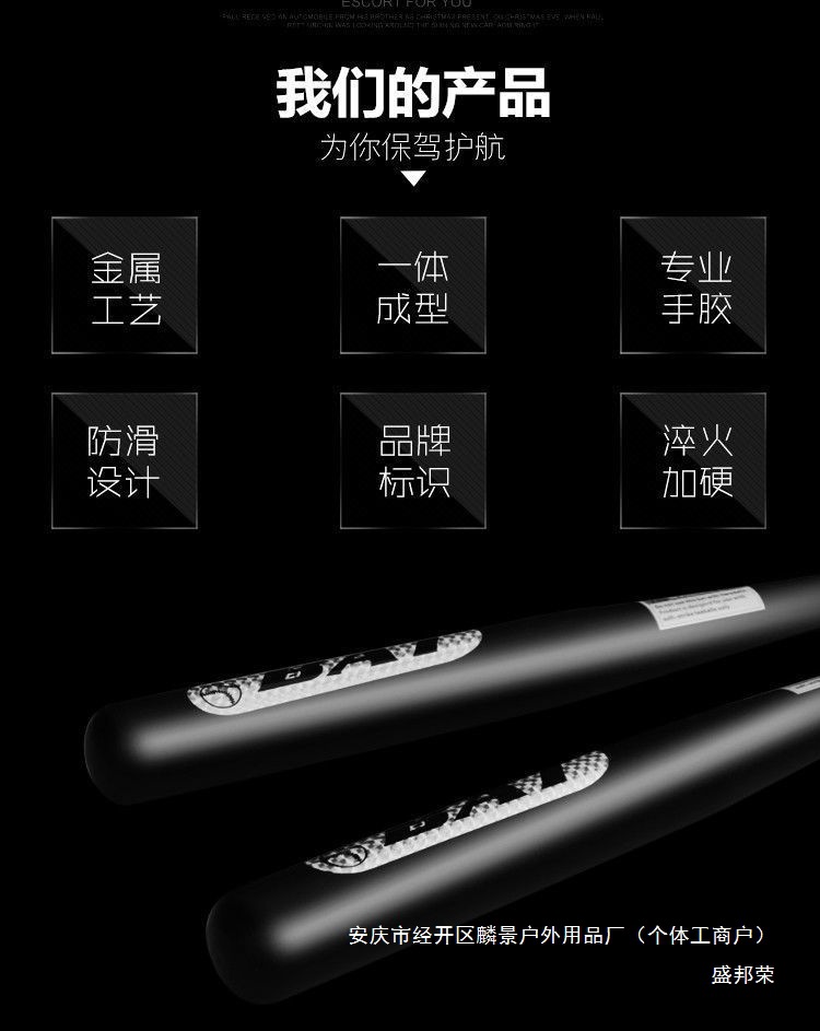 加厚车载防身棒球棍合金钢磨砂黑防卫加粗杆家庭哑光棒球棒棒球无