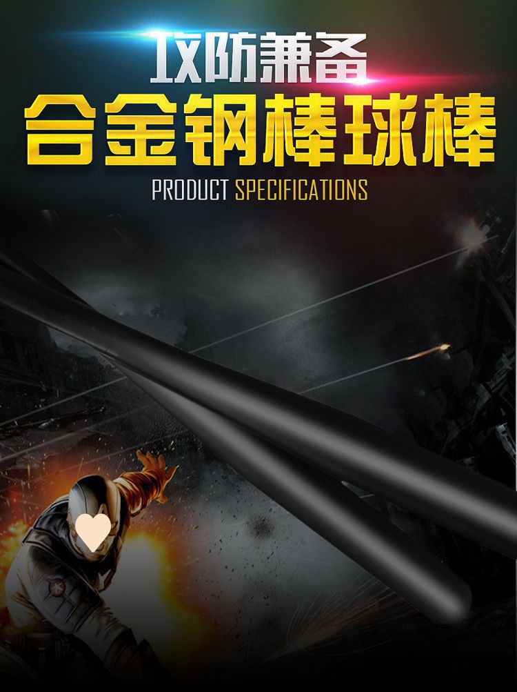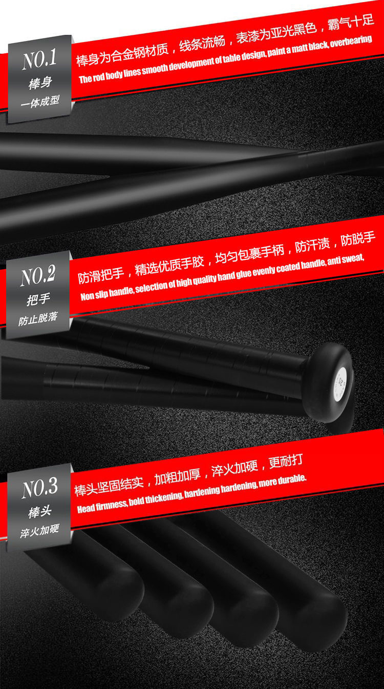 棒球棍合金钢棒球棒车载棒球磨砂哑光黑加粗加厚家庭防卫棒球杆