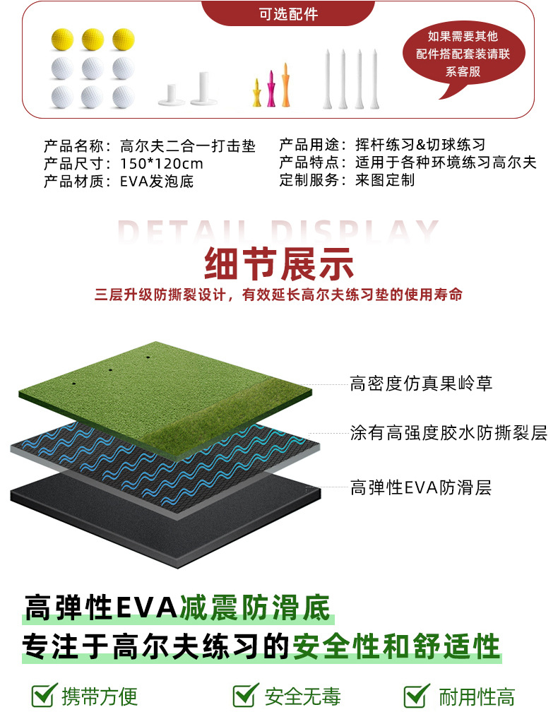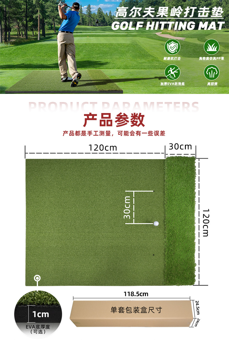 跨境热销户外高尔夫球垫 高弹双草挥杆练习垫golfmat高尔夫打击垫