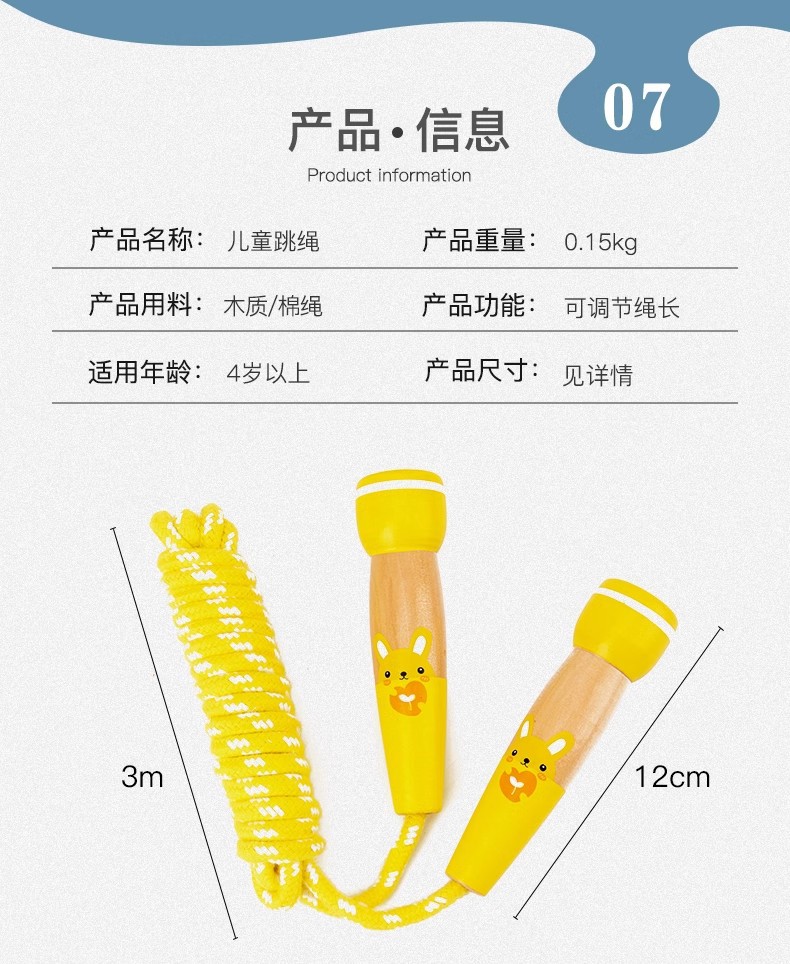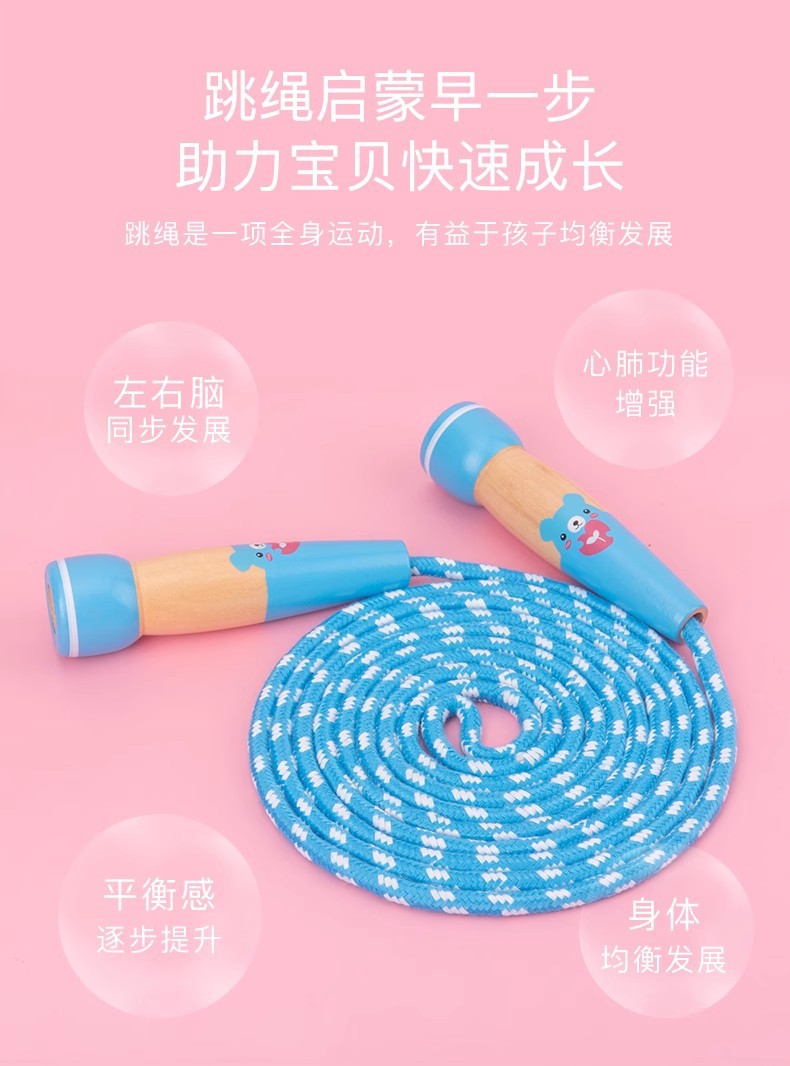 儿童跳绳幼儿园小学生专用初学可调节一二年级小孩运动健身木跳绳