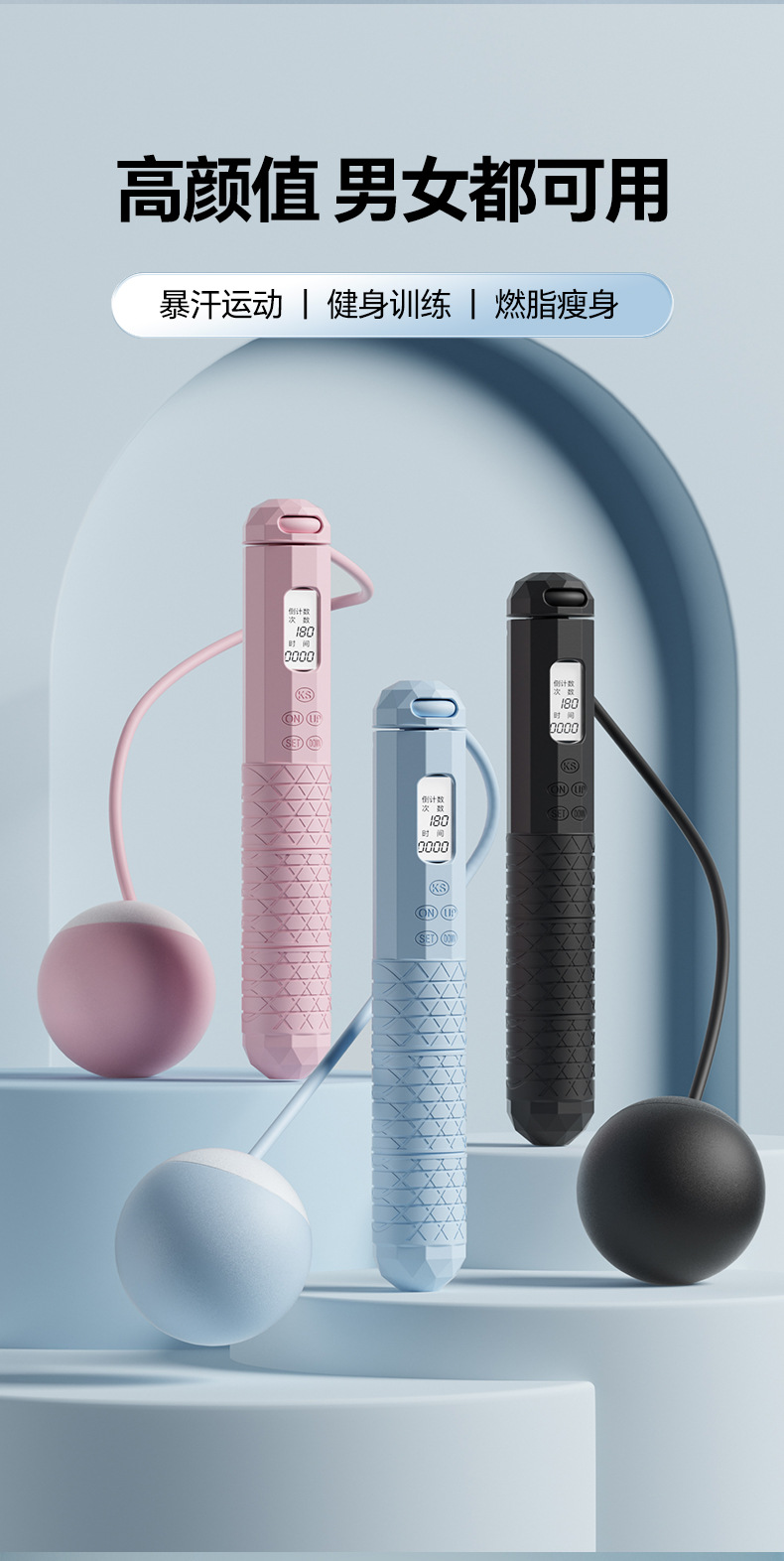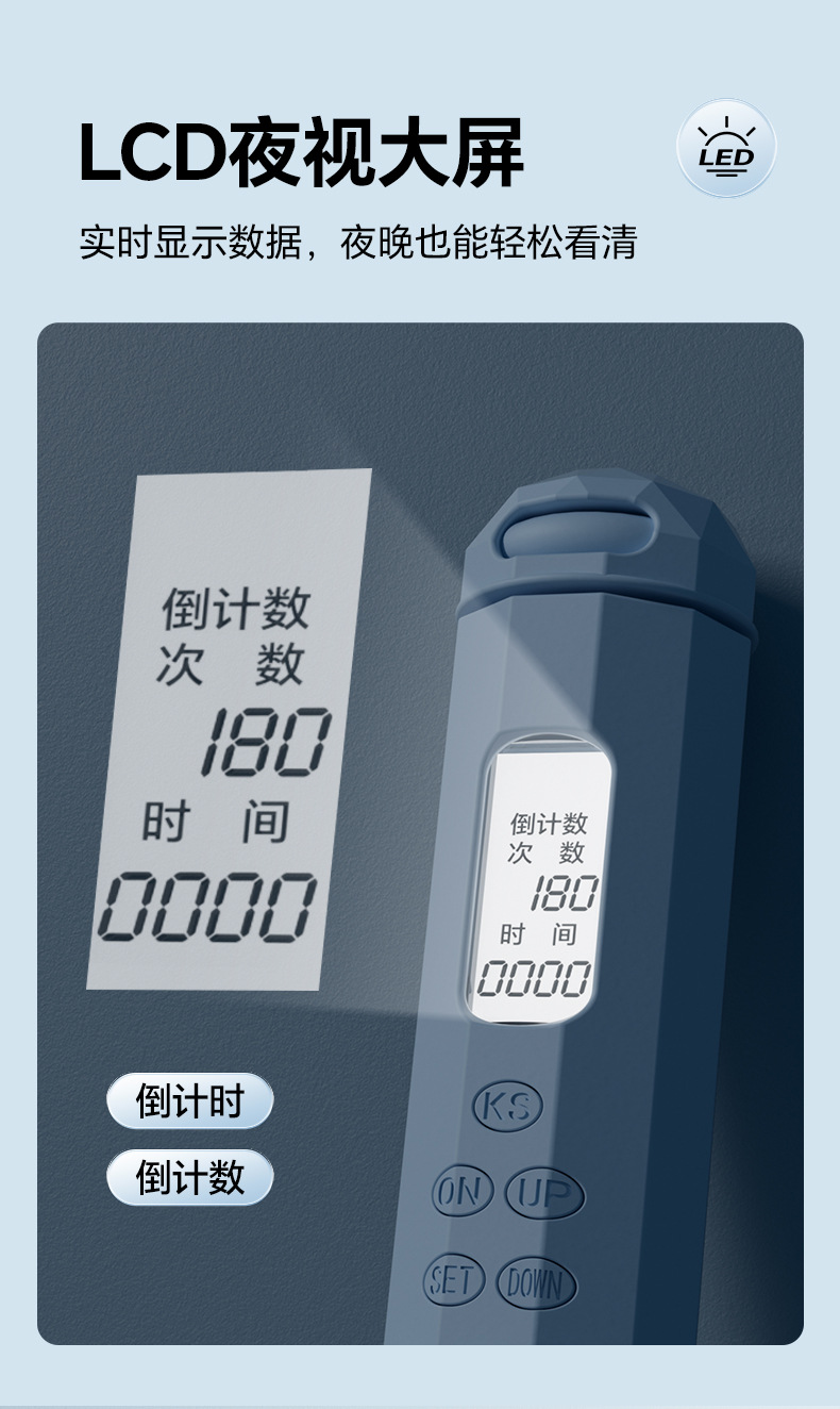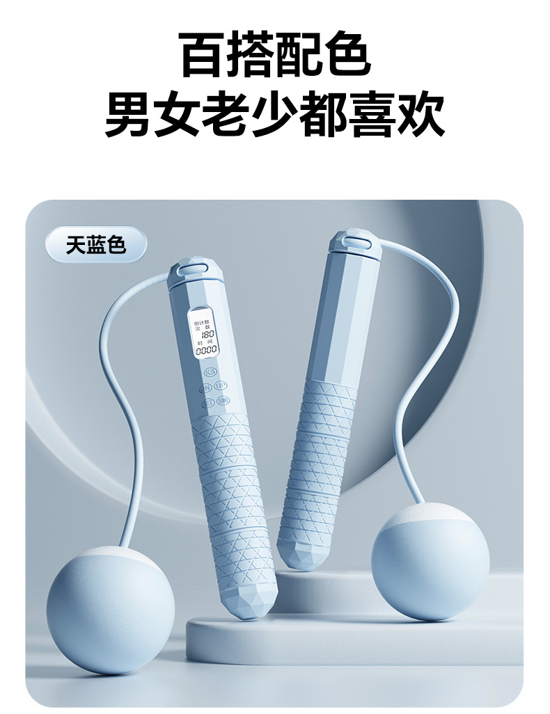无绳跳绳健身运动专用智能计时计数款负重球专业五键夜视大屏跳绳