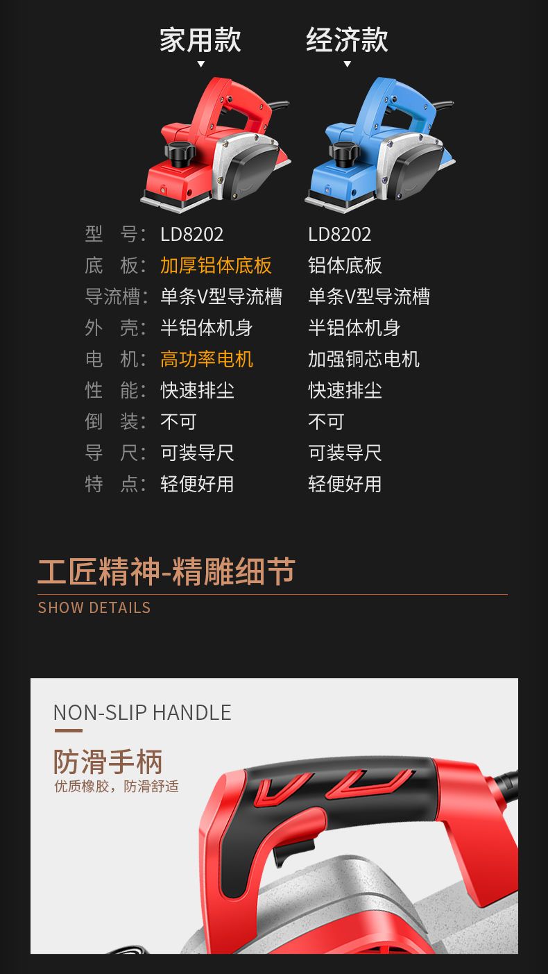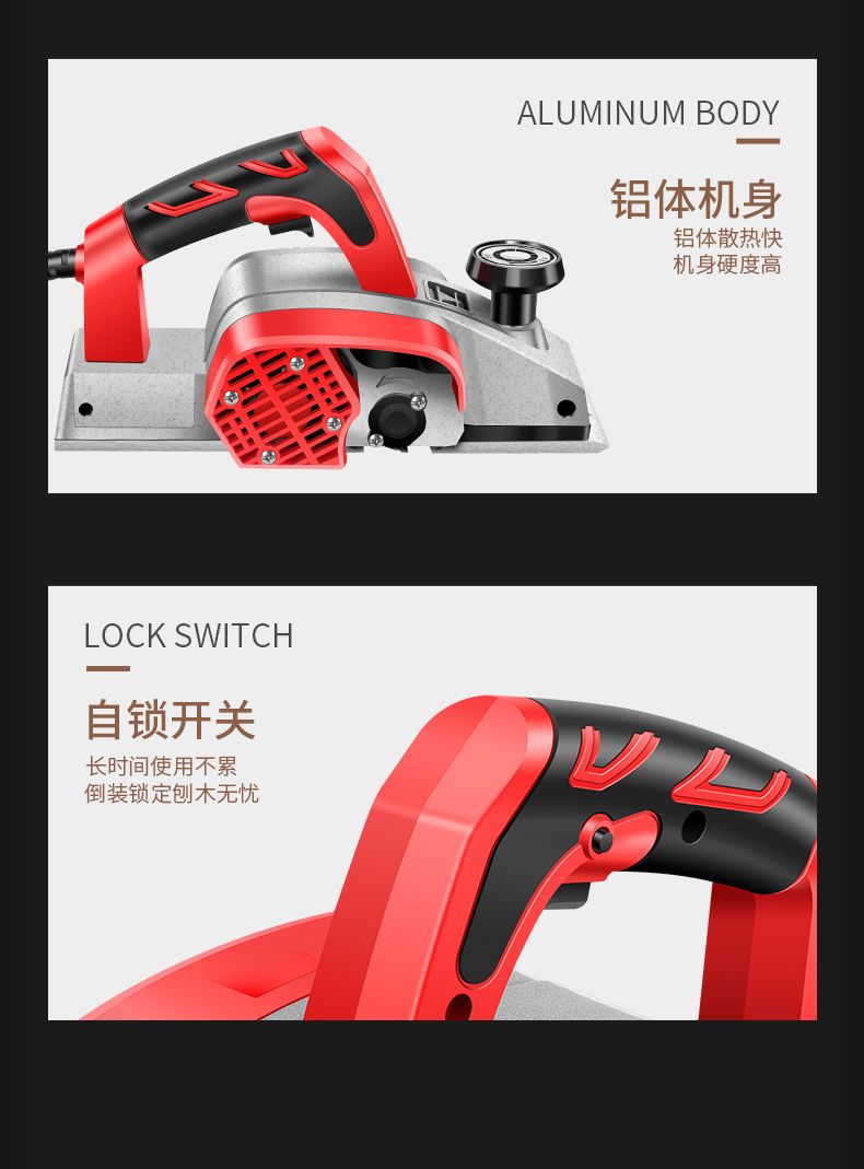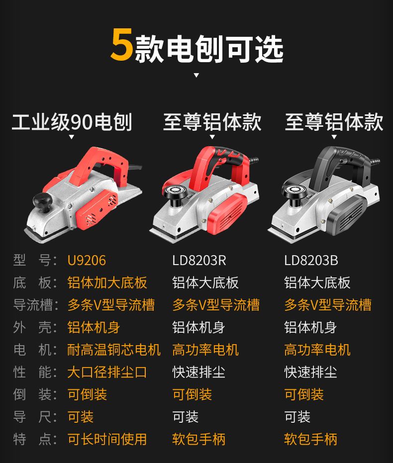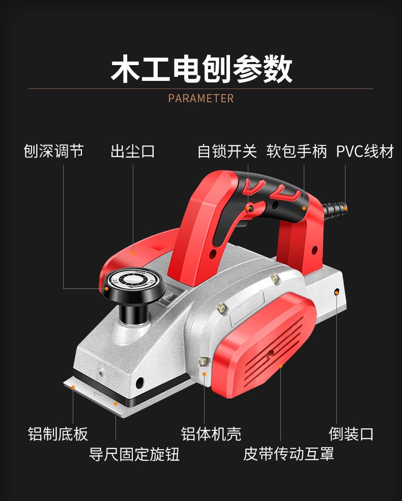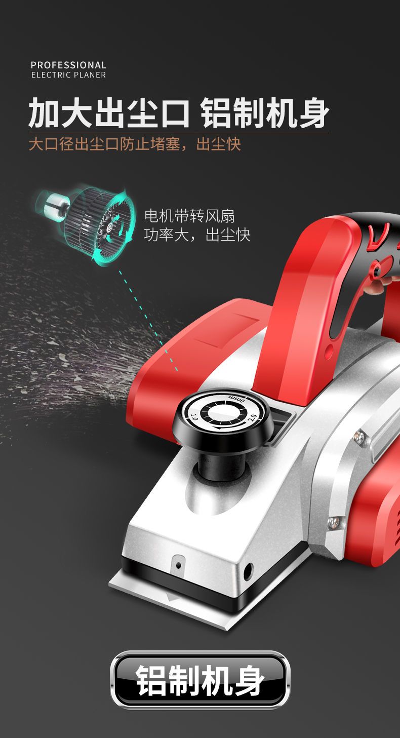 | economic model aluminum platen base electric planer [carton] factory configuration gift package.(经济款铝底板电刨【纸箱】 出厂配置送礼包.) | USD $17.5 | 999999 piece available |