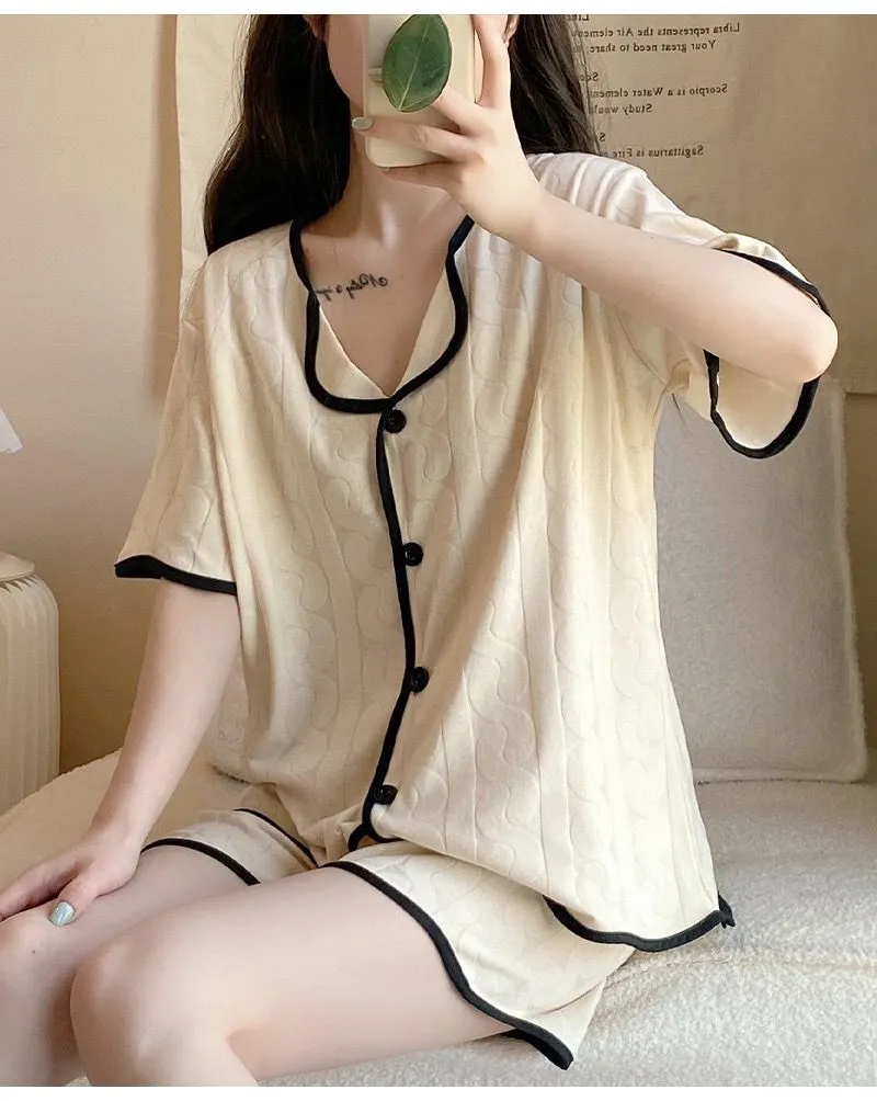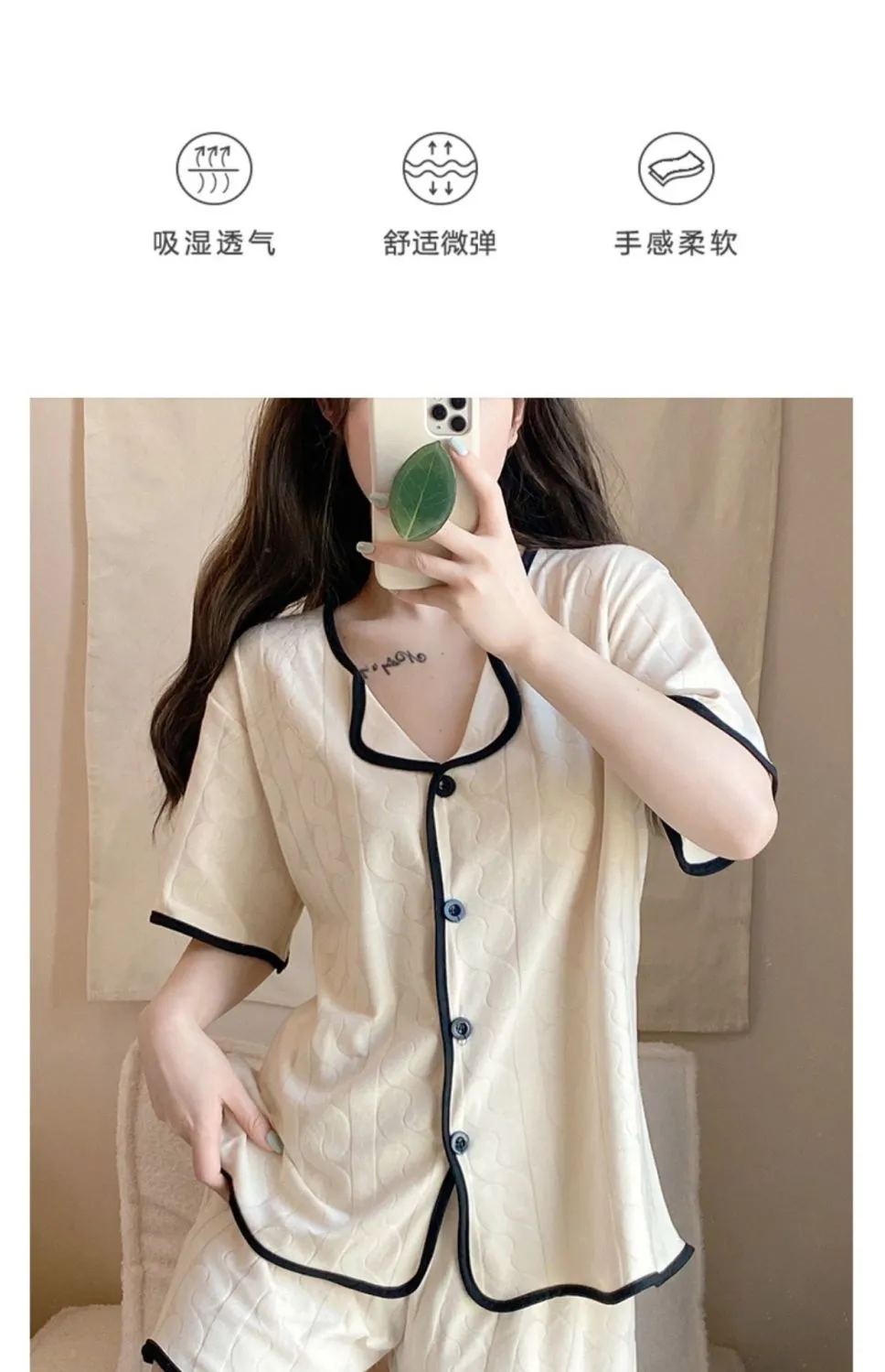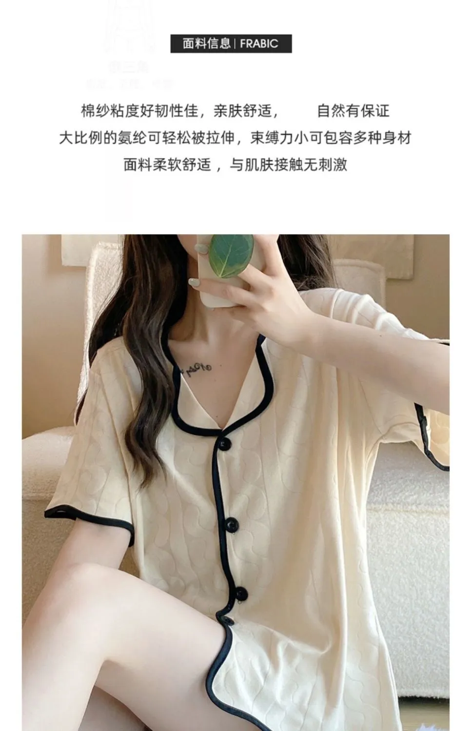 小香风睡衣女夏季短袖短裤薄款开衫学生韩版夏天高级感家居服套装