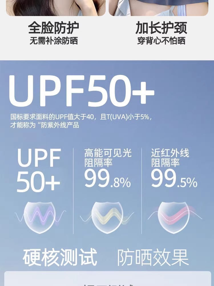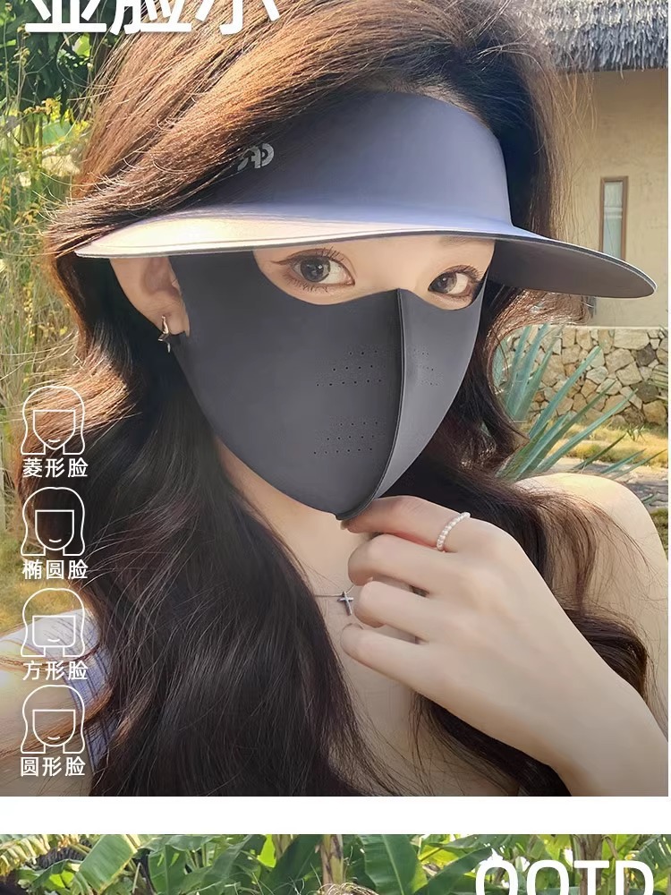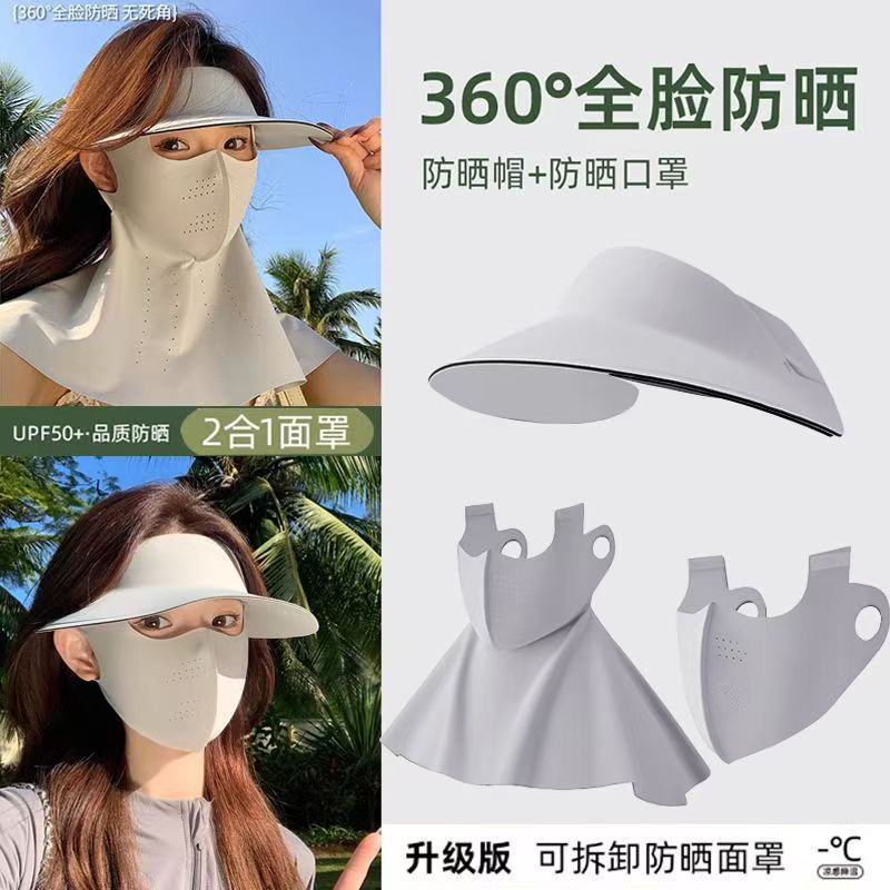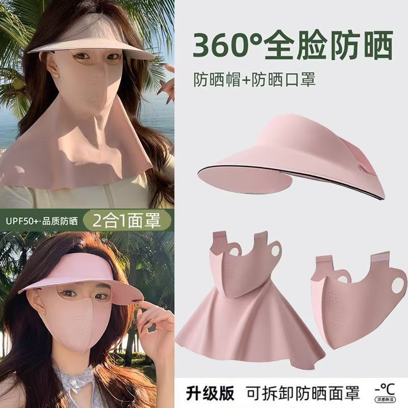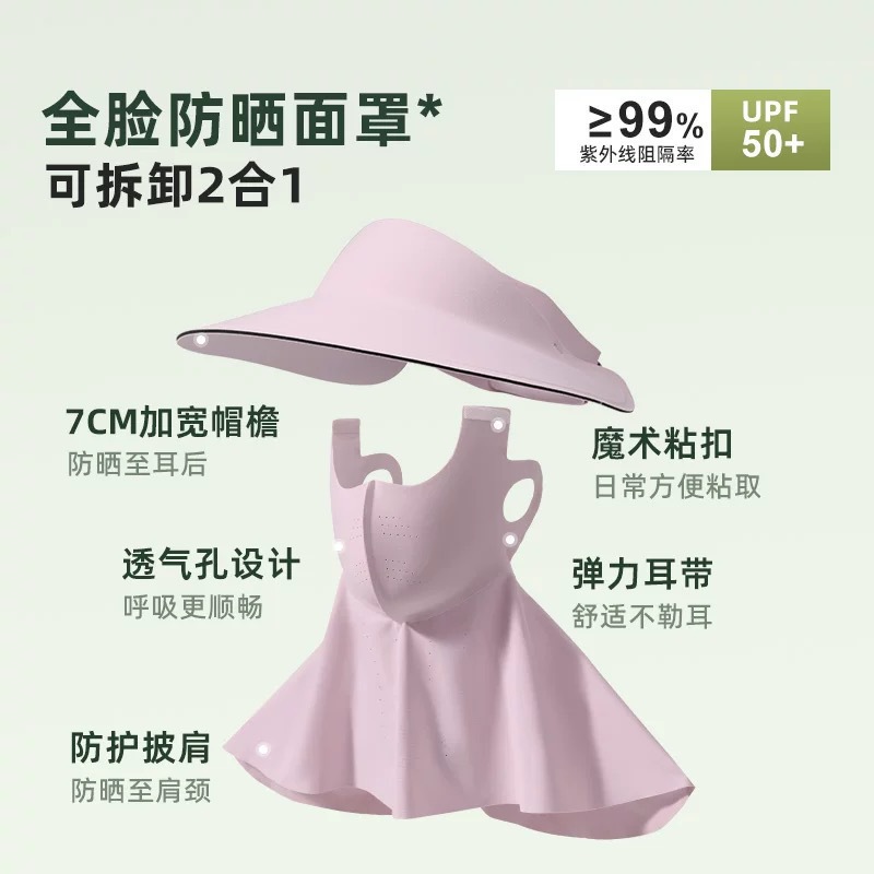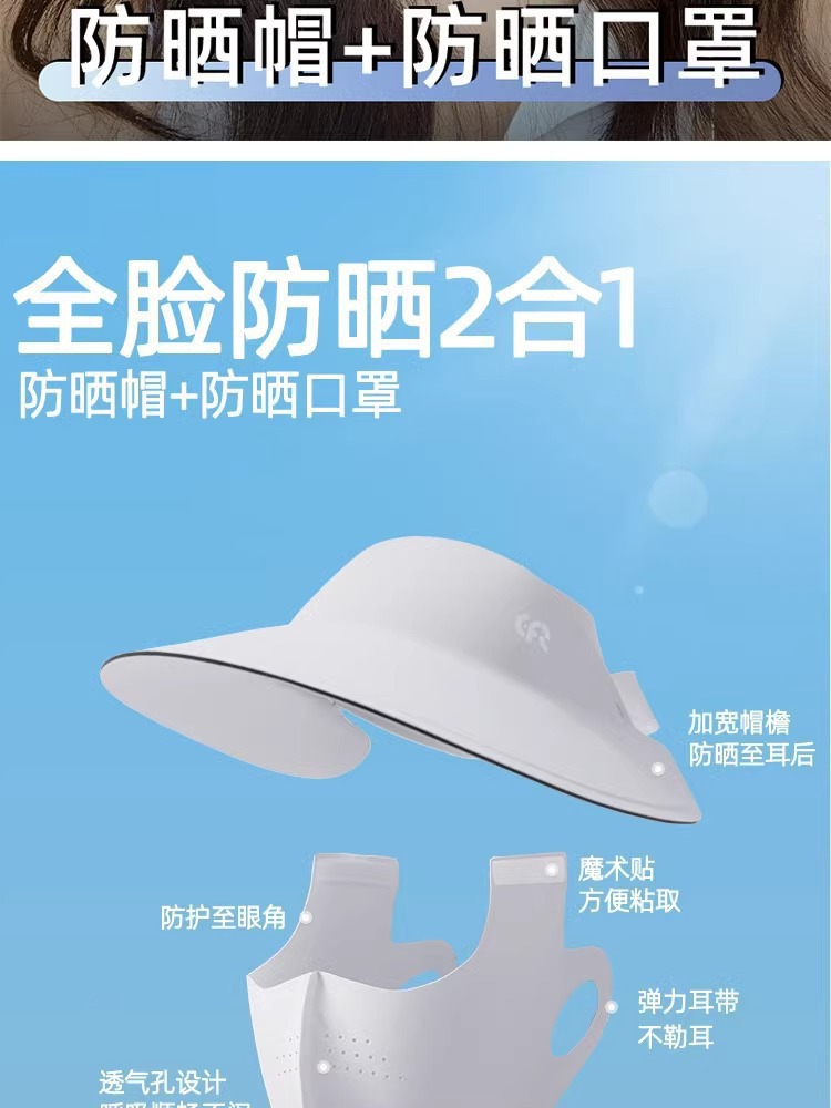 爆款新品三合一防晒面罩一体帽可拆卸夏季女护全脸骑行无痕帽脸基