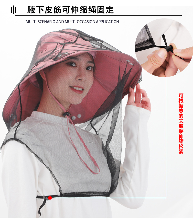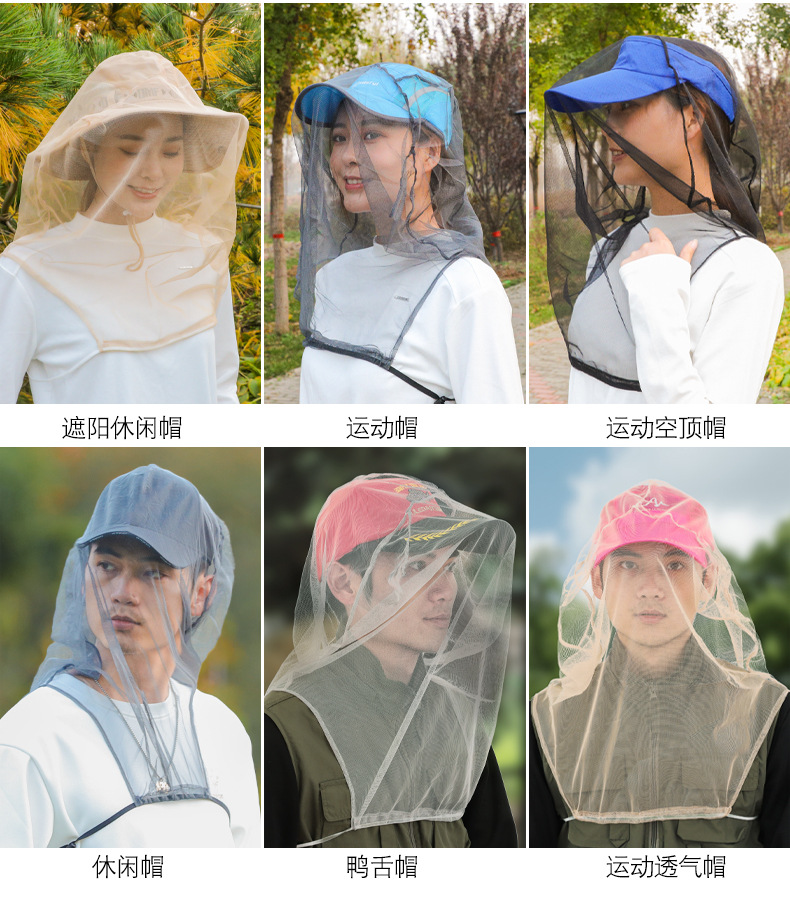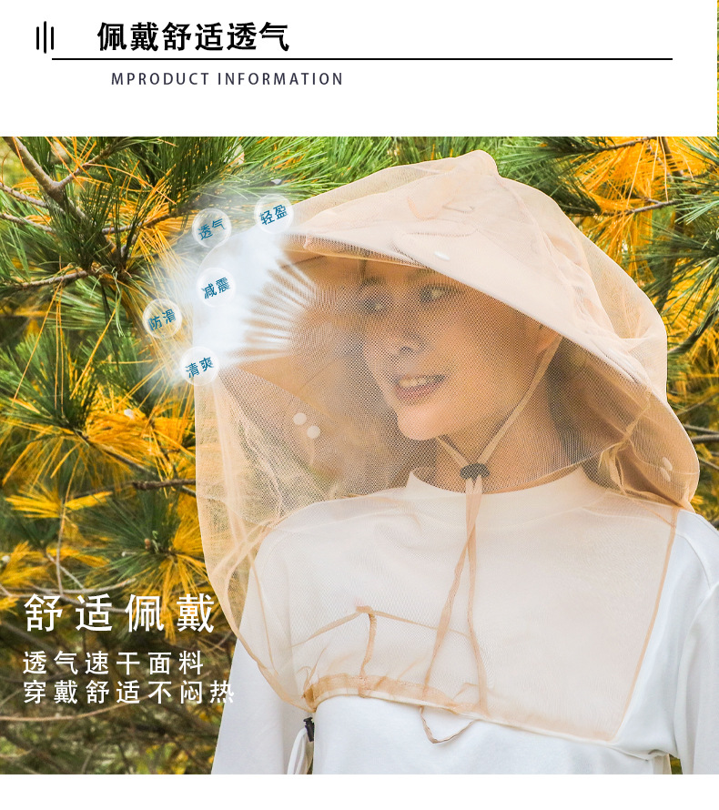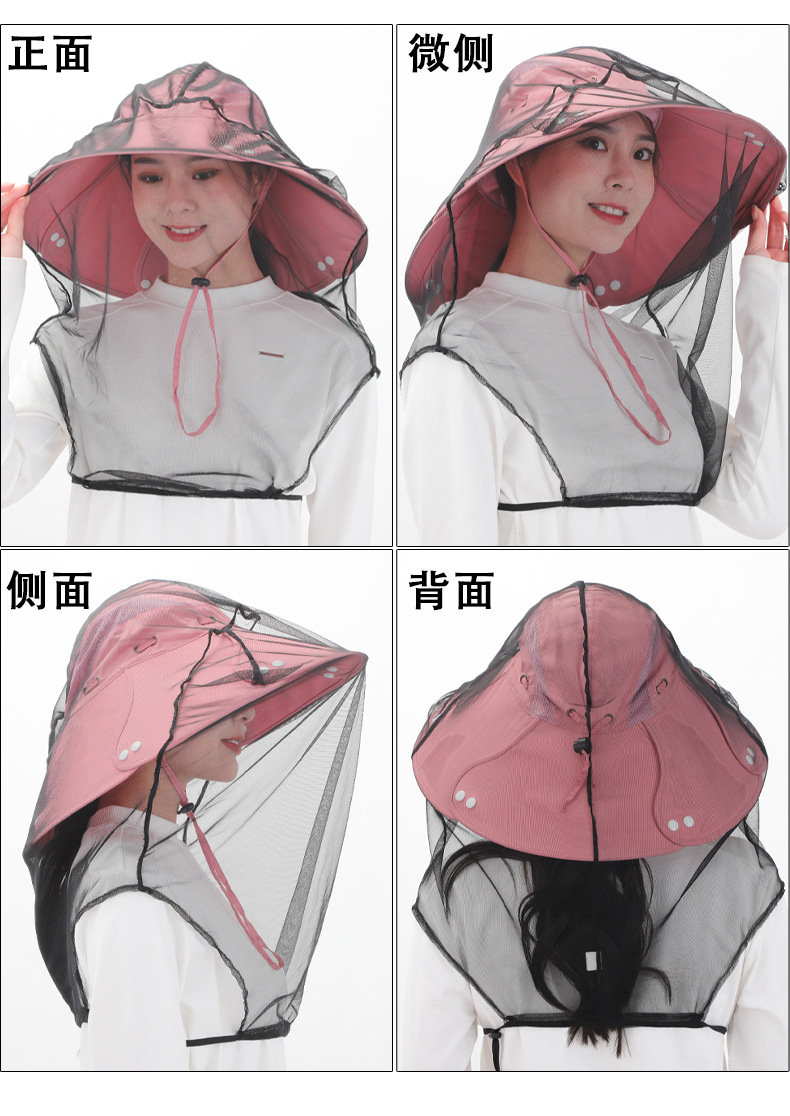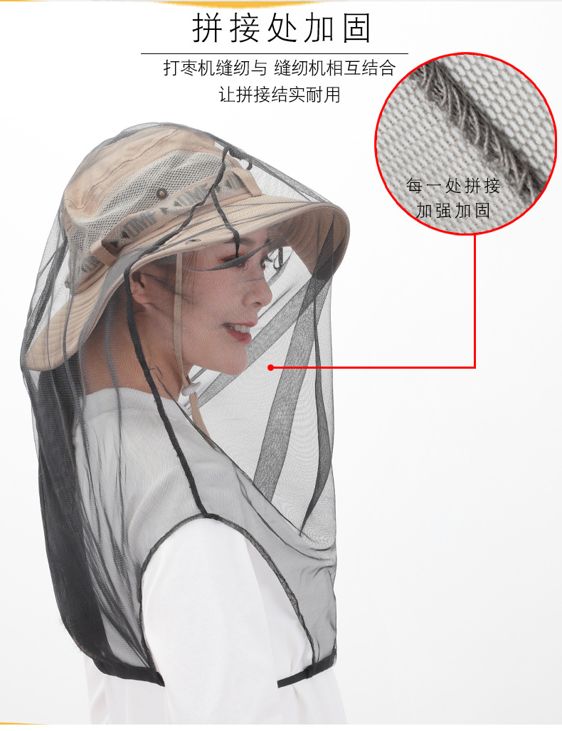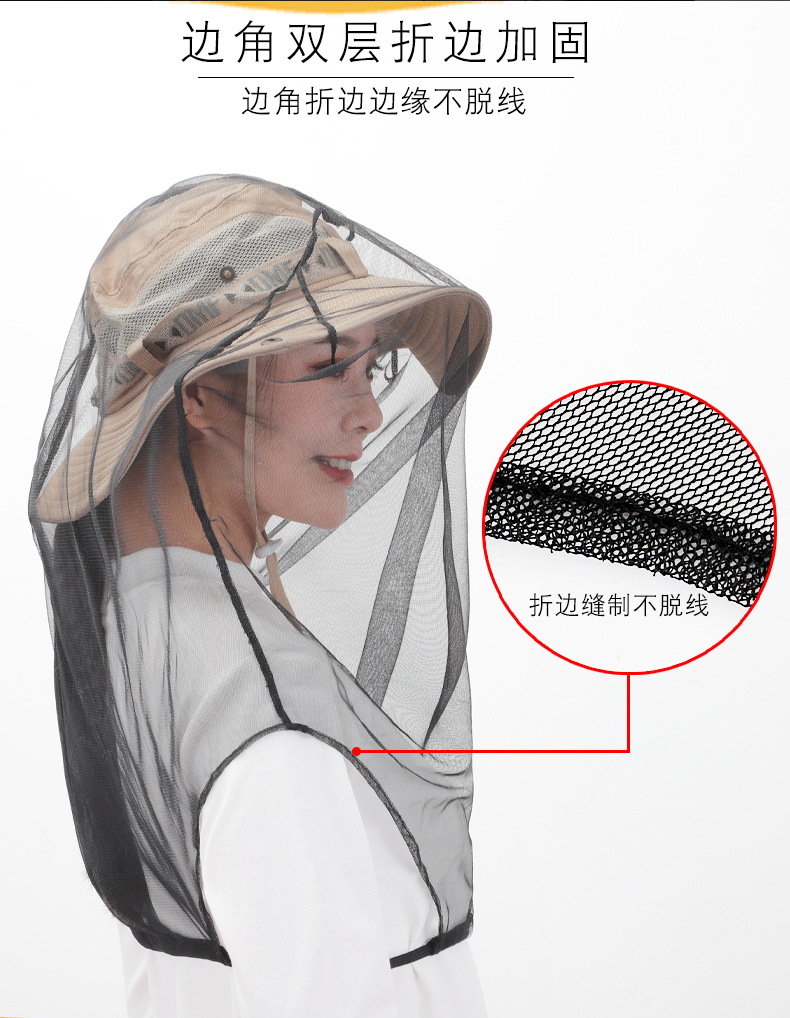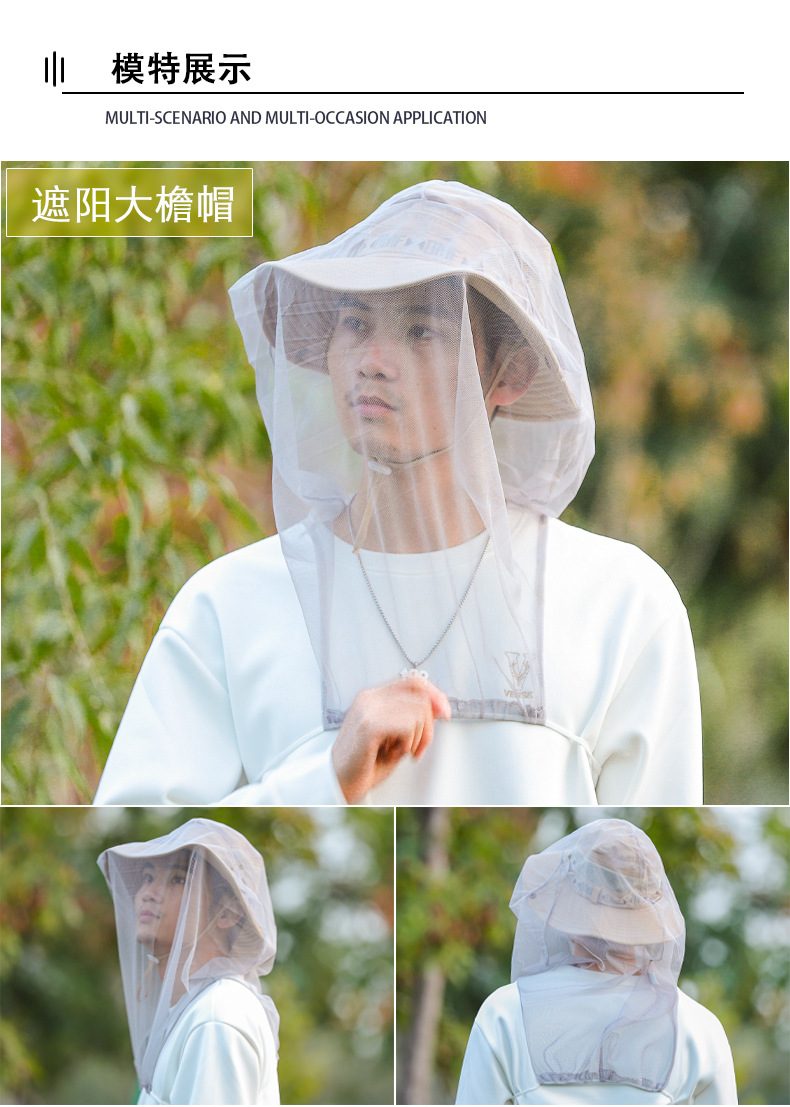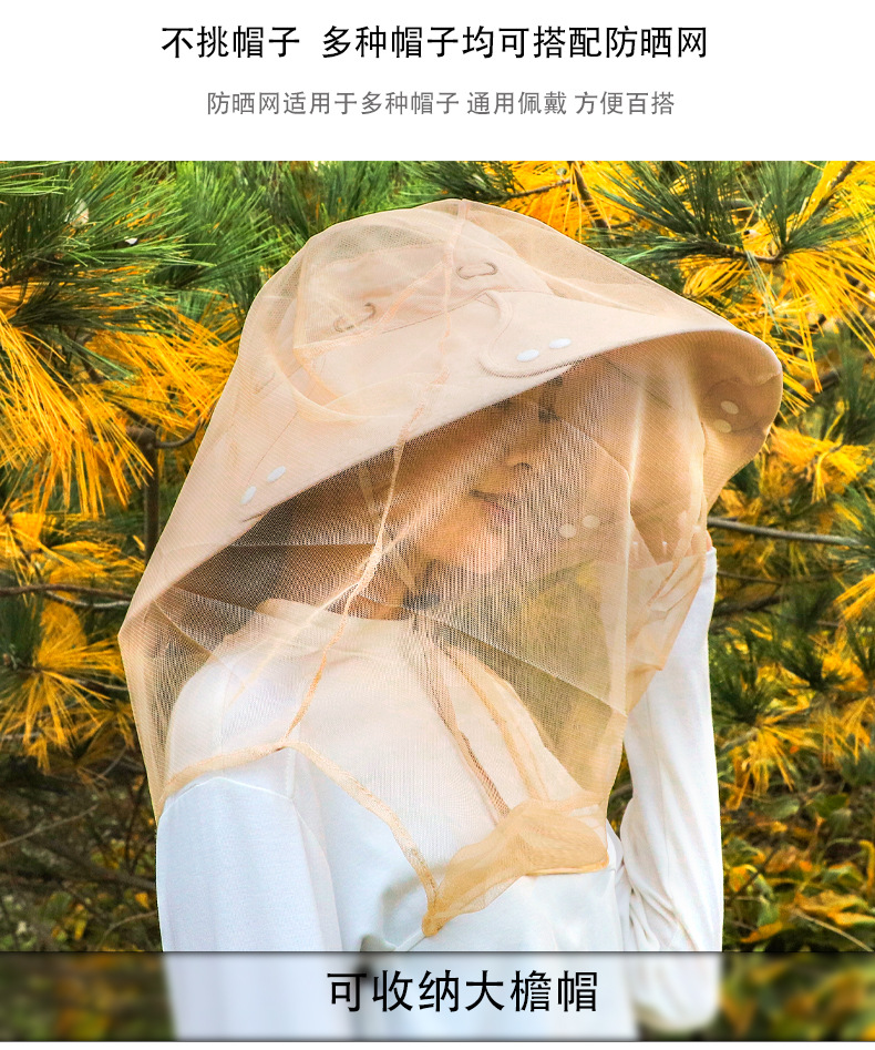 户外加大防晒网纱帽面罩养蜂防蚊防虫钓鱼披肩帽套头网布大檐面纱