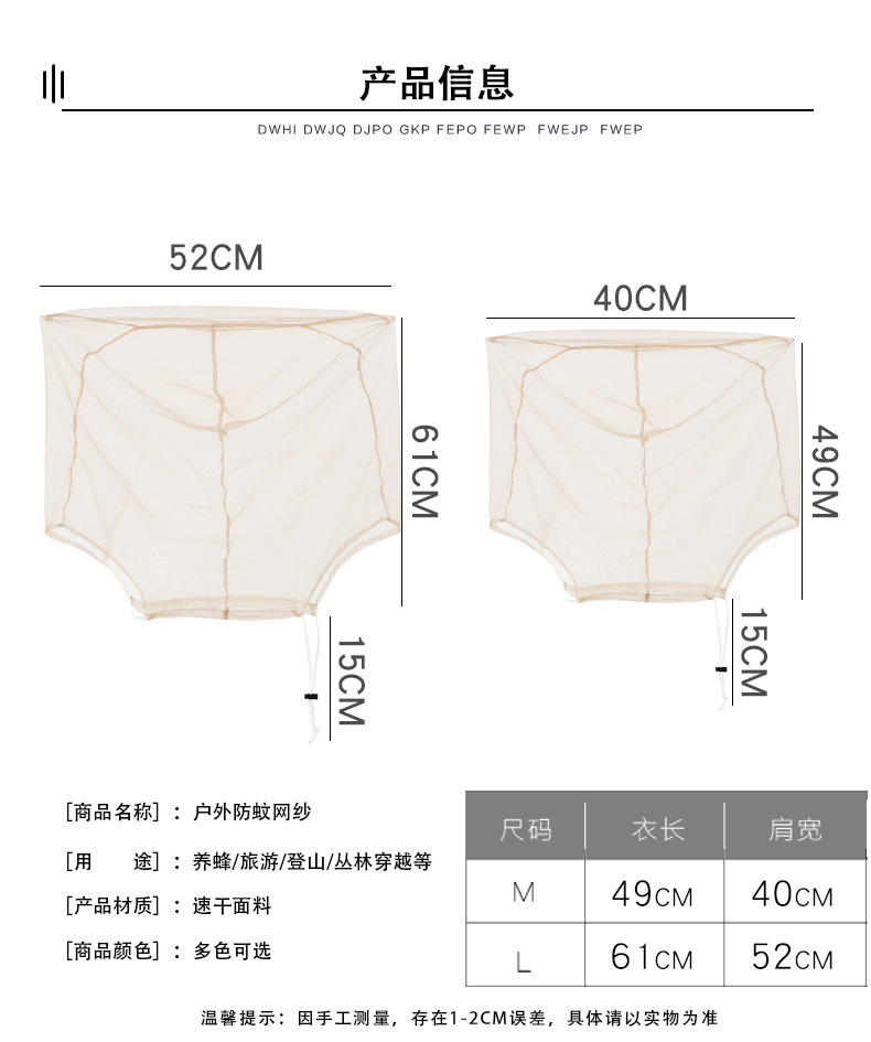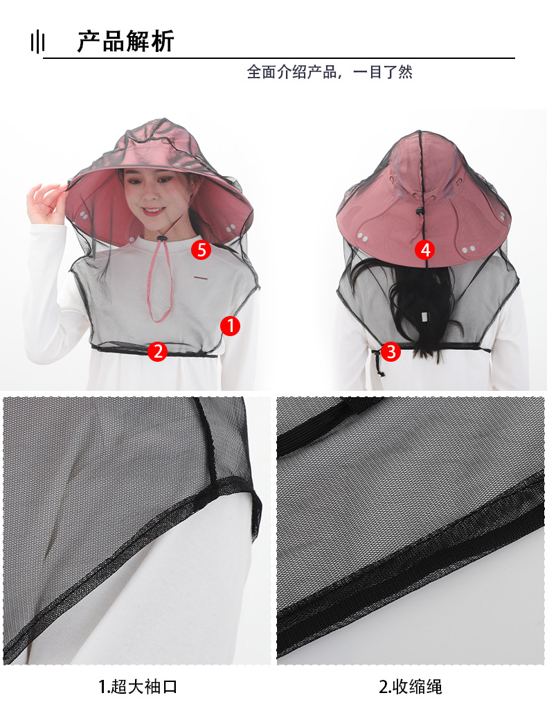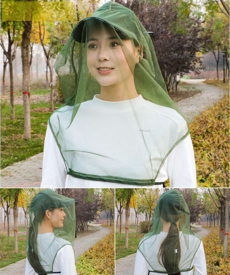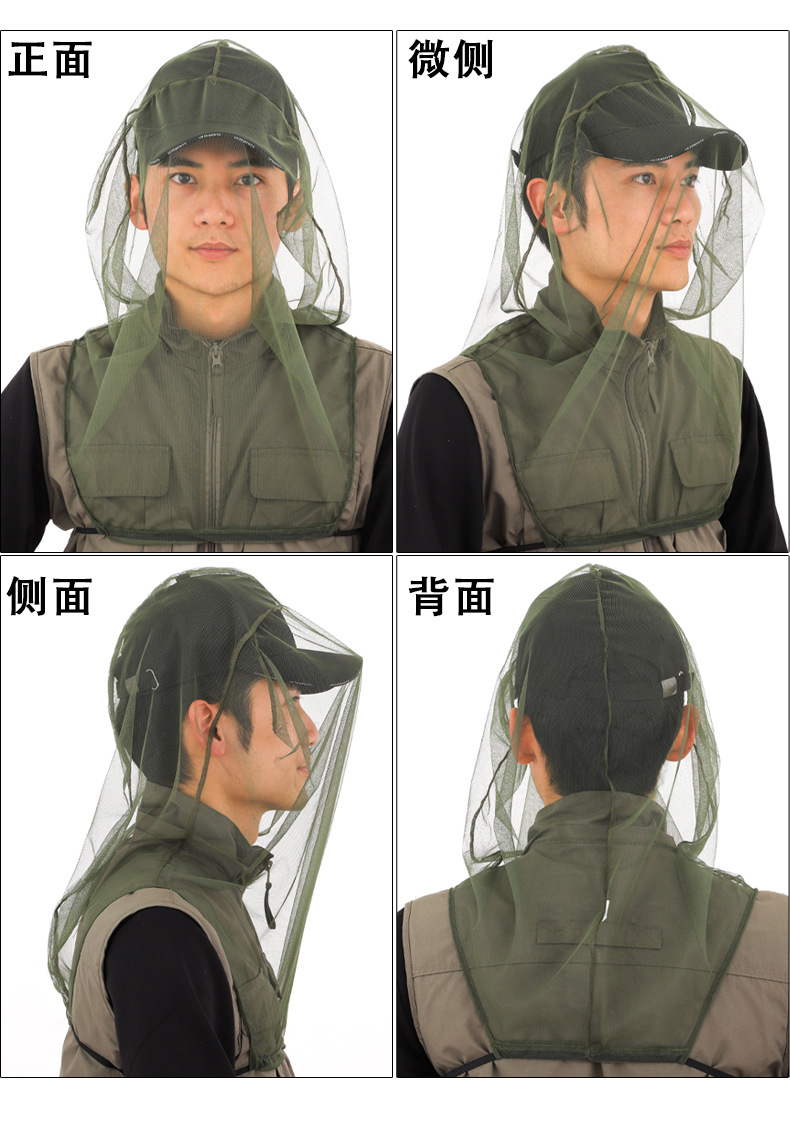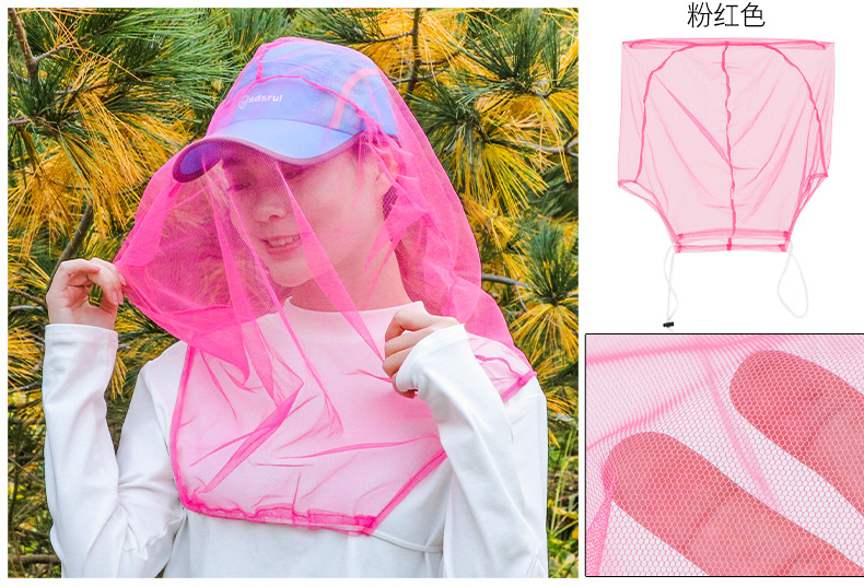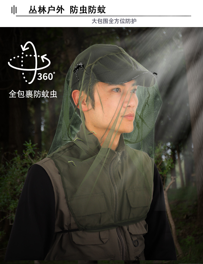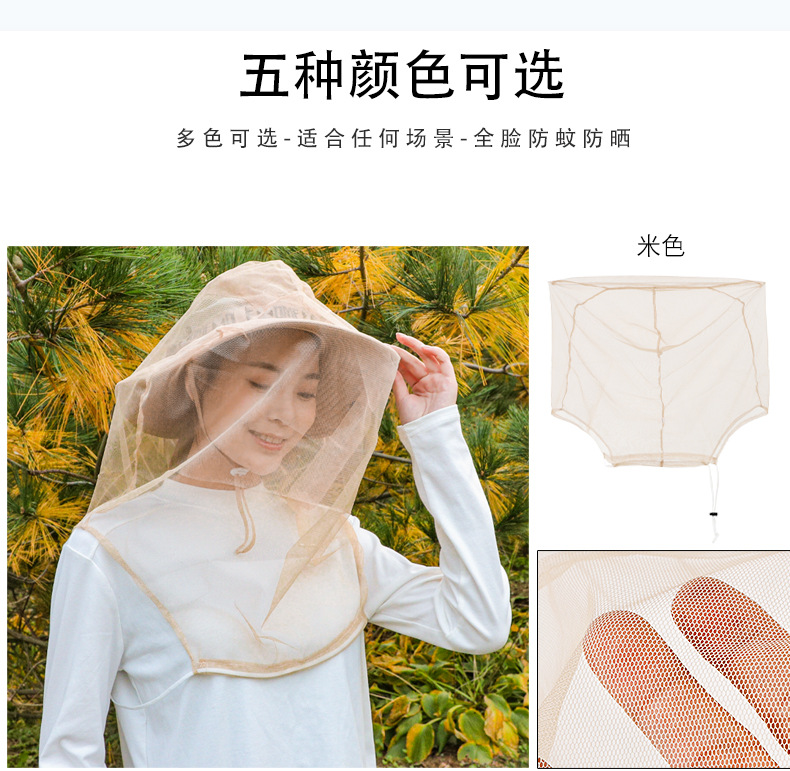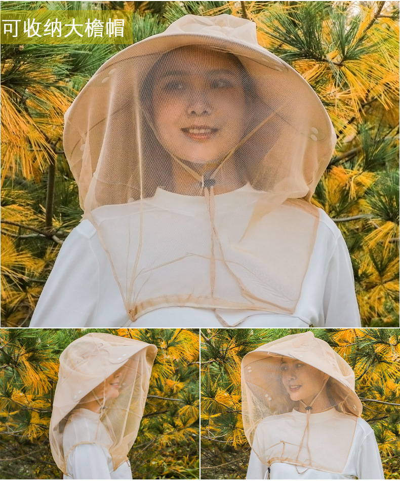 户外加大防晒网纱帽面罩养蜂防蚊防虫钓鱼披肩帽套头网布大檐面纱