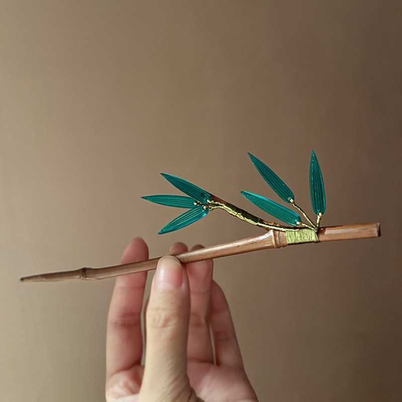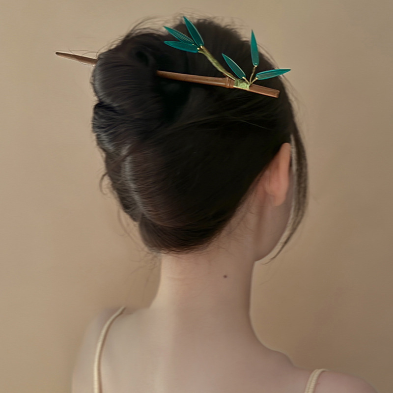 新中式简约竹叶人造木簪发簪小众古风配饰发钗小清新高级感发饰女