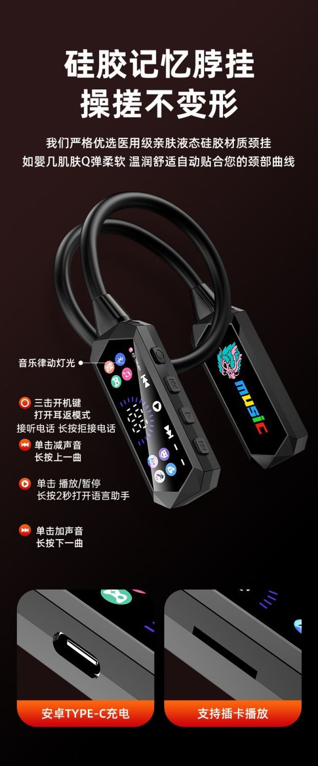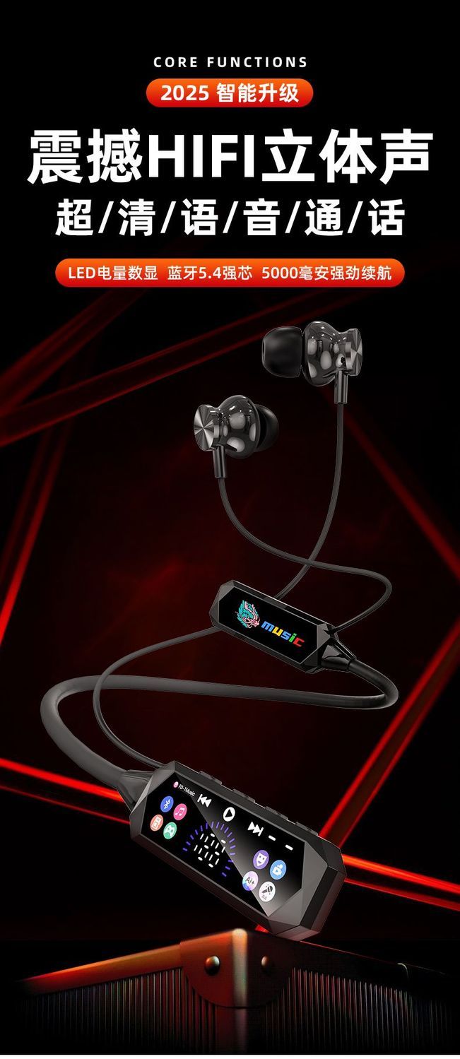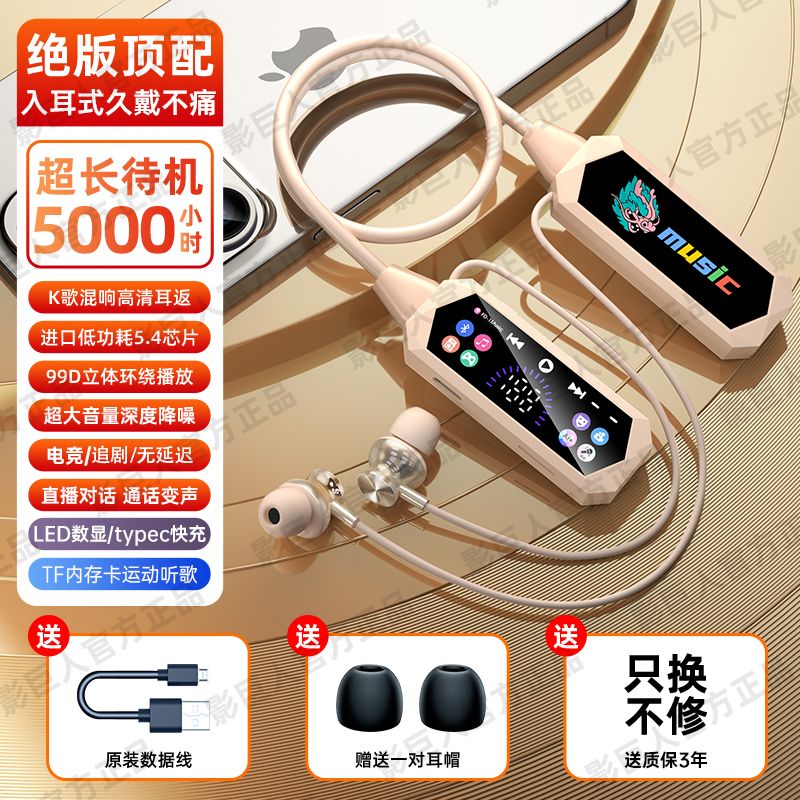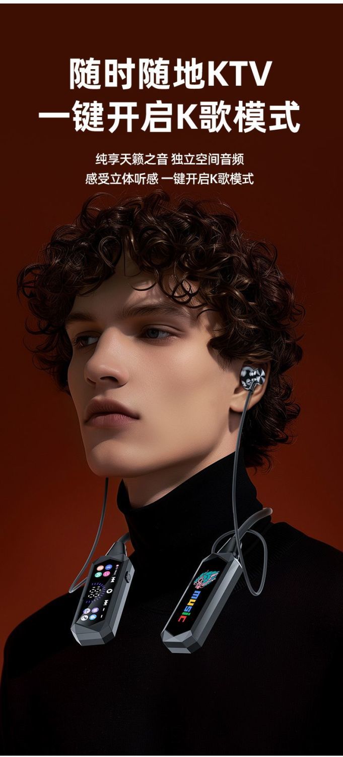 影巨人CR-08直播带麦K歌耳返无线蓝牙耳机挂脖式超长续航运动通用