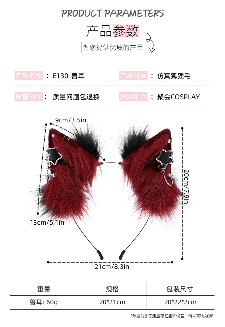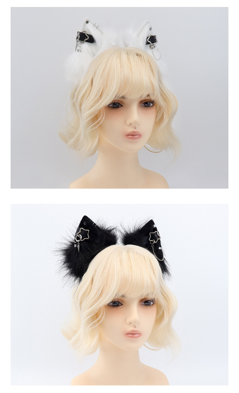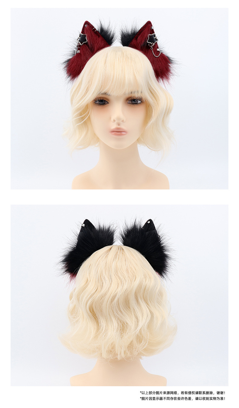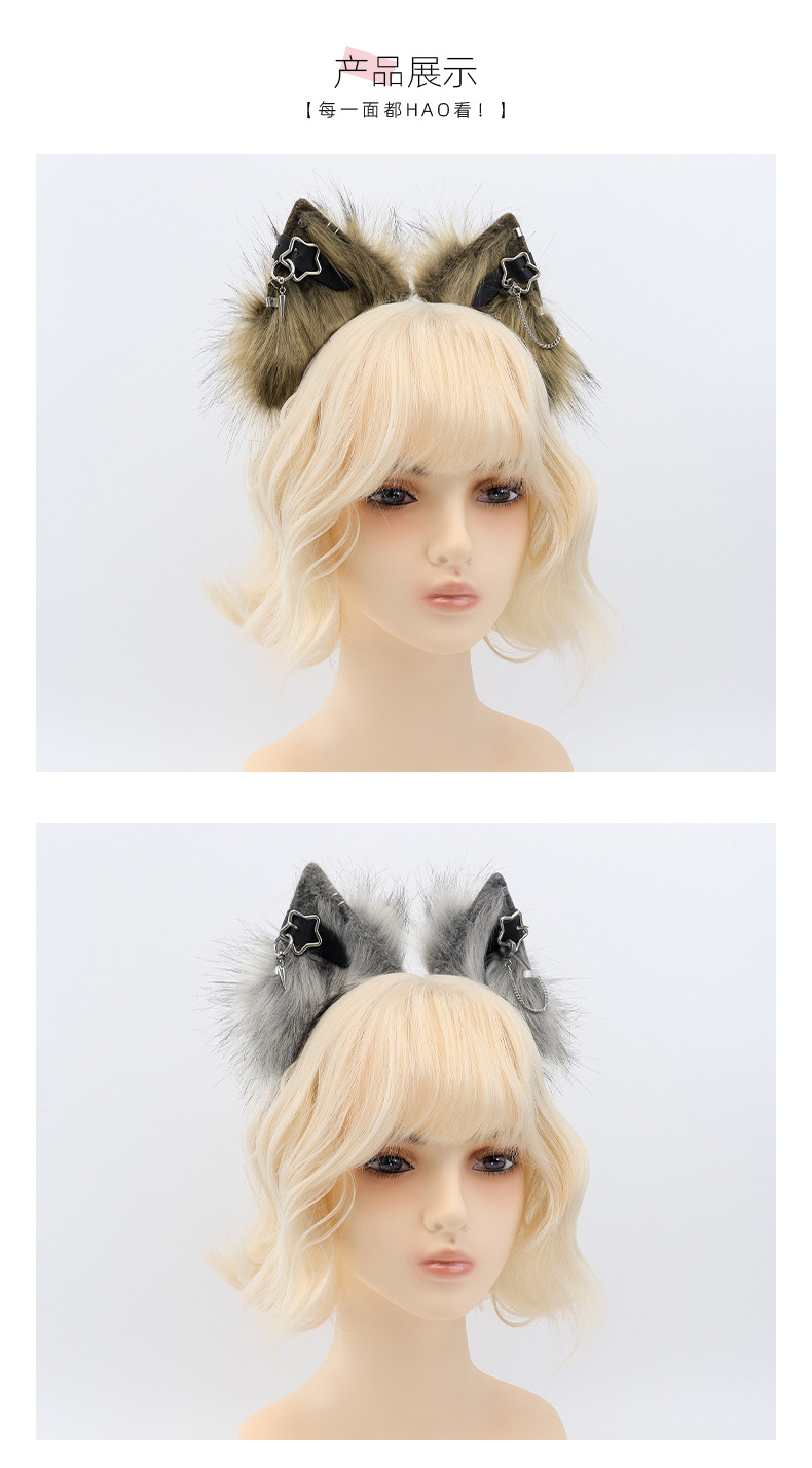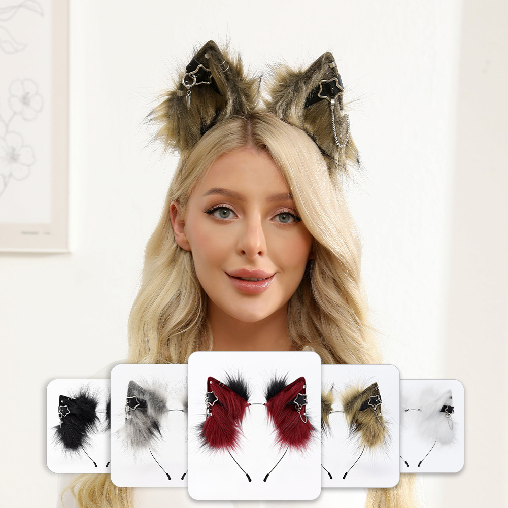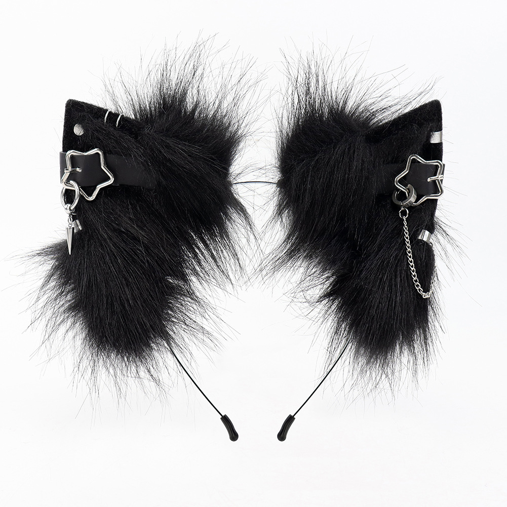 手作仿真兽耳发箍毛绒可爱金属朋克cosplay漫展道具头饰耳朵欧美