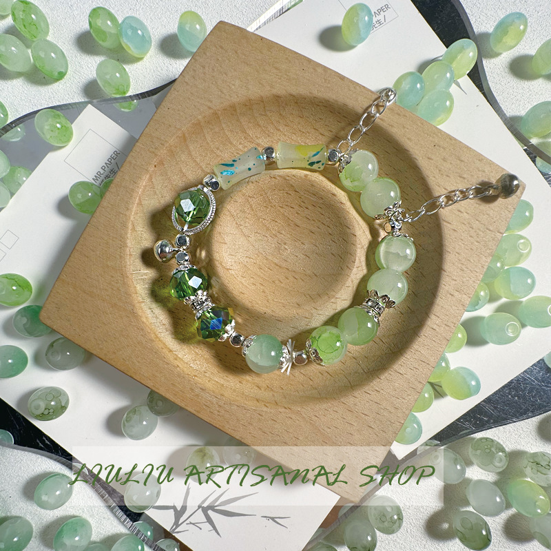 绿色系琉璃珠散珠手工diy制作玻璃珠子玉碎圆珠串珠手链配件材料
