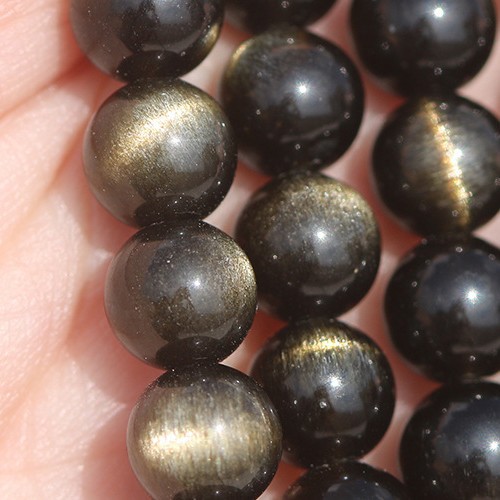 天然金耀石散珠 圆珠子金曜石半成品DIY长链 金曜石饰品配件