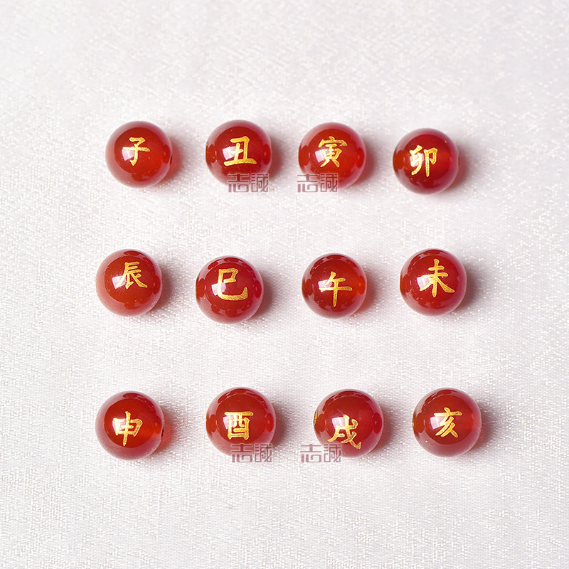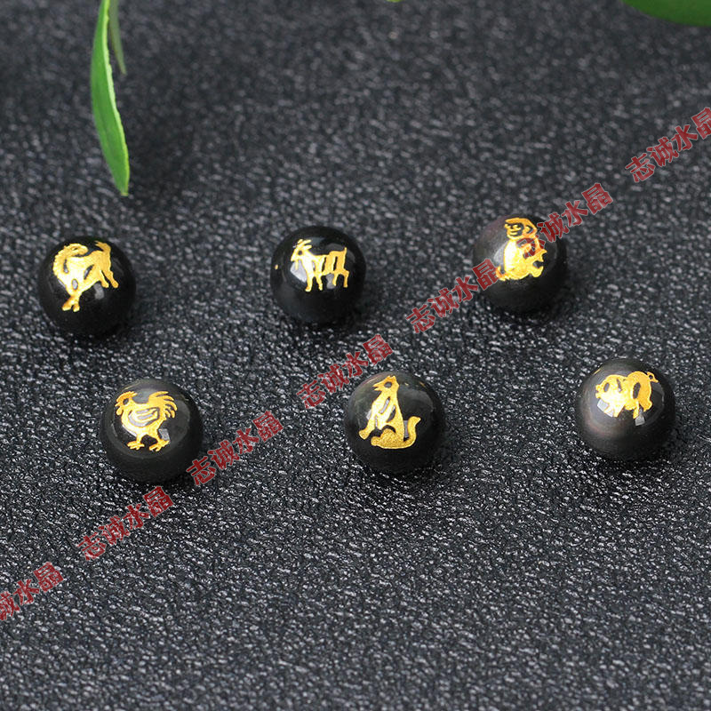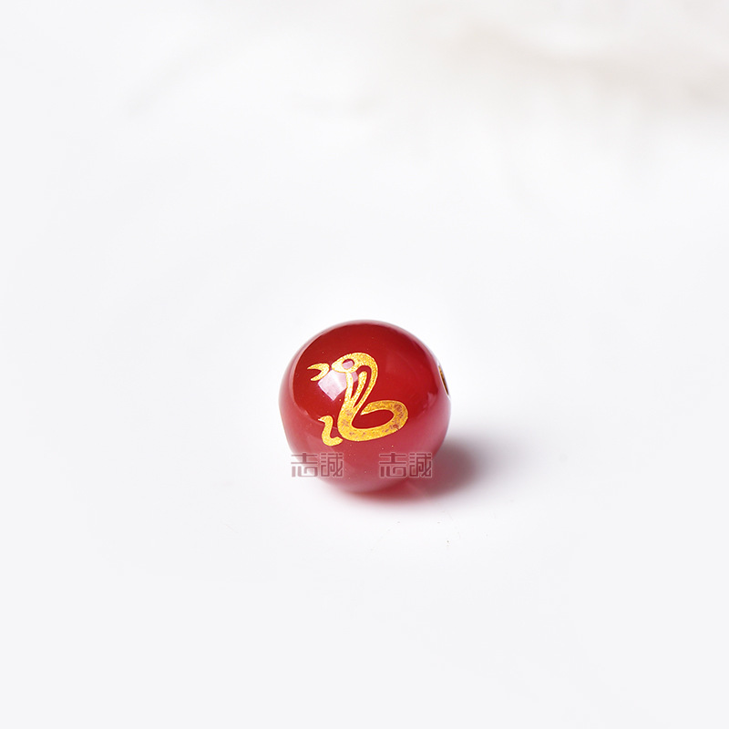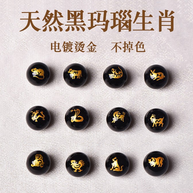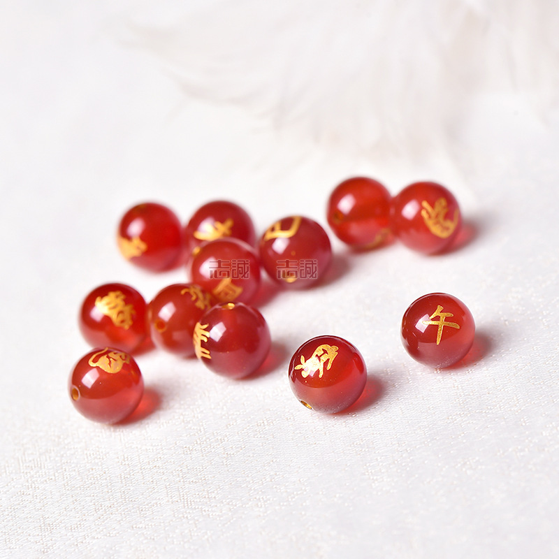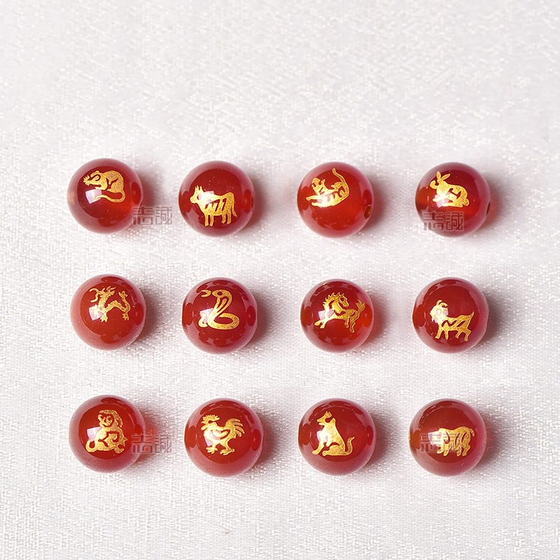 天然红玛瑙12十二生肖烫金属相散珠手链隔珠DIY配件8-14mm黑玉髓