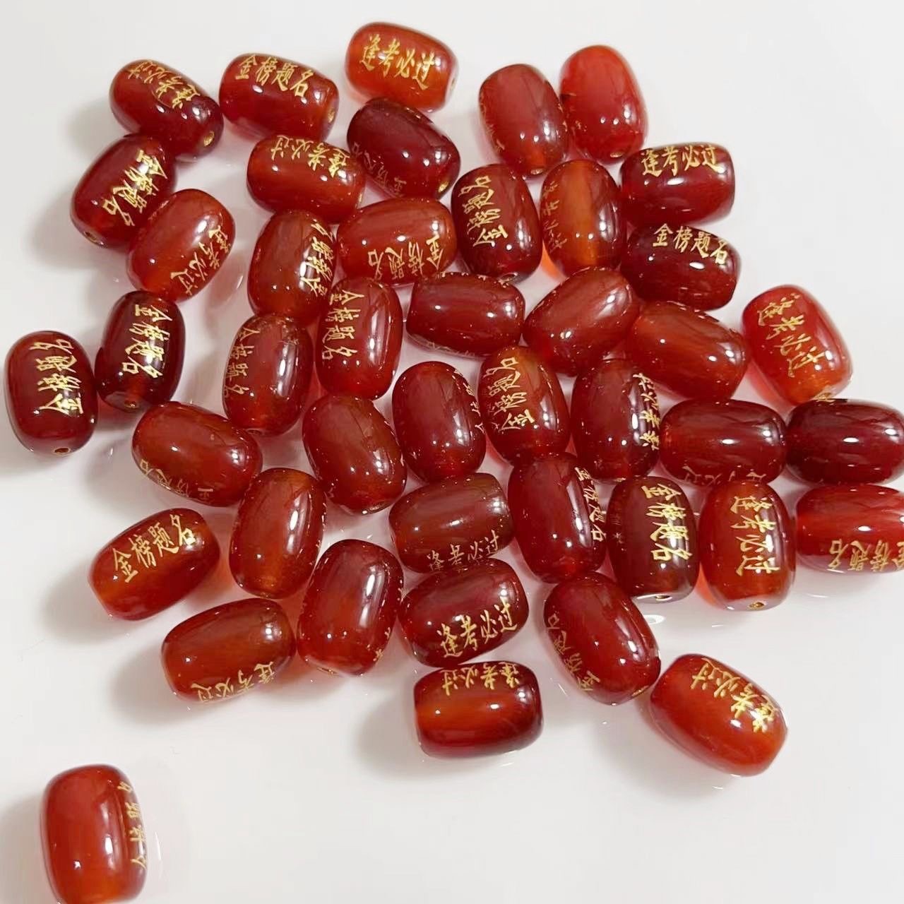 金榜题名烫金桶珠雕刻生肖手链配件刻字散珠半成品金榜题名桶珠