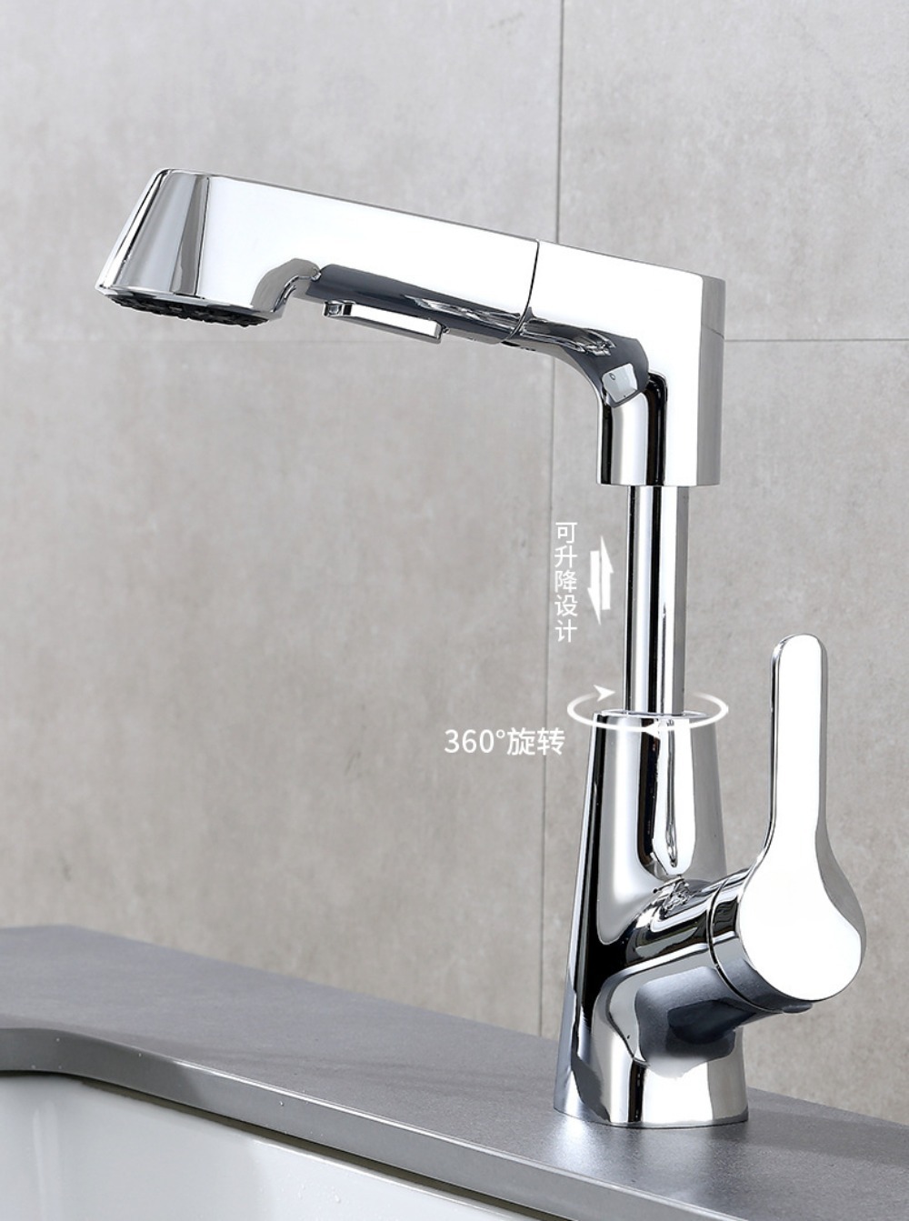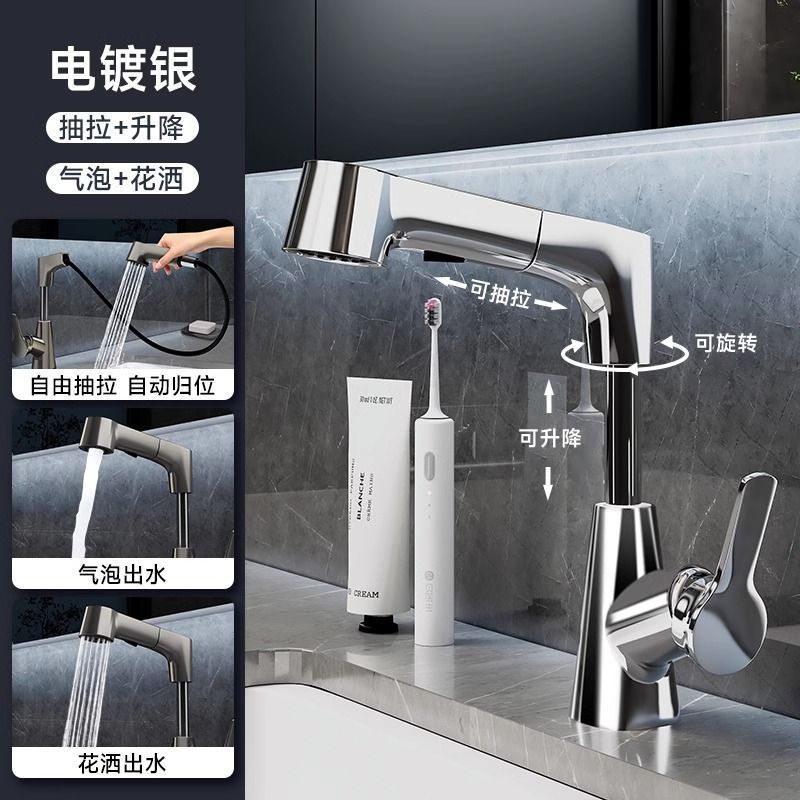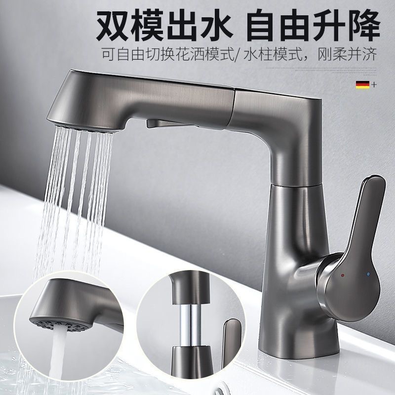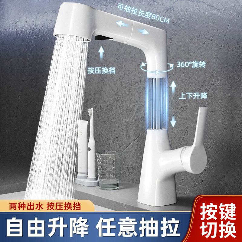 洗脸盆冷热水龙头卫生间浴室柜洗手池洗漱台盆抽拉式升降面盆龙头