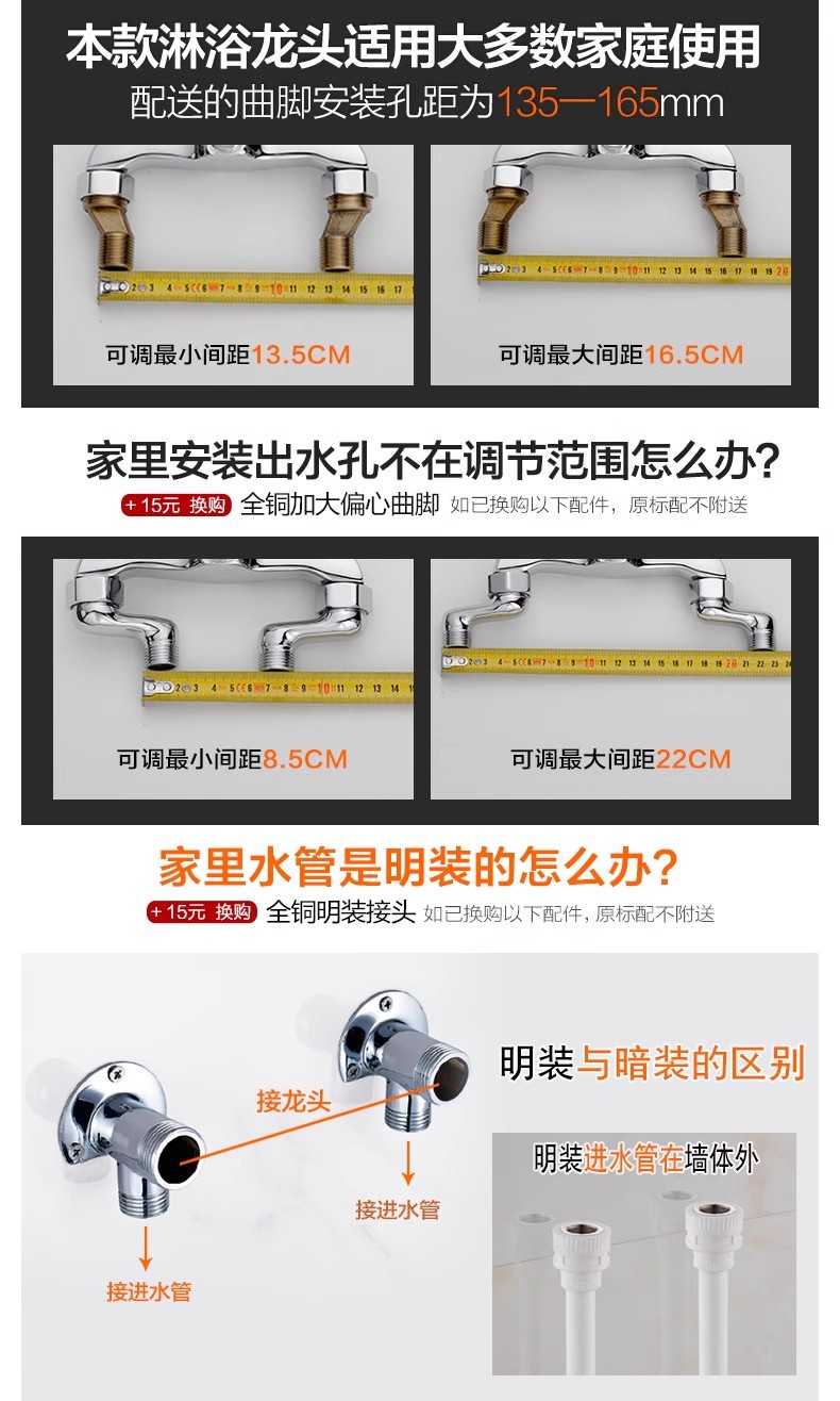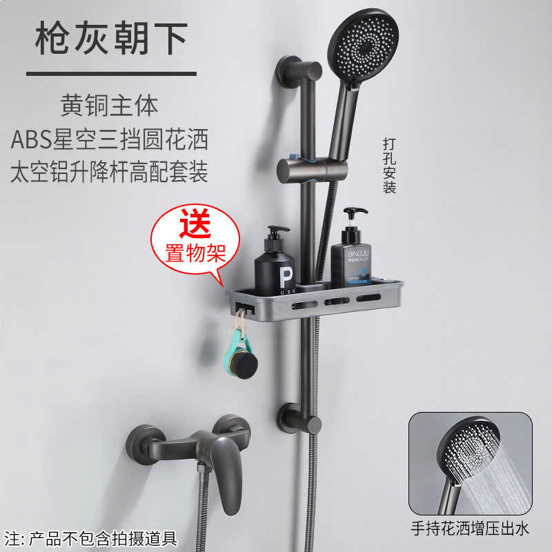 无顶喷简易花洒套装全铜浴室暗装淋雨沐浴器卫生间可升降增压花洒