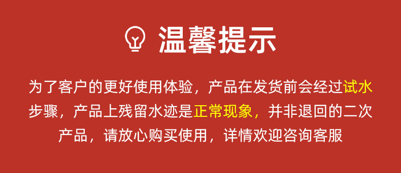 本店支持7天无理由退换货,收到货如果不满意,请在48小时内联系我们退换货,产品质量问题我们承担运费,但是由于您个人原因如不喜欢.尺码不合适.没有想象中的好等造成的退货,需要您承担回来邮费。请当着快递面检查快递件无误后再签收!花洒是大件产品,运费险只出首重的钱,还需要出一半的运费。请您考虑好再拍!(温馨提示:亲,退回来的商品请保持包装完好,按我们打包方式寄回 不要影响我们的二次销售哦,产品退回损坏需要赔偿或拒收责任由您承担,请理解,谢谢) 谢谢您的支持。