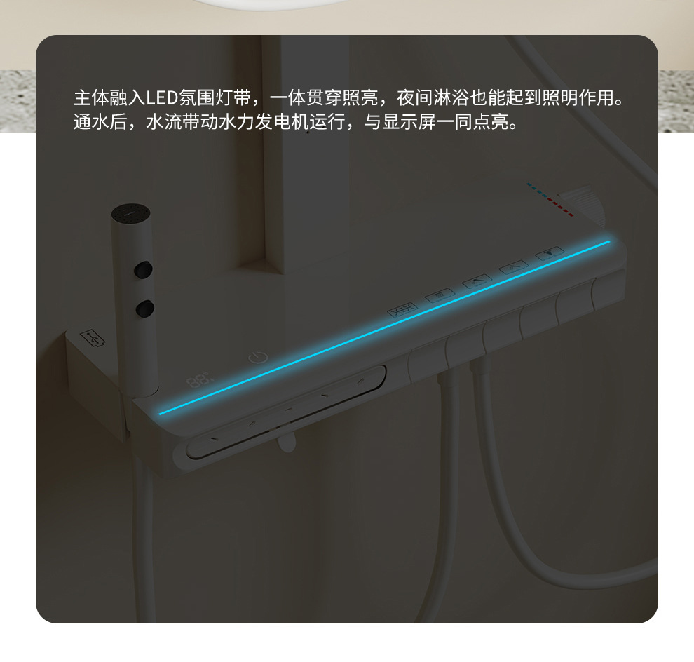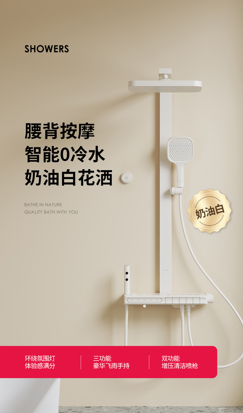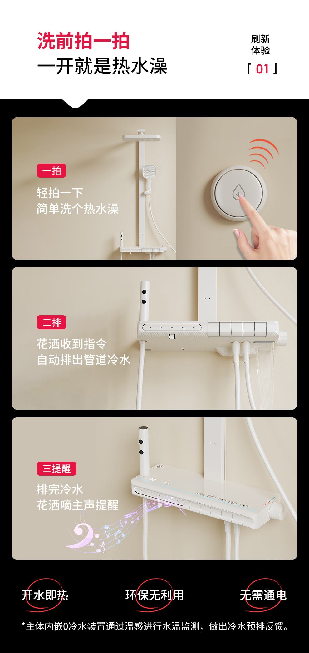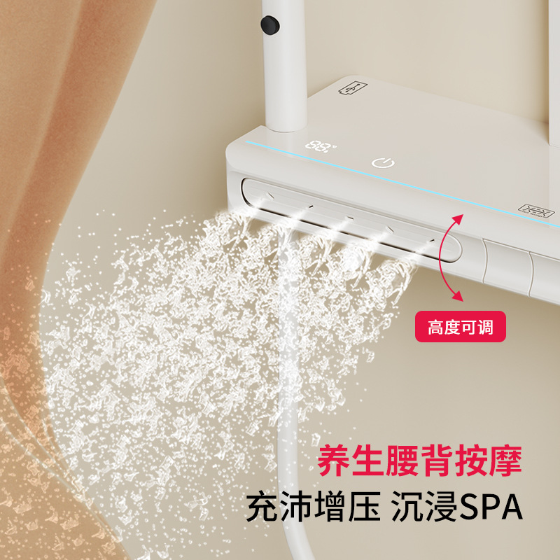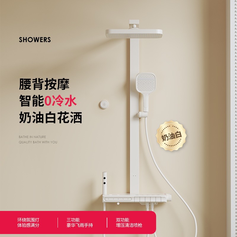 白色花洒淋浴套装一整套智能0冷水浴室增压家用多功能花洒套装