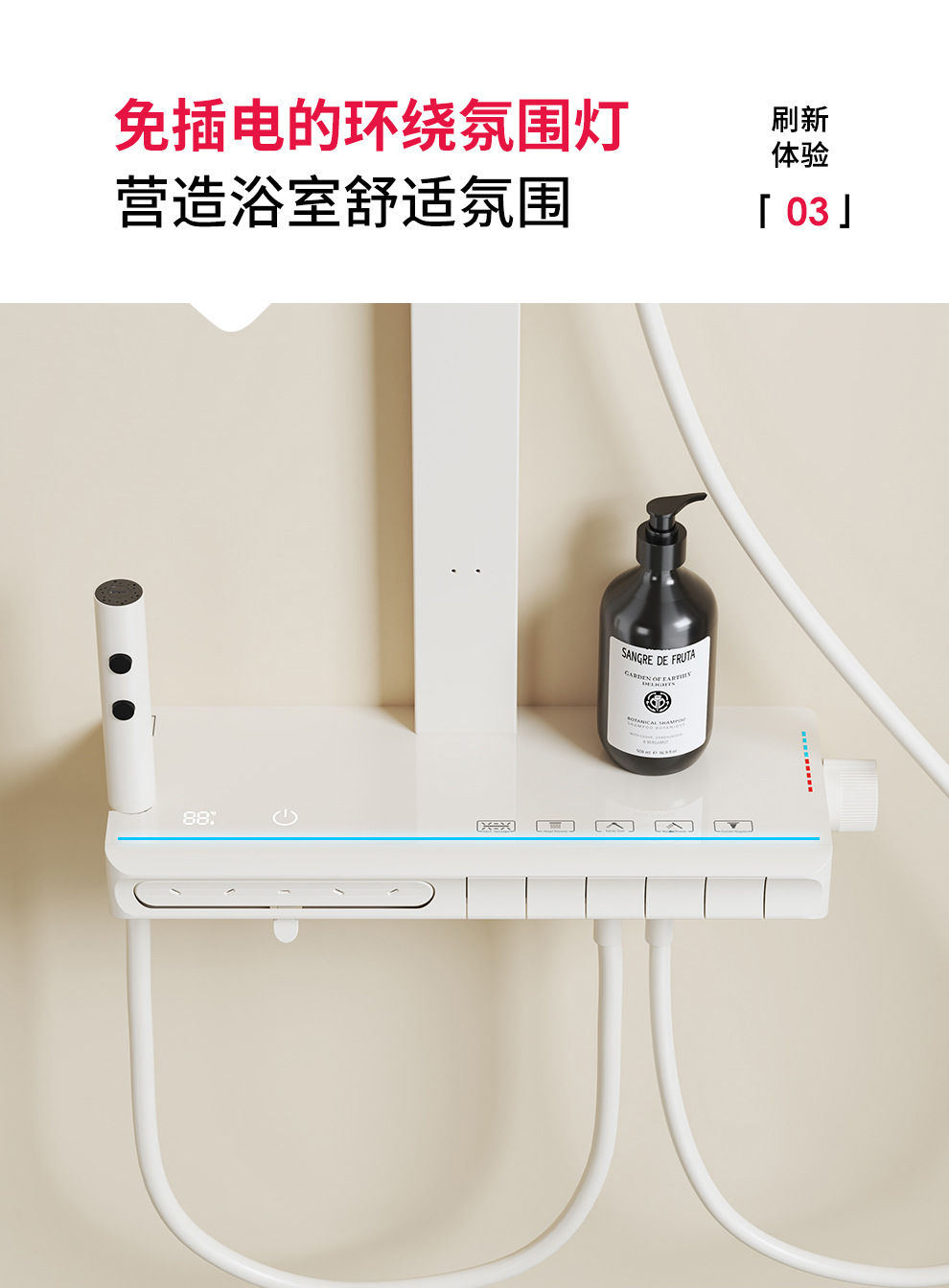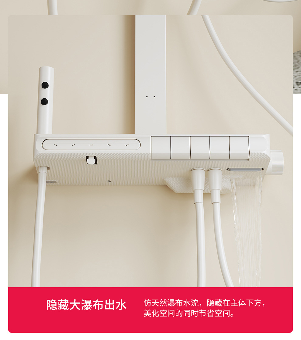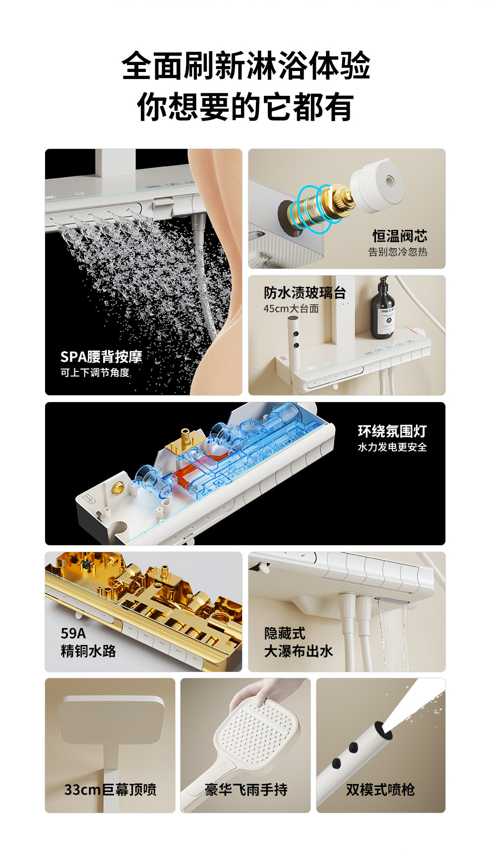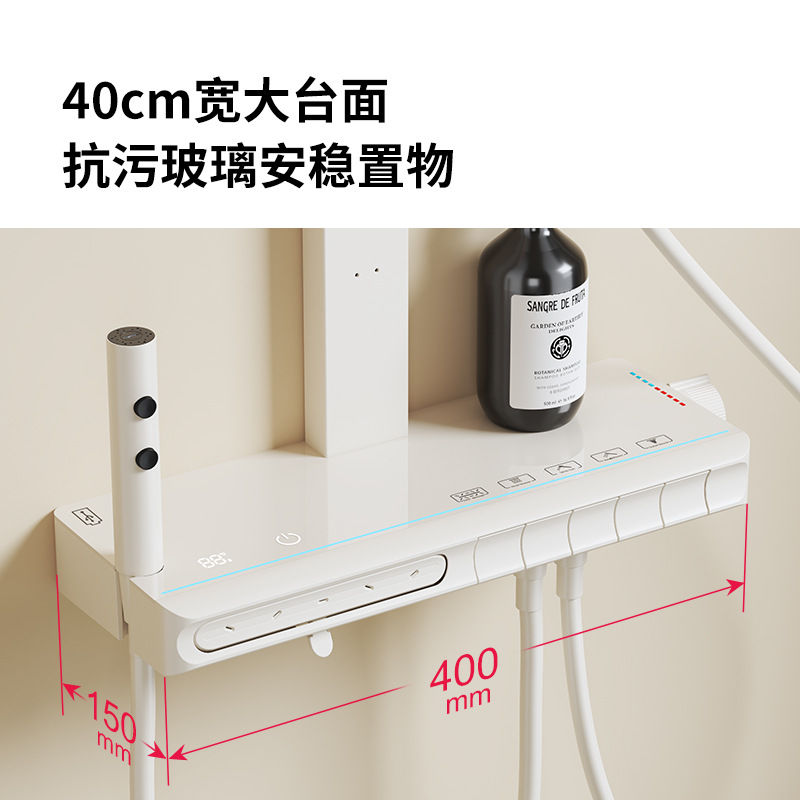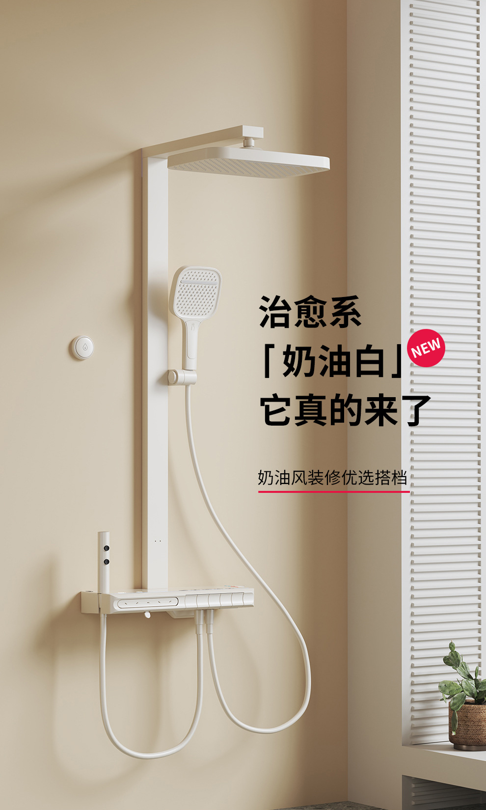 白色花洒淋浴套装一整套智能0冷水浴室增压家用多功能花洒套装