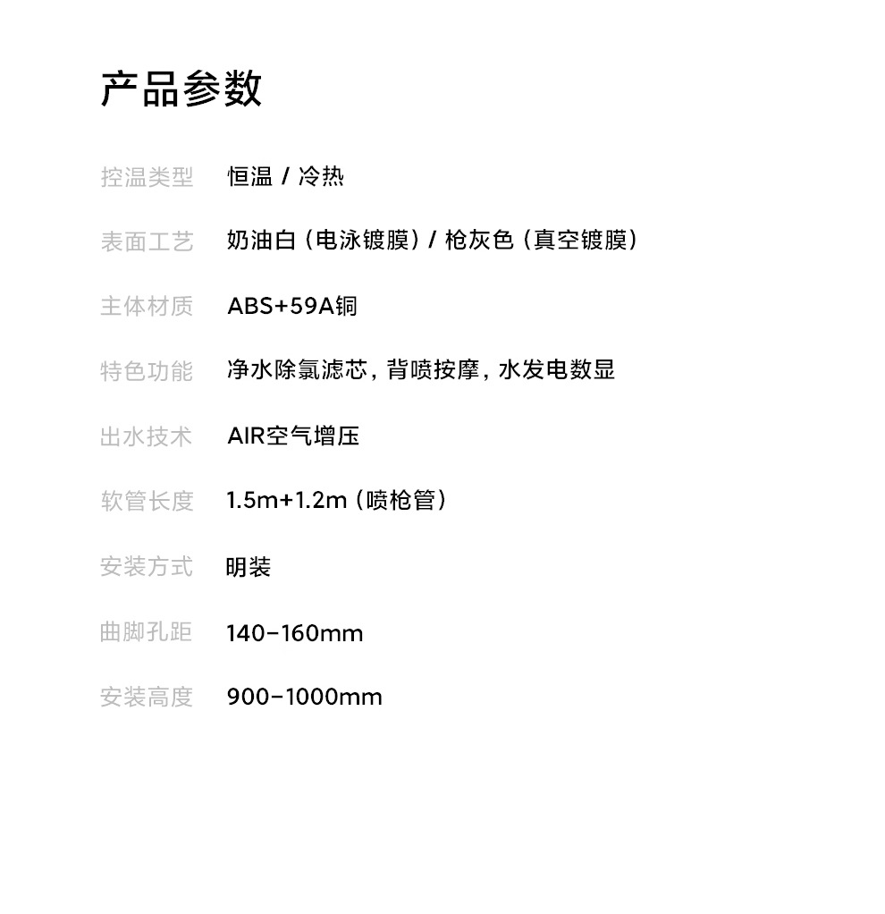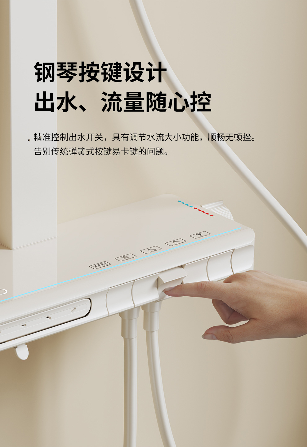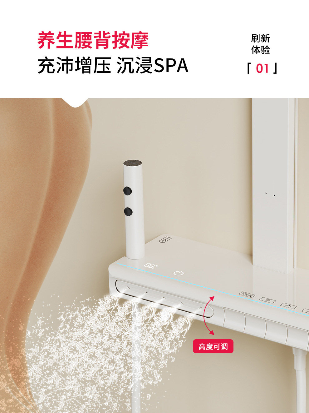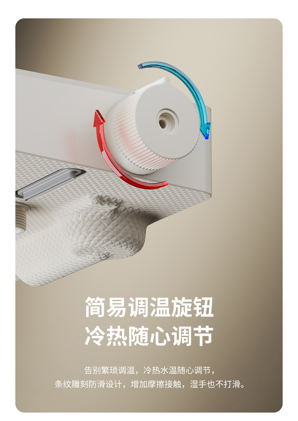 白色花洒淋浴套装一整套智能0冷水浴室增压家用多功能花洒套装