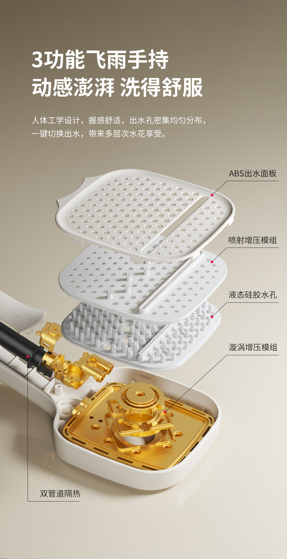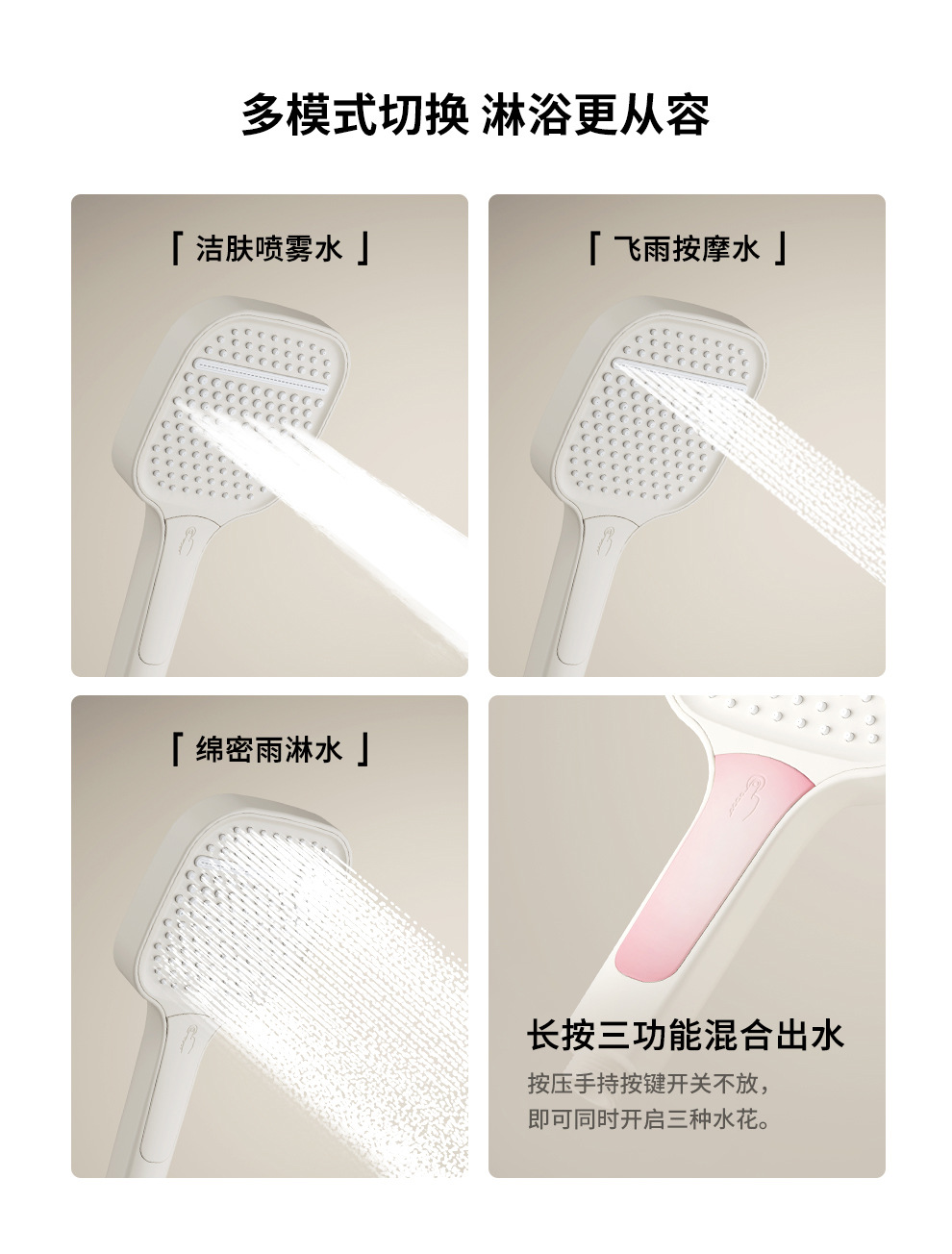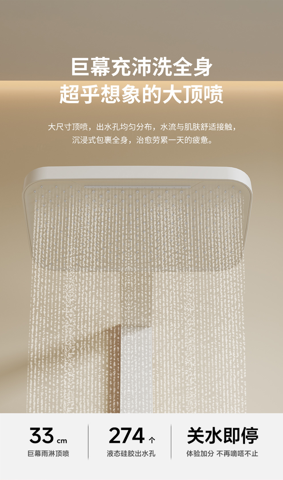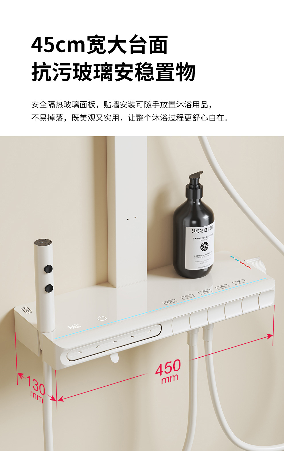 白色花洒淋浴套装一整套智能0冷水浴室增压家用多功能花洒套装